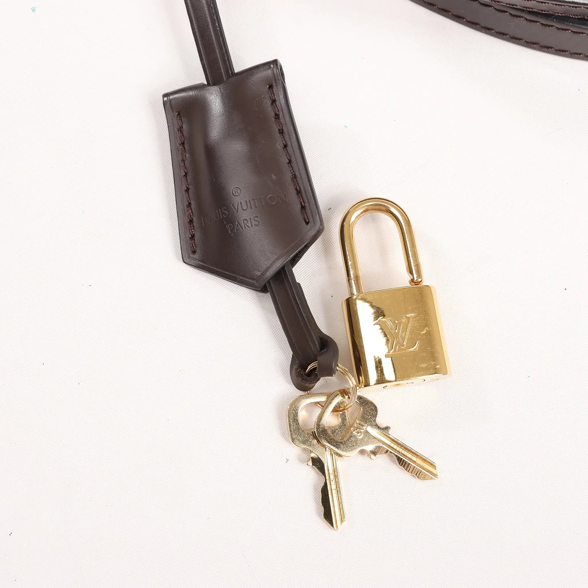 The Louis Vuitton Jersey 2-Way Shoulder Bag in Damier canvas and burgundy leather is a stylish blend of elegance and versatility. Featuring dual handles and a removable strap, this spacious piece is perfect for refined daily wear.