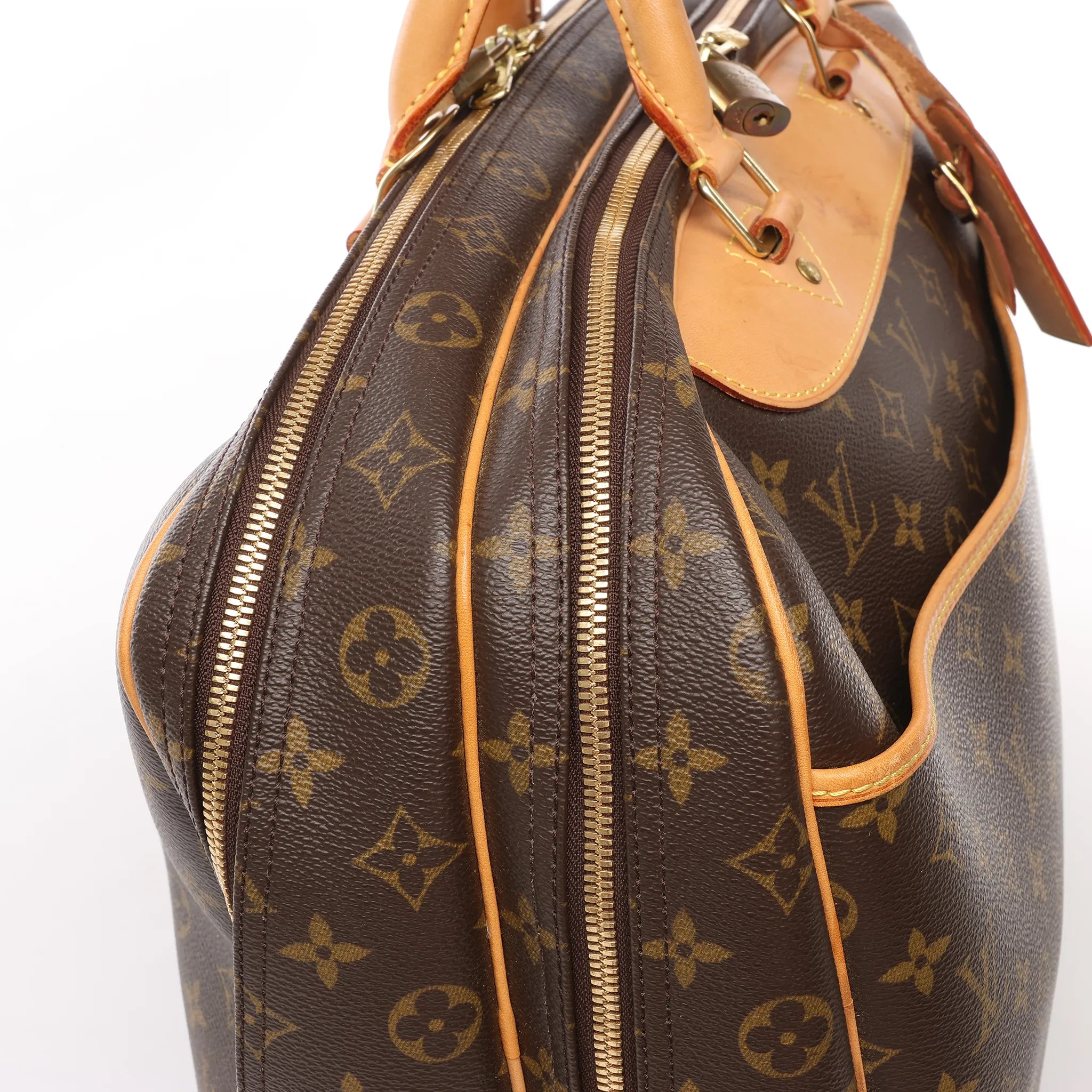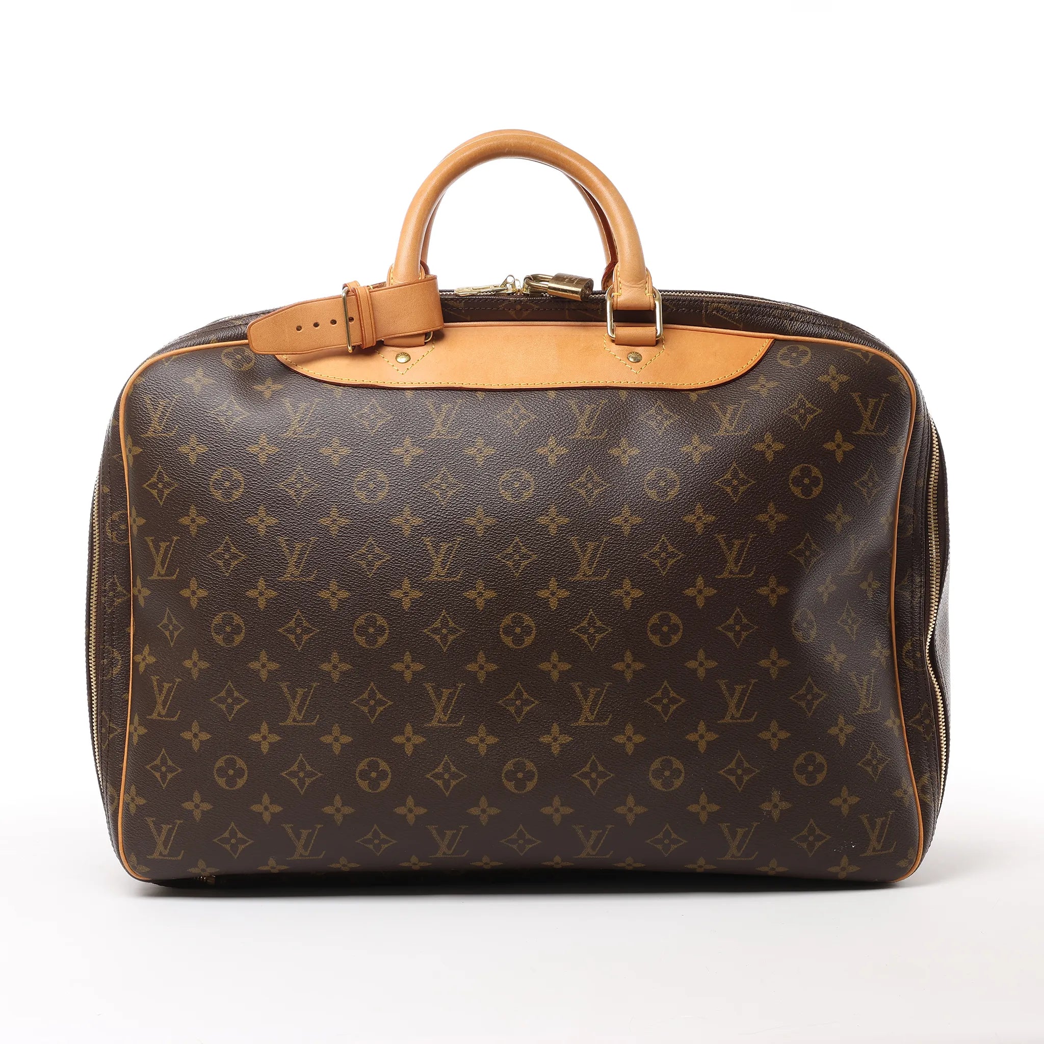 Brand: Louis Vuitton Model: AlizeSize: 24HWidth: 44 cmHeight: 36 cmExterior Condition: ExcellentInterior Condition: Very goodCondition Details: Outer canvas is clean and beautiful with almost no wear except light creases. Leather trim and handles are in very good condition which has developed dark patina and has some scratches and water spots. Golden hardware has darkened. The interior is in great condition, but one pocket has blue stains and overall has some odor. Date code: MB1016Colour: BrownInterior Colour: BeigeHardware Colour: GoldMaterial: Leather, CanvasComes With: Luggage tag, shoulder strap, padlocks (keys are missing)