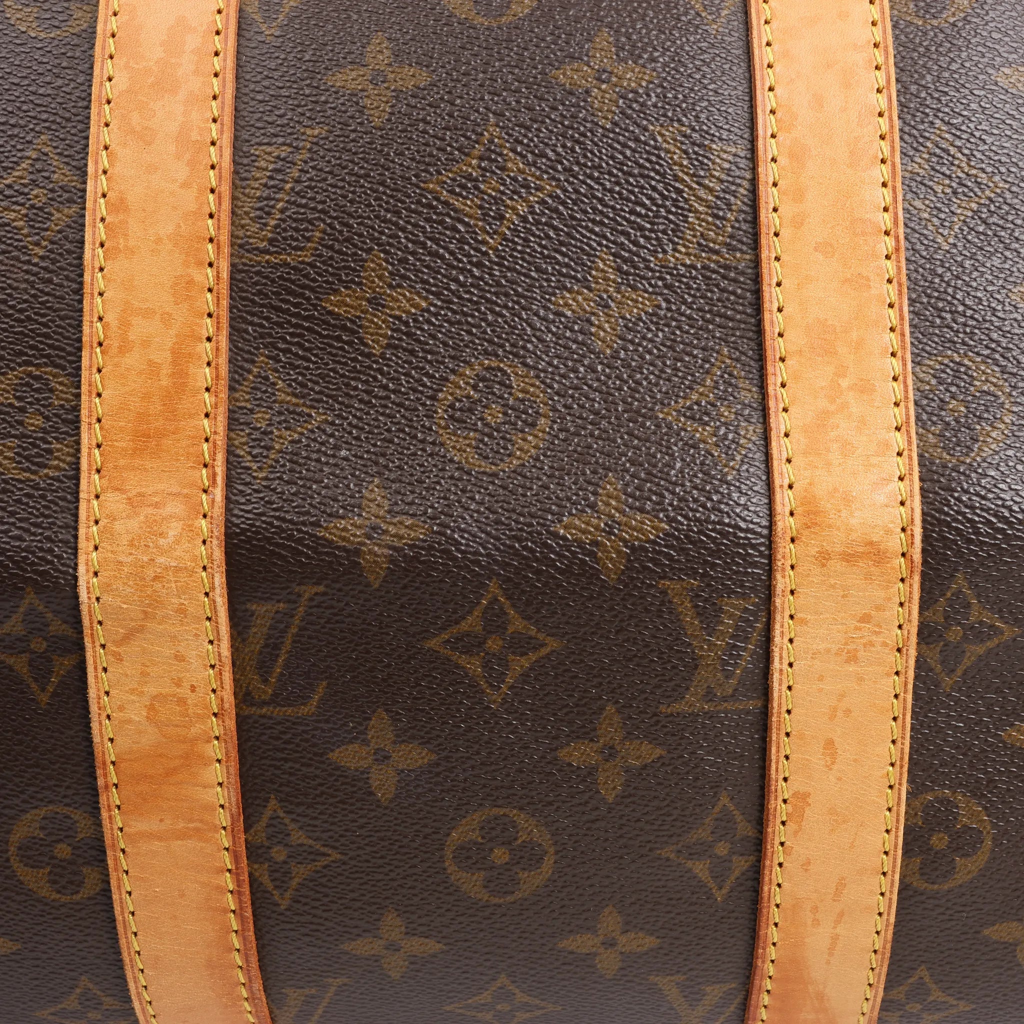 Brand: Louis VuittonModel: KeepallSize: 45Width: 46 cmHeight: 26.5 cmExterior Condition: ExcellentInterior Condition: ExcellentCondition Details: The exterior canvas is clean and beautiful, in great condition. The cowhide leather trim and handles developed honey patina and are in good condition, has rubbings and water stains. The handle has cracks. The gold hardware is in good condition, but has scratches and darkening. The interior is in great condition, except some dust. Date code: SP1904Colour: BrownInterior Colour: BrownHardware Colour: GoldMaterial: LeatherComes With: Luggage tag