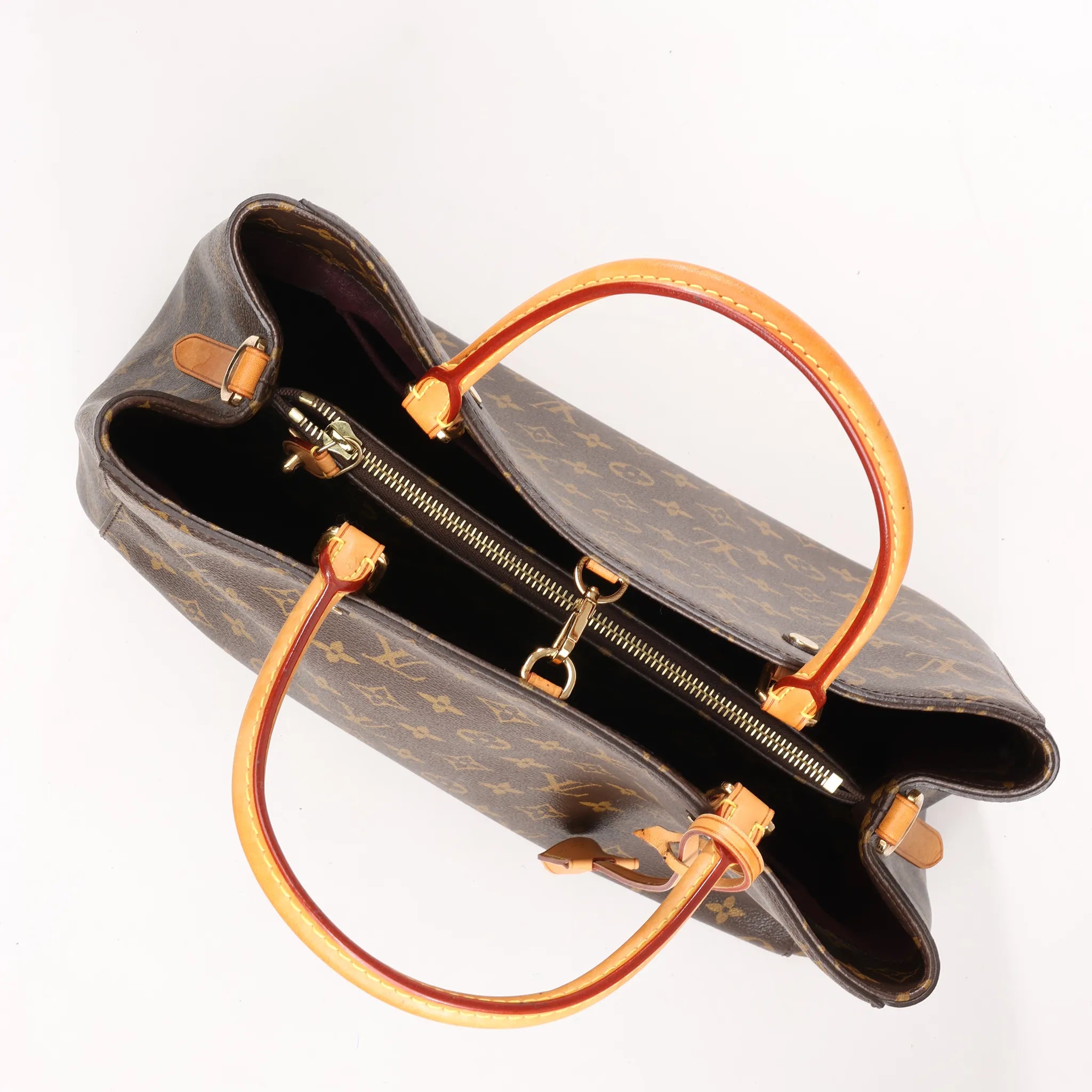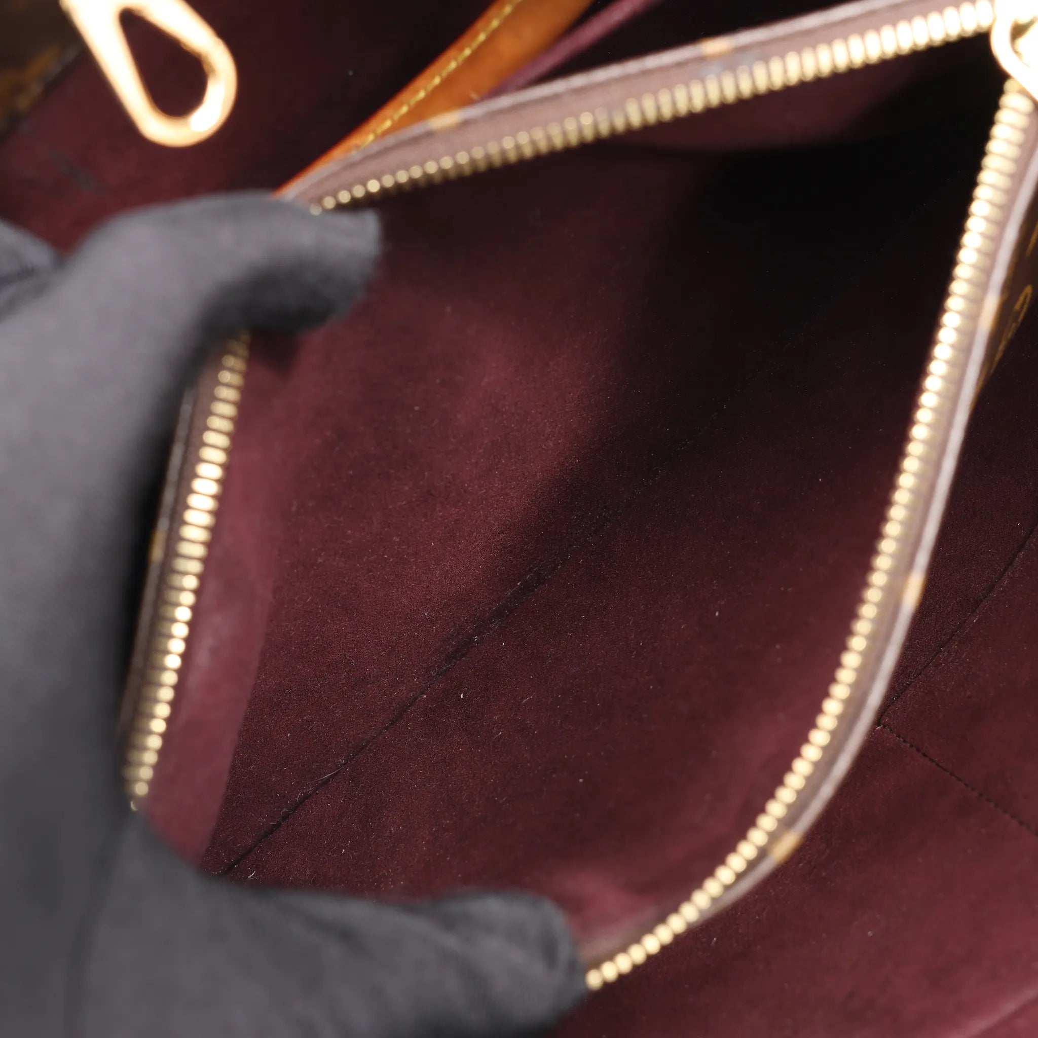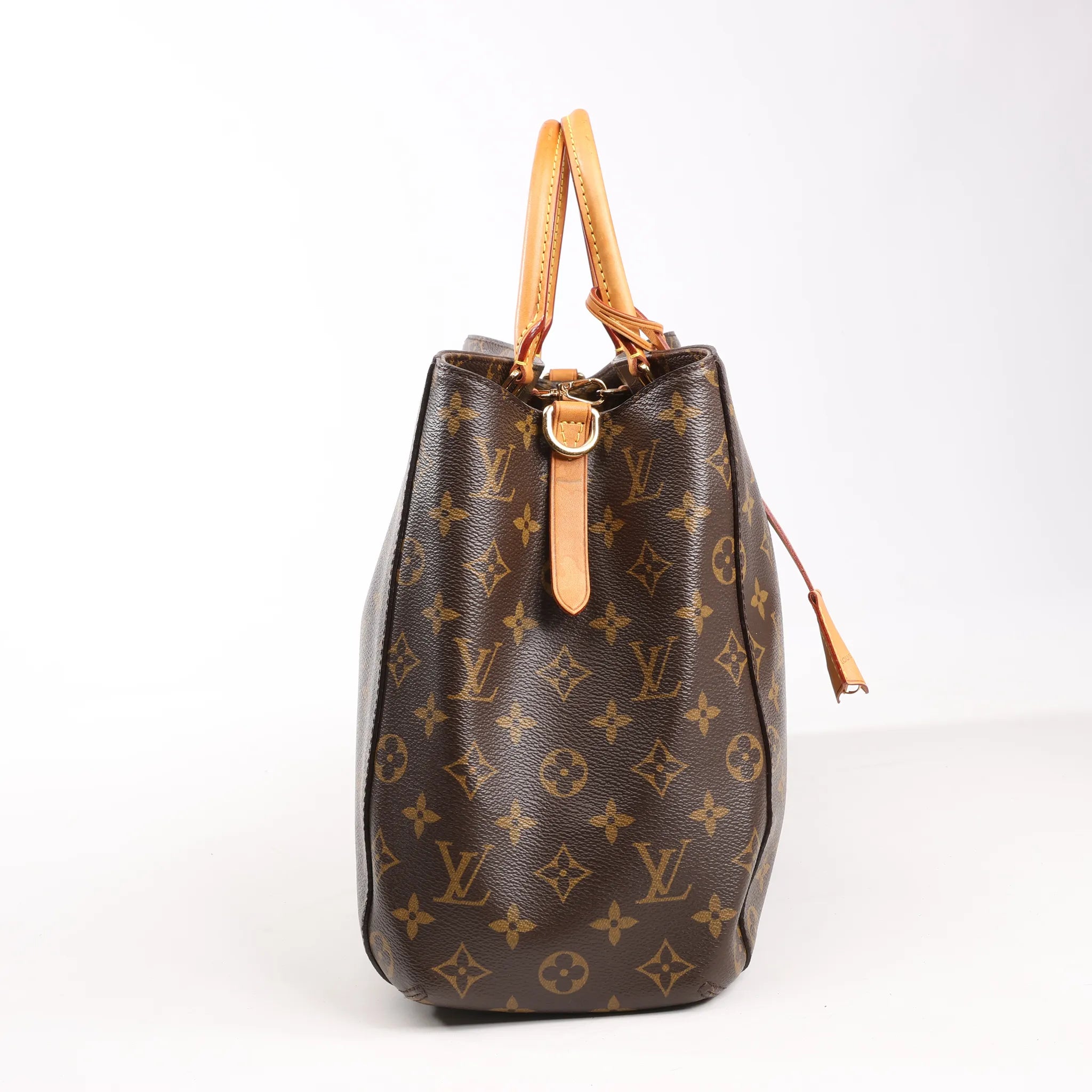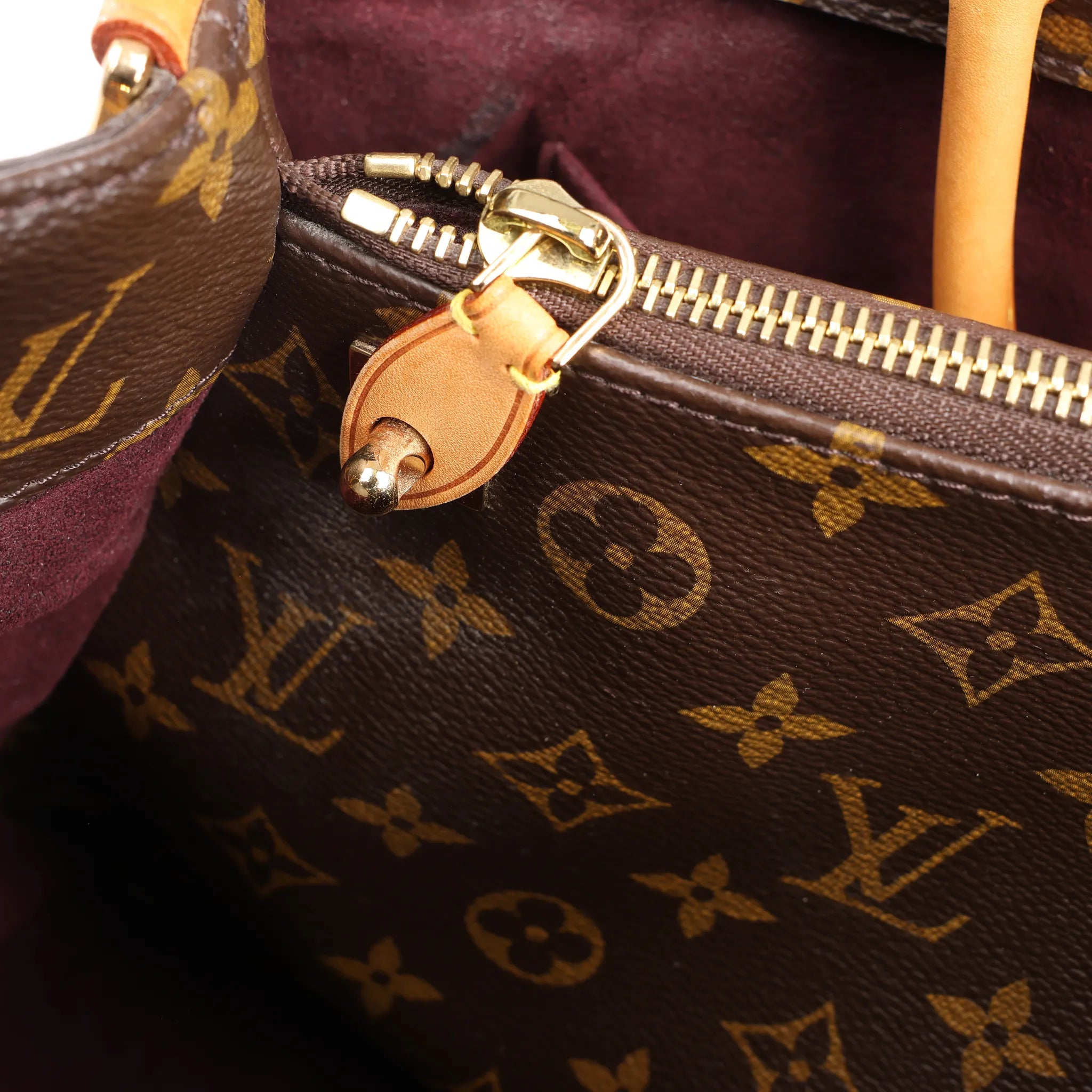 Brand: Louis VuittonModel: Montaigne Size: GMWidth: 40 cmHeight: 28.5 cmExterior Condition: ExcellentInterior Condition: ExcellentCondition Details: The exterior coated canvas is in excellent condition. The leather trim and handles are in very good condition, has slight usage rubbings and stains on handle. Note: Shoulder strap is missing. The hardware is still bright and crisp with hairline scratches. The interior is in good condition, except dust and glossy stain in pocket. Date code: TR4114Colour: BrownInterior Colour: BurgundyHardware Colour: Gold Material: Leather, CanvasComes With: -
