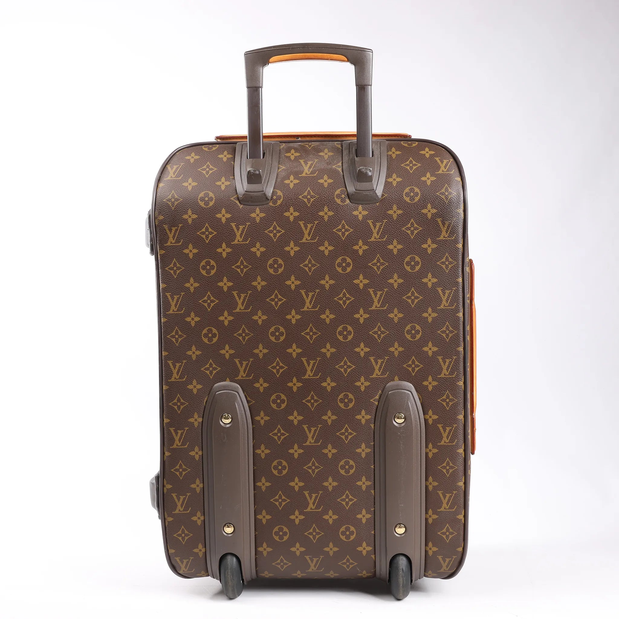 Brand: Louis Vuitton Model: PegaseSize: 55Width: 36 cmHeight: 52 cmDepth: 18 cmExterior Condition: ExcellentInterior Condition: ExcellentCondition Details: The exterior canvas is clean and beautiful, in excellent condition. The cowhide leather is in good condition with water marks and rubbings. Note: The side part brown leather is fully changed. The plastic parts has scratches. The gold hardware some sports has darkened. The interior is clean and in very good condition. Date code: SR1024Colour: BrownInterior Colour: BrownHardware Colour: GoldMaterial: Leather, CanvasComes With: Garment with cover