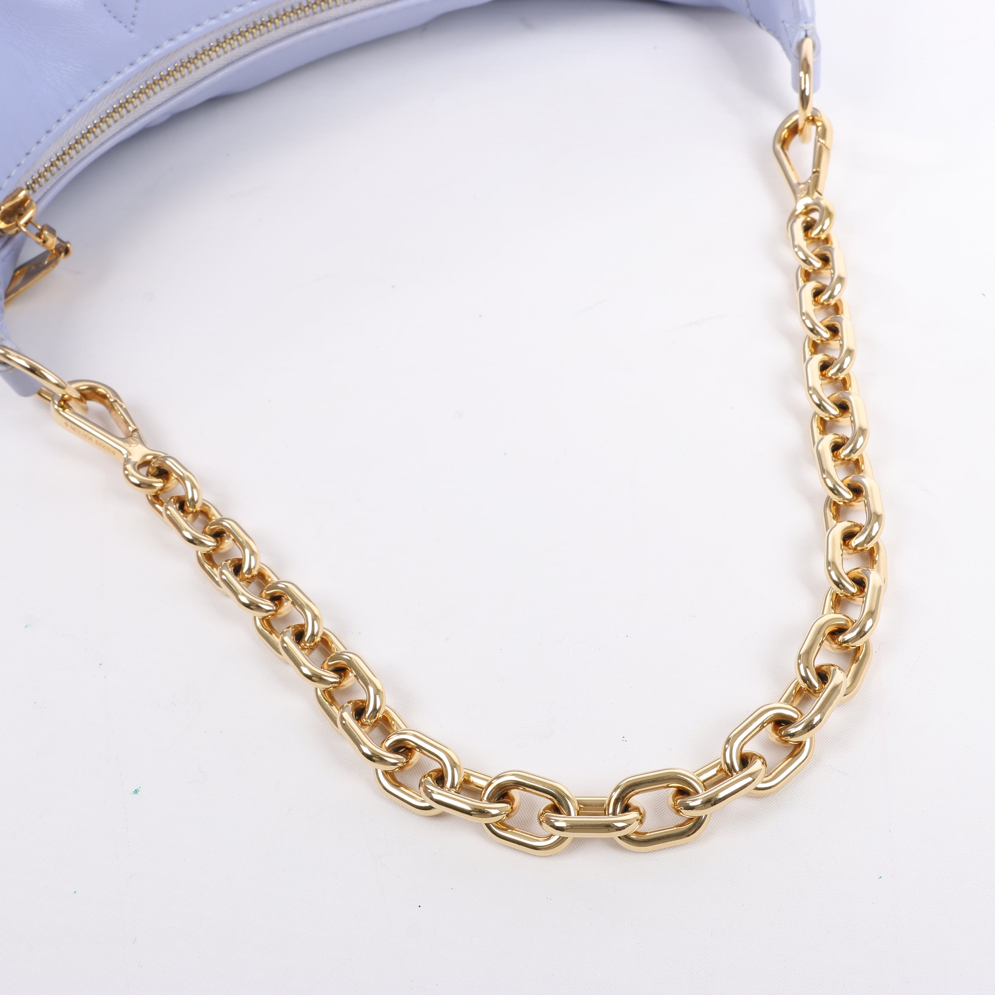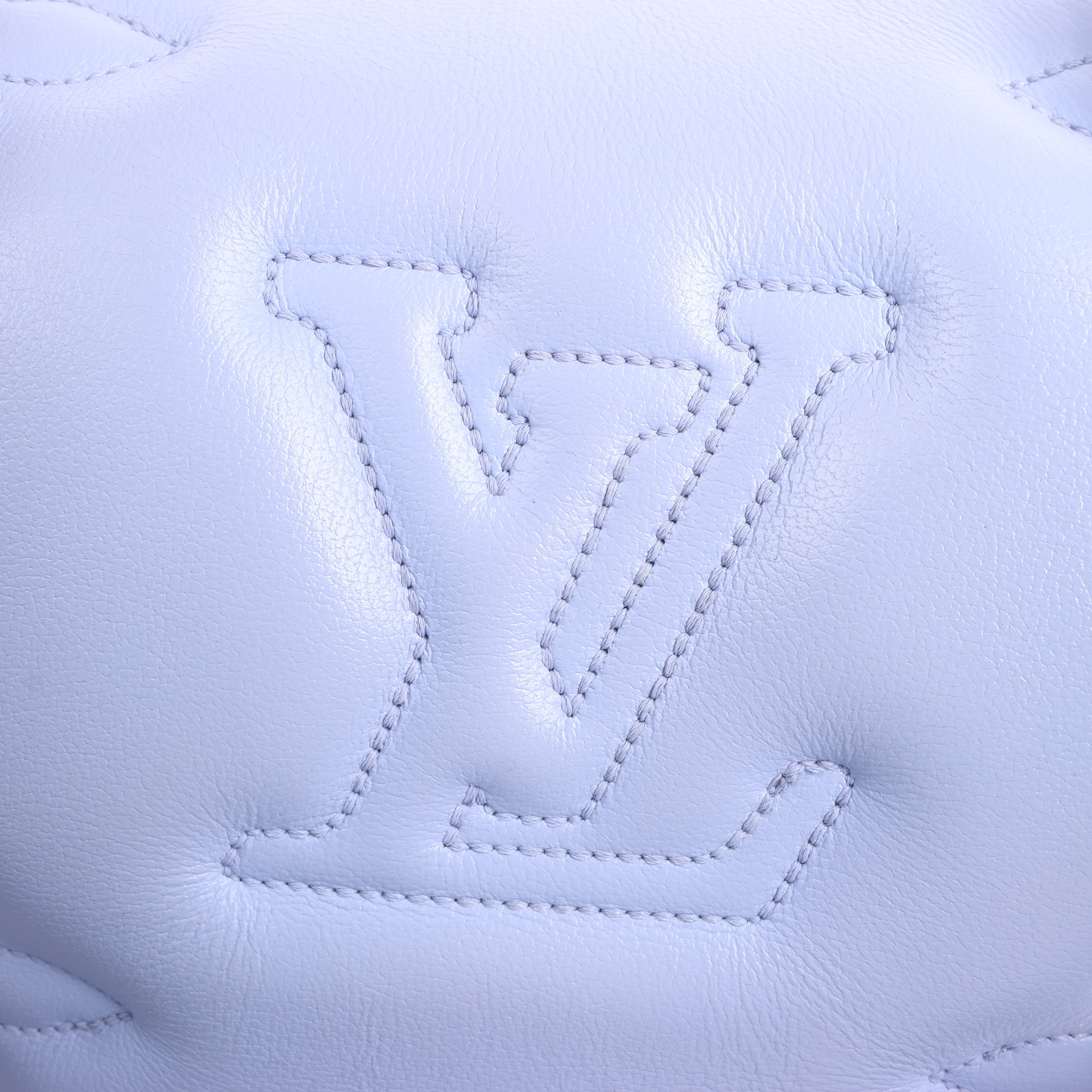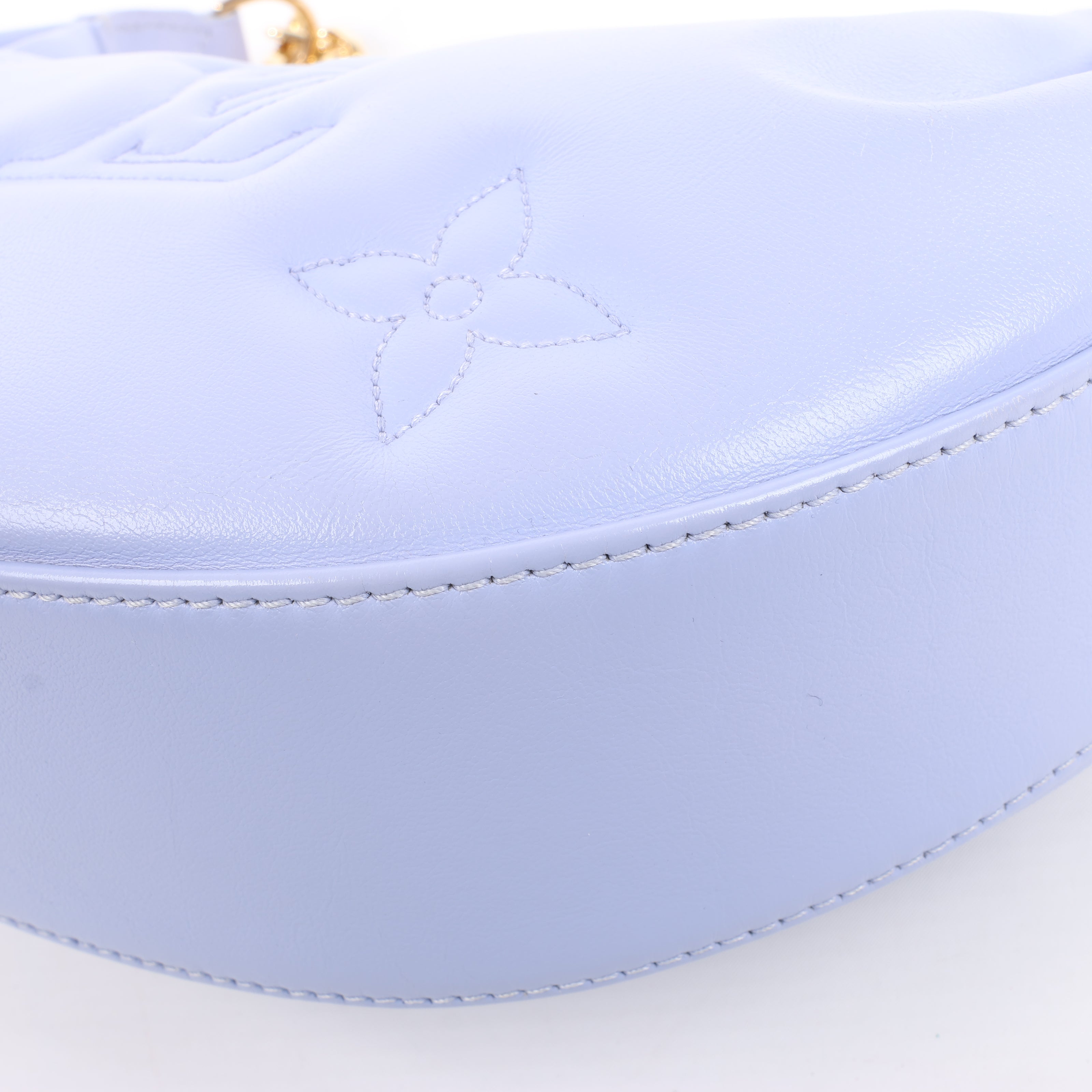 Louis Vuitton Over The Moon Bubblegram in soft purple quilted leather, M20856. Features embossed Monogram, chunky gold-tone chain, and adjustable strap—youthful charm meets signature LV style.