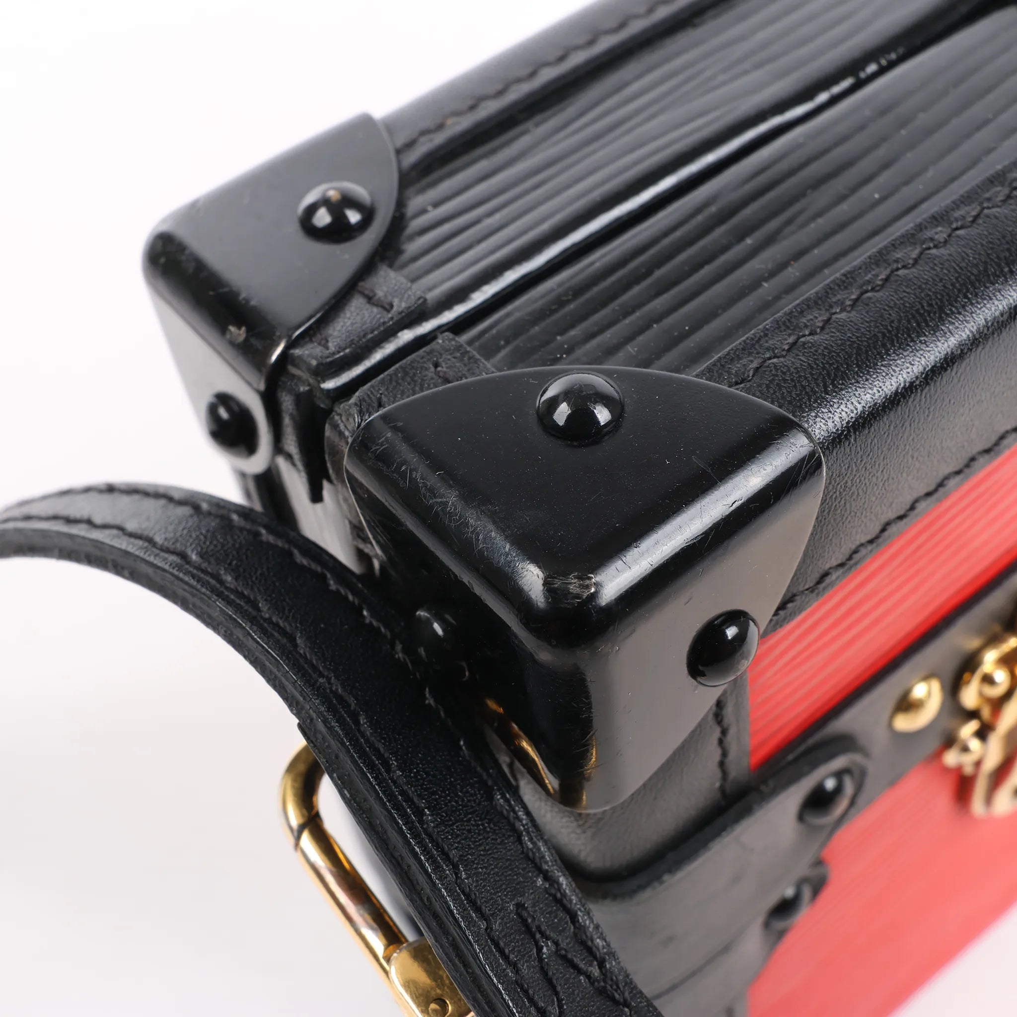 Make a bold statement with the Louis Vuitton Petite Malle Shoulder Bag (M54651), crafted in striking red and black Epi leather. This trunk-inspired piece features iconic gold-tone hardware and offers a perfect blend of Parisian heritage and modern luxury.