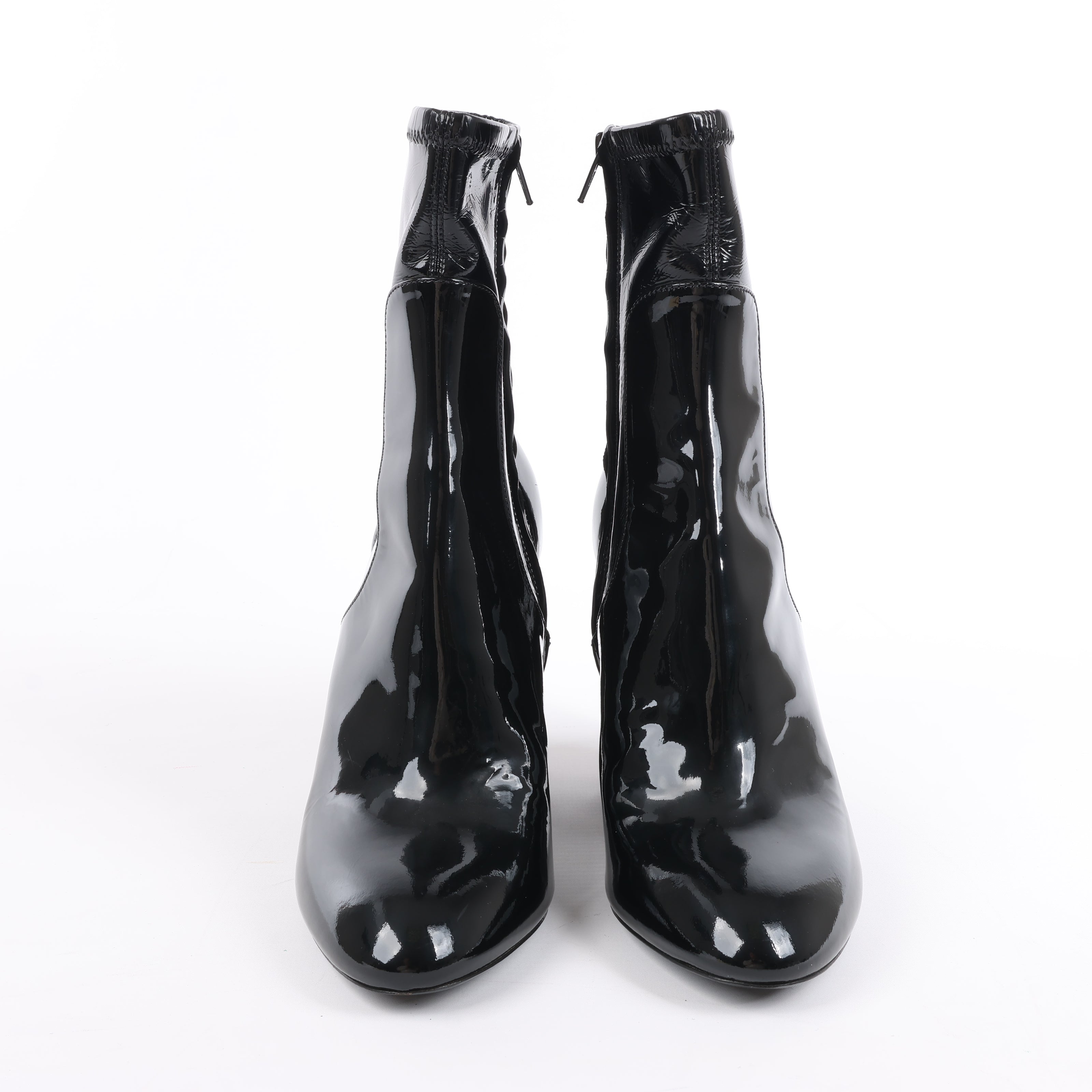 Louis Vuitton Louis Vuitton Silhouette Lines Patent Leather Ankle Boots in Black BR0137, Size 37.5 EU