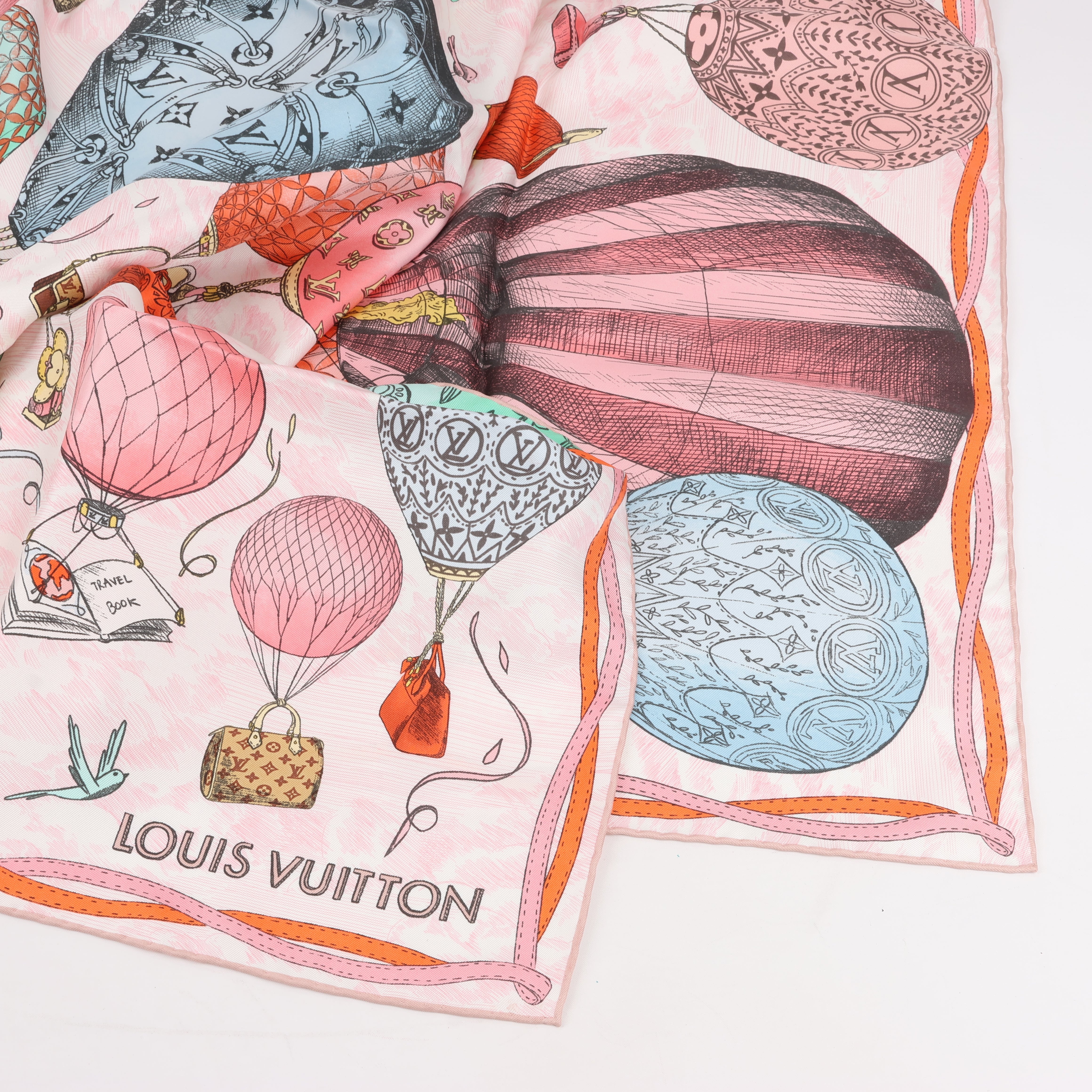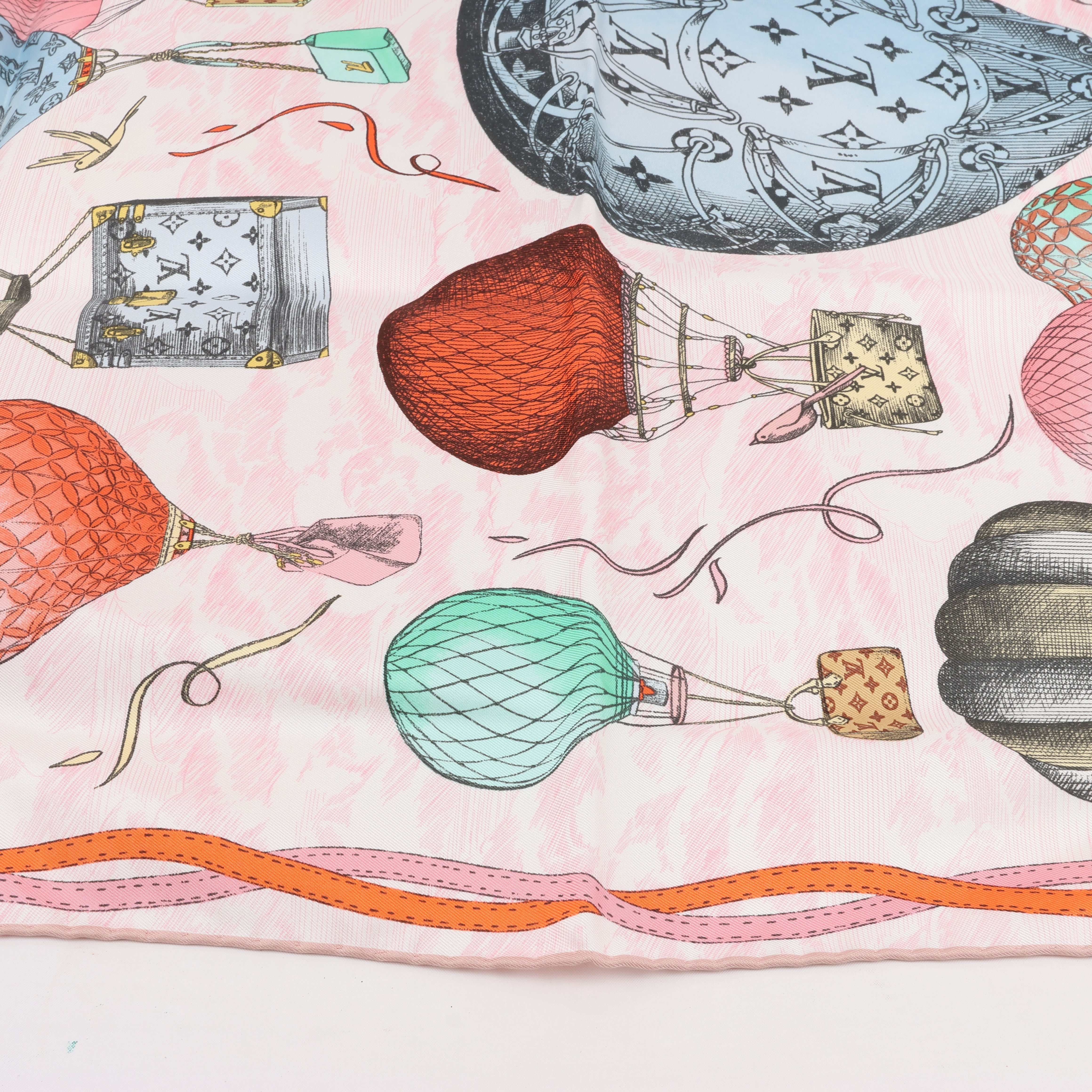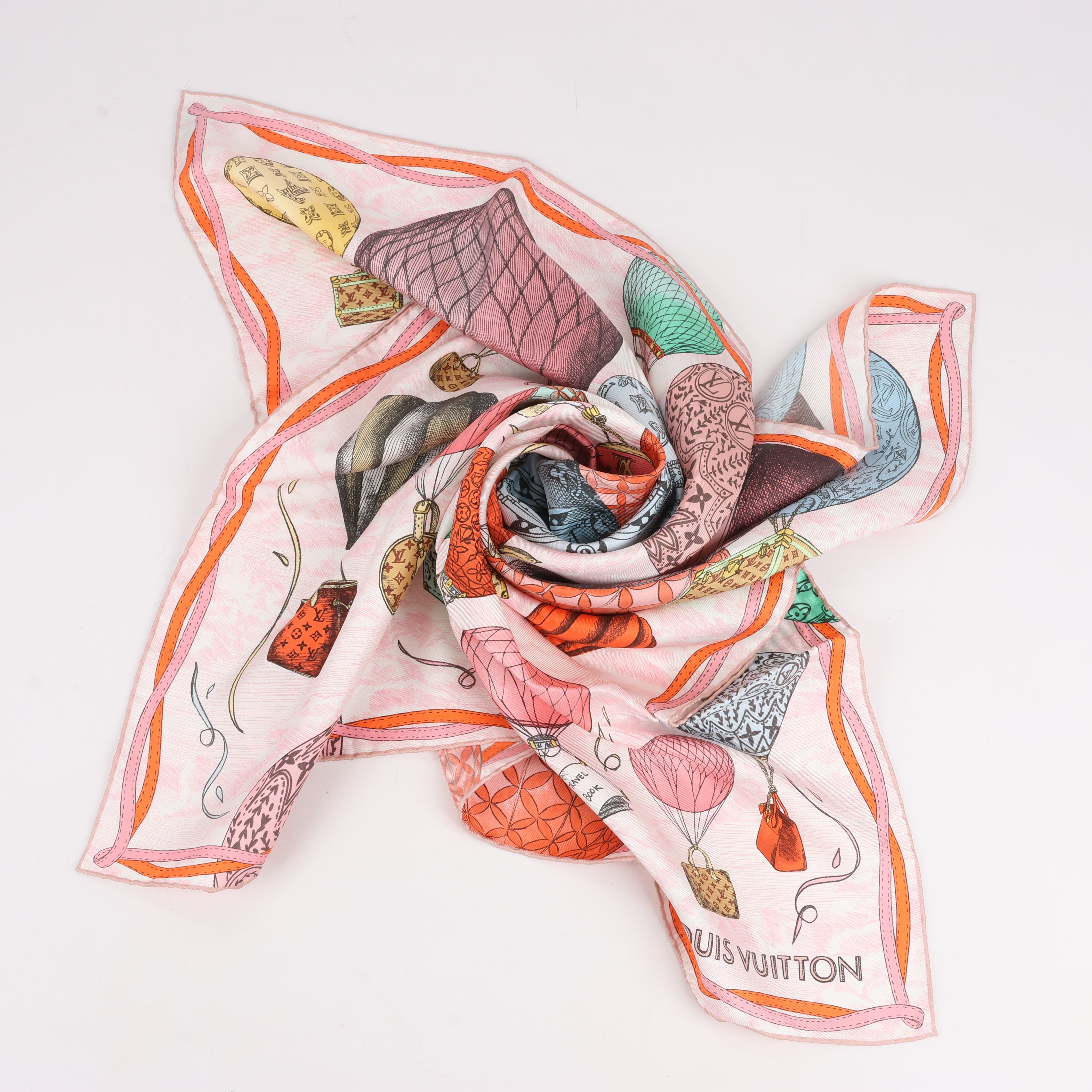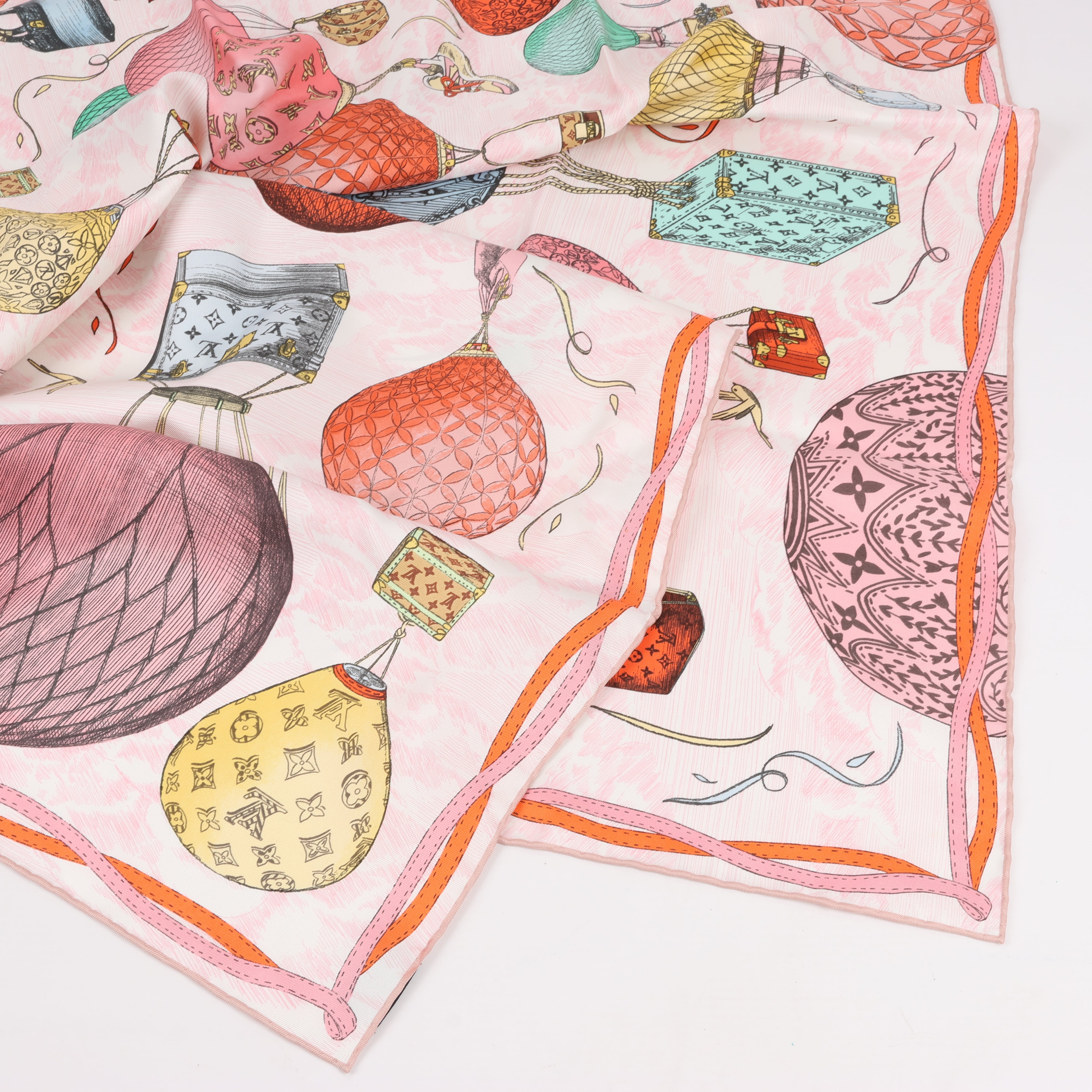 Brand: Louis Vuitton Size: 90x90 cm Condition: Never wornCondition Details: - Missing composition tagMain Colour: PinkColours: Beige, Orange, BlueMain material: 100% silkManufactured In: ItalyComes With: Box
