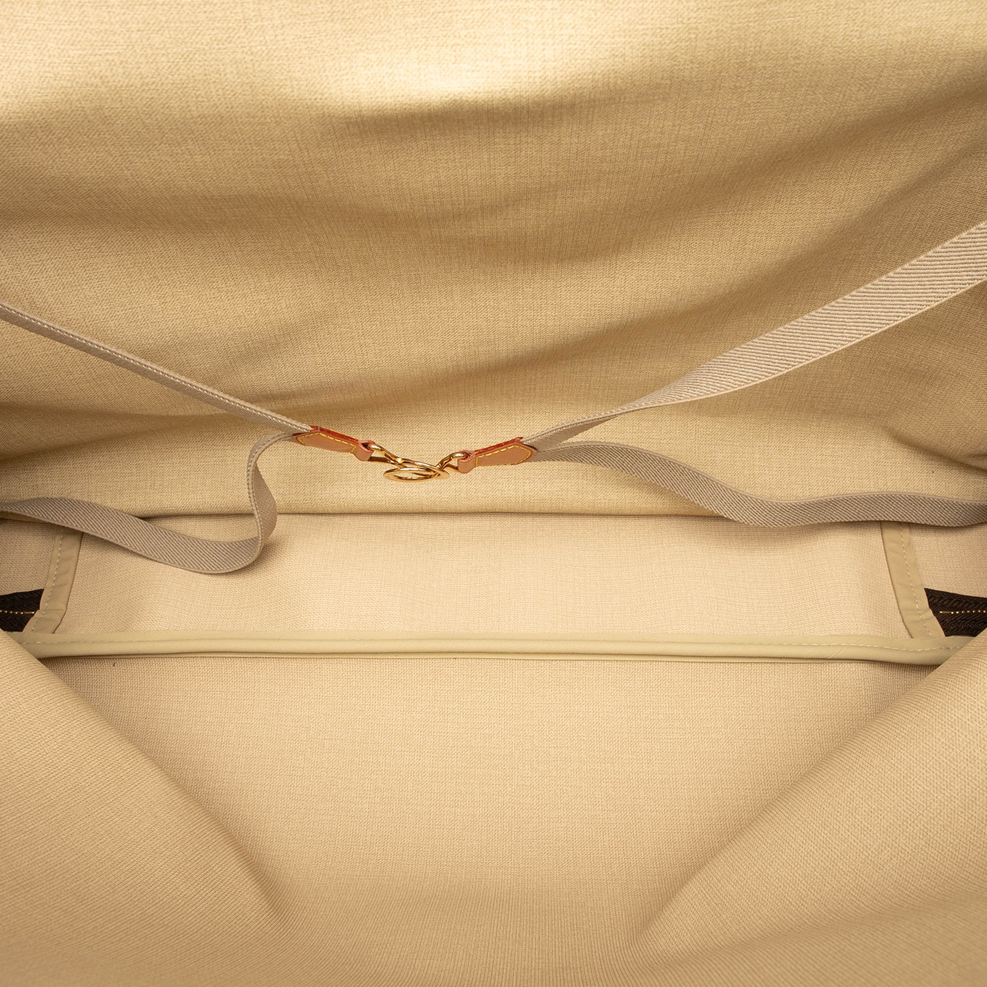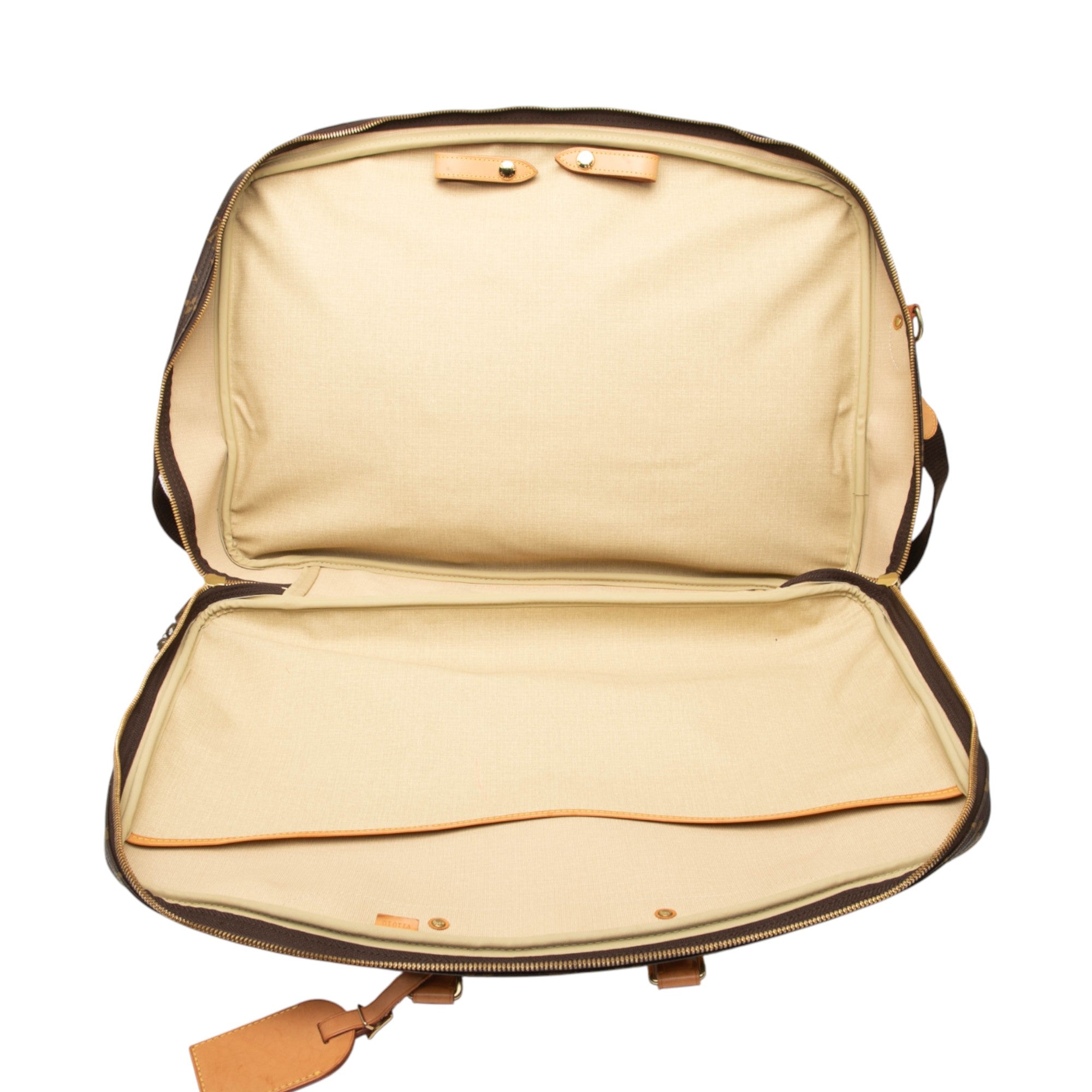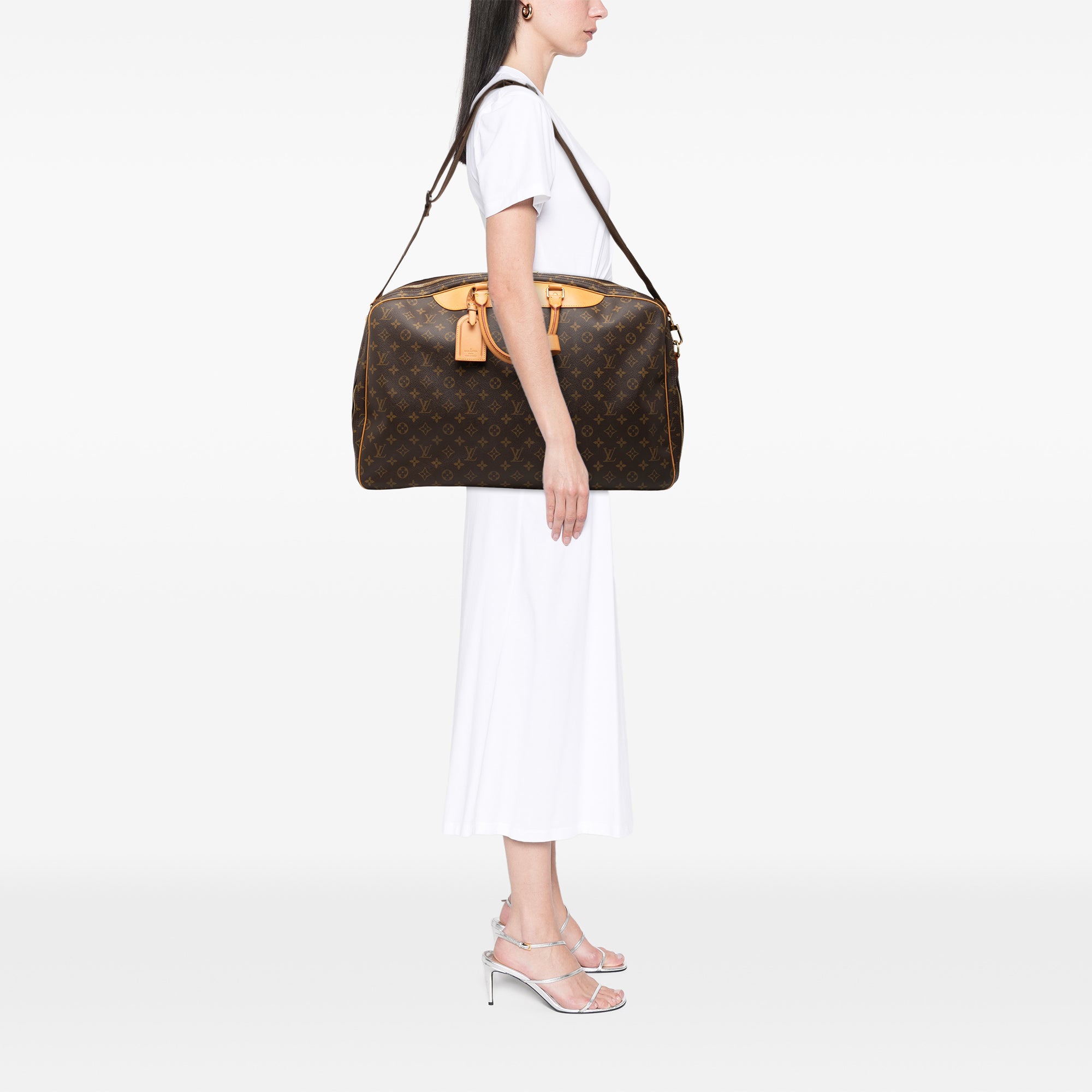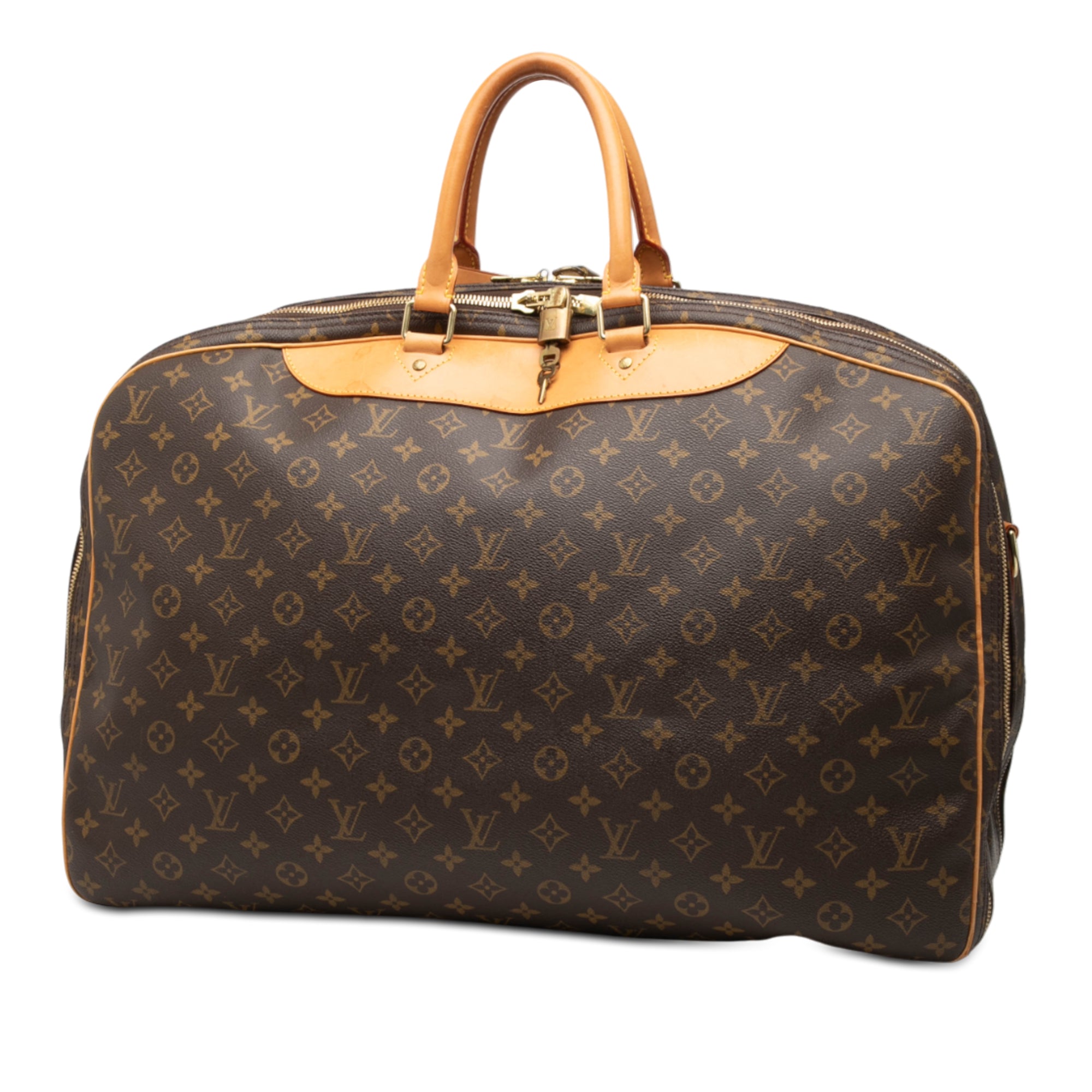The Alize 3 Poches features a monogram canvas body with vachetta leather trim, rolled vachetta leather handles, an adjustable flat strap, a dual compartments with zip around closure, and interior slip pockets. Retail Price: 2100.00