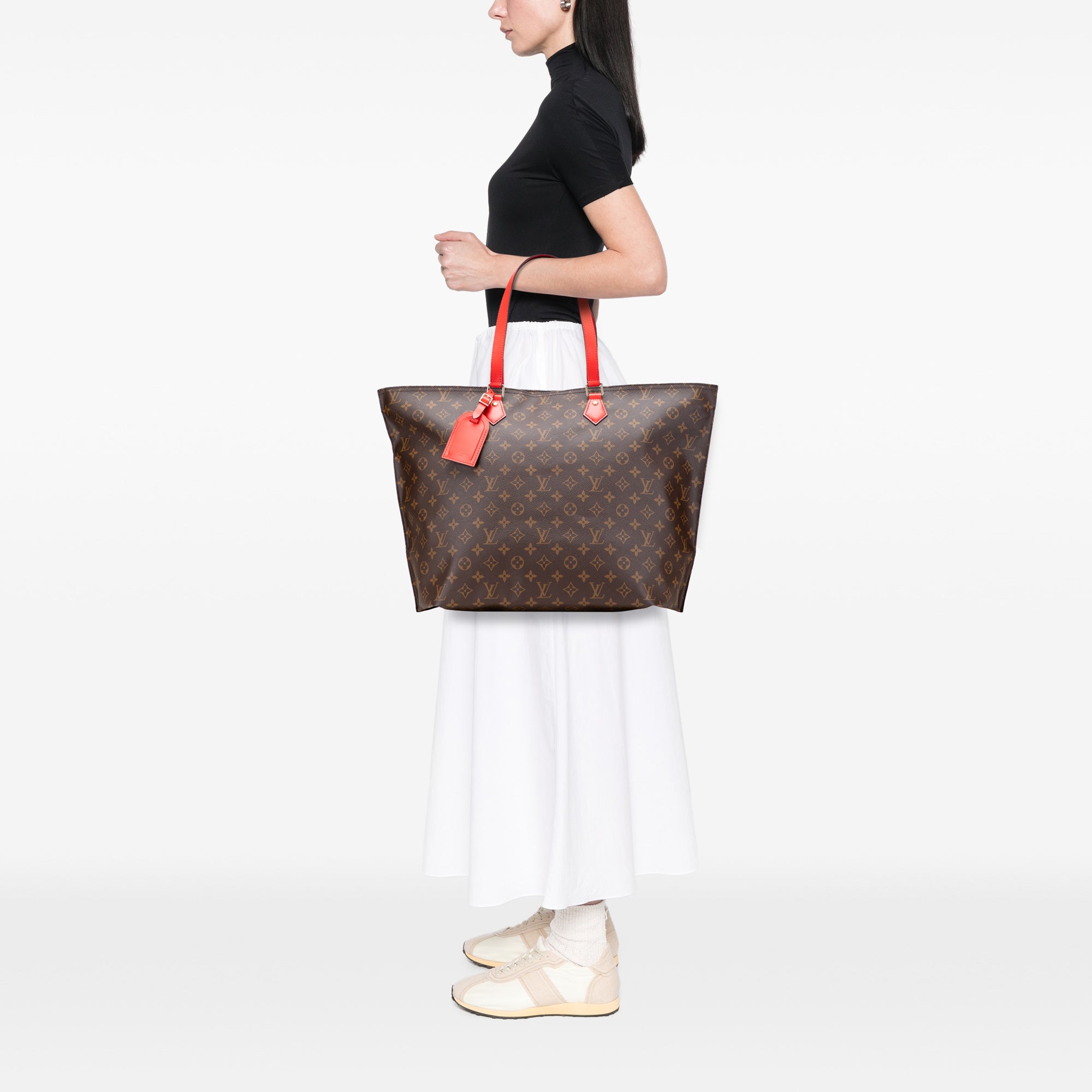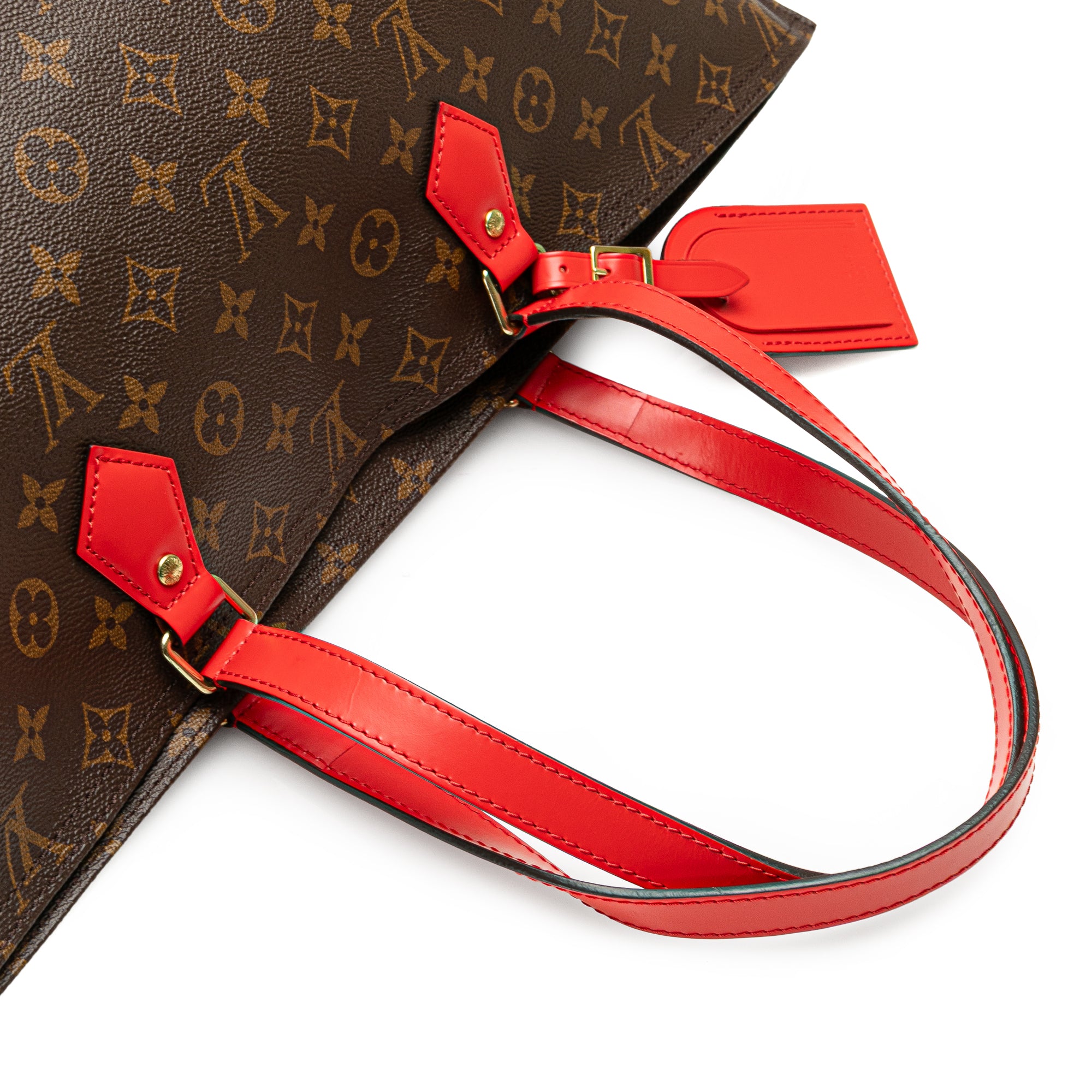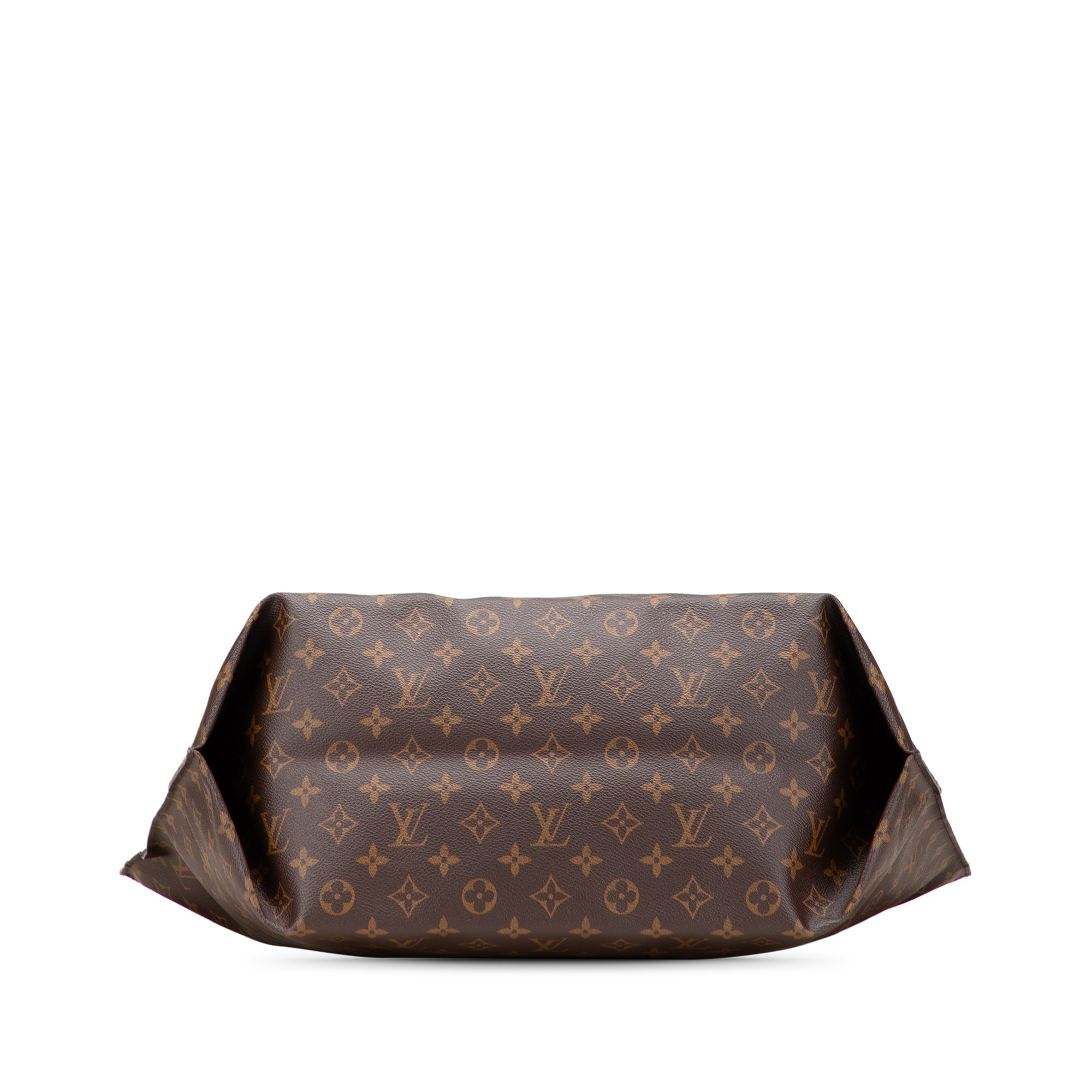 The All-In MM features a monogram canvas body, flat leather straps, a top zip closure, and an interior zip pocket. Retail Price: 1620.00