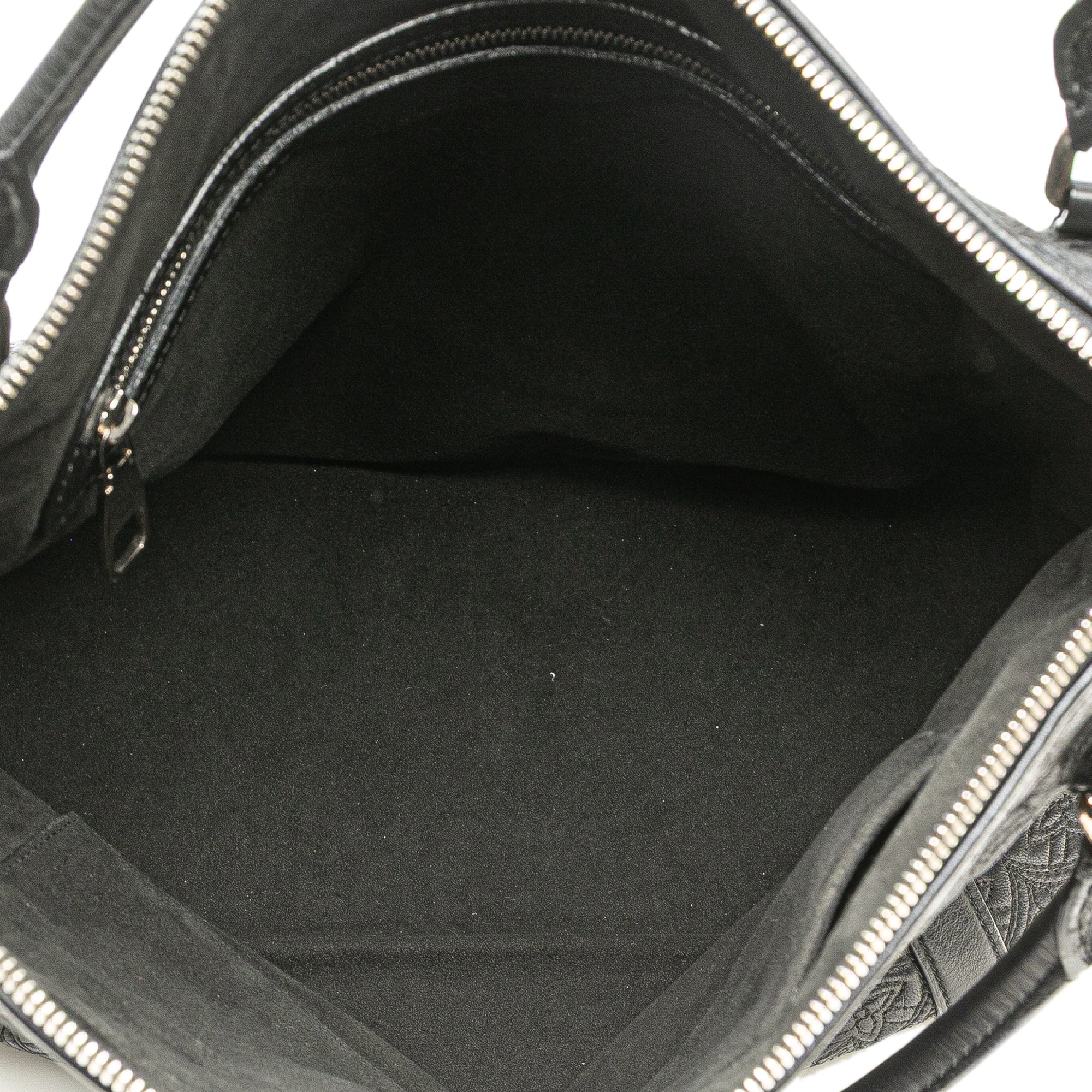 The Antheia Ixia MM features an embroidered lambskin leather body, rolled handles, a detachable flat strap, a top zip closure, and interior zip and slip pockets. Retail Price: 3850.00