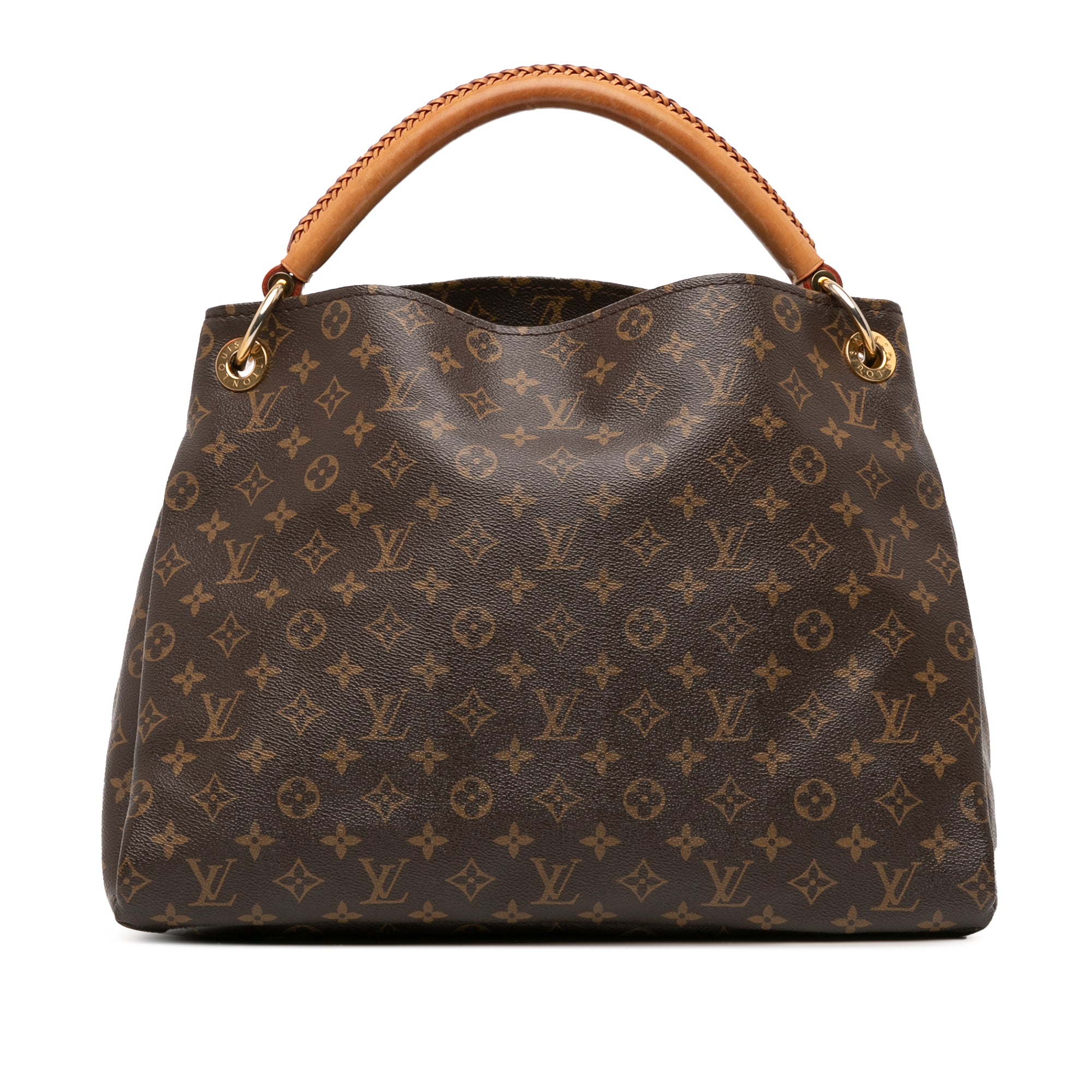 The Artsy MM features an monogram canvas body, a rolled vachetta leather strap, an open top, and interior zip and slip pockets. Retail Price: 2405.00