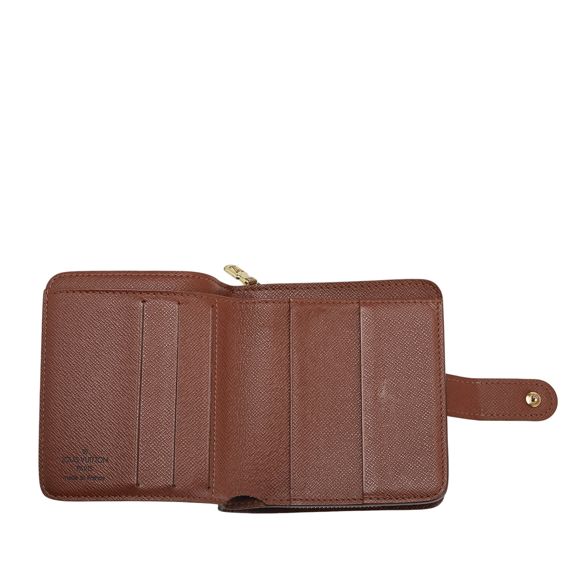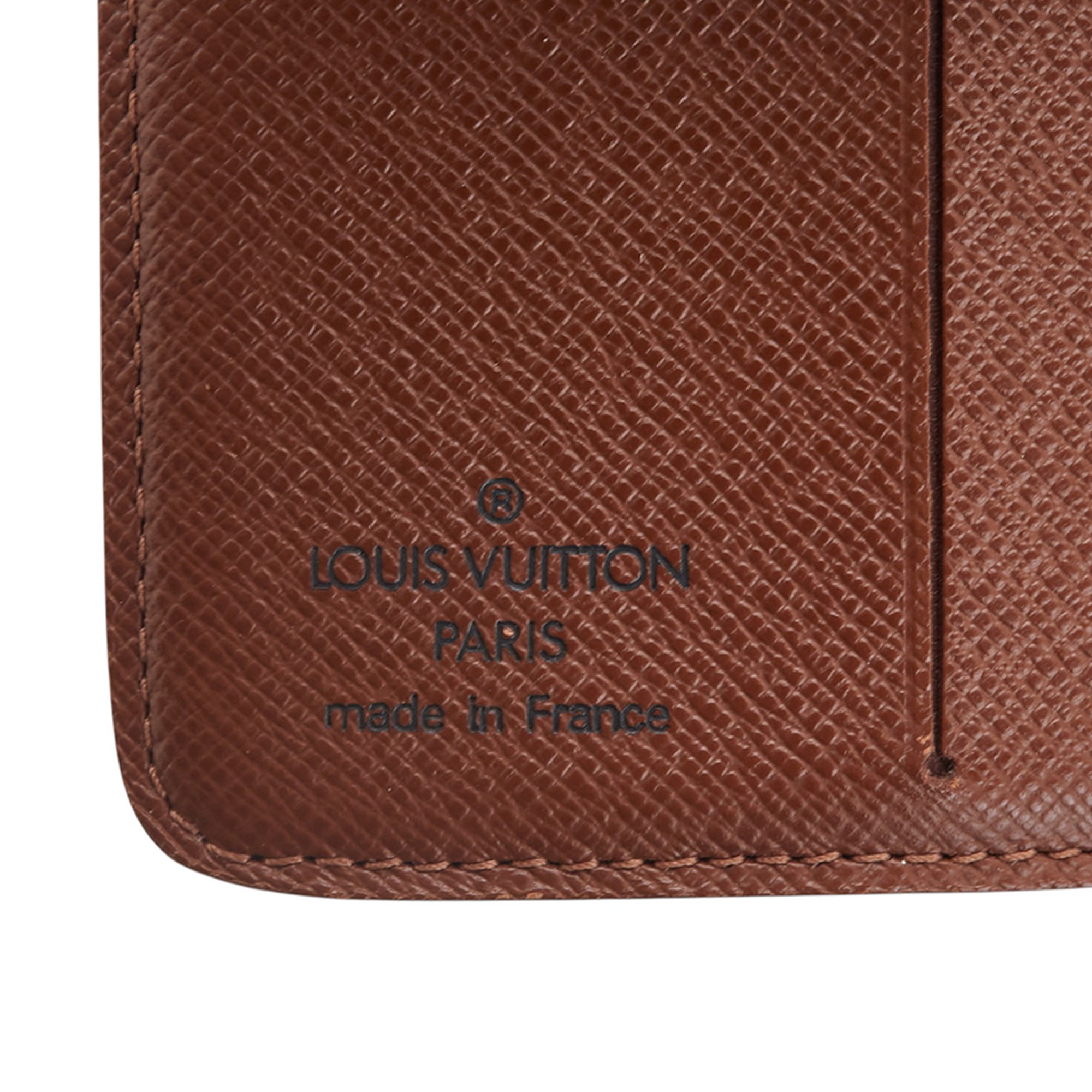 This wallet features a monogram canvas body, a strap and snap button closure, a zip-around compartment, and interior slip pockets. Inclusion: Dust bag, box. Retail Price: 700.00
