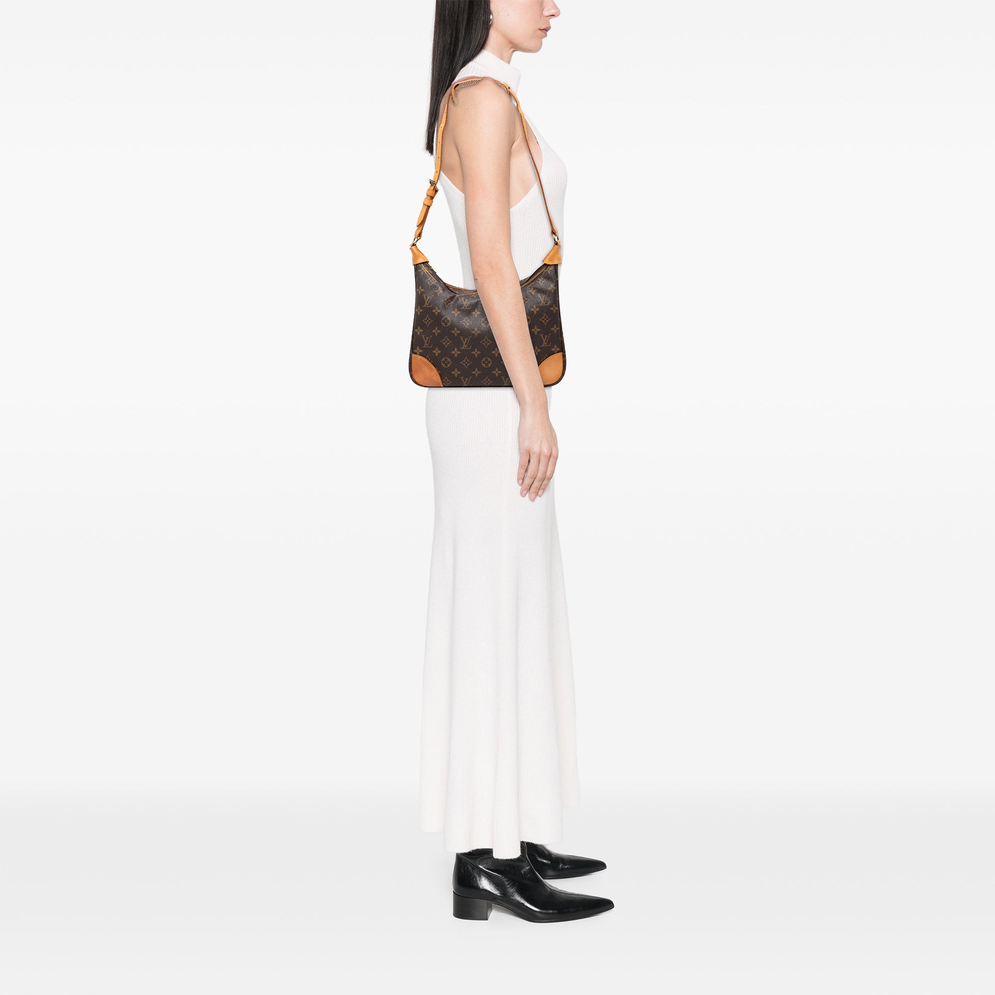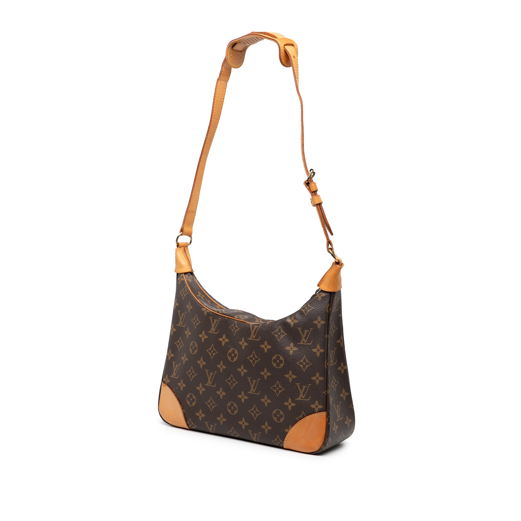 The Boulogne 30 features a monogram canvas body with vachetta leather trim, an adjustable vachetta leather strap, a top zip closure, and an interior zip pocket. Inclusion: Dust bag. Retail Price: 1040.00
