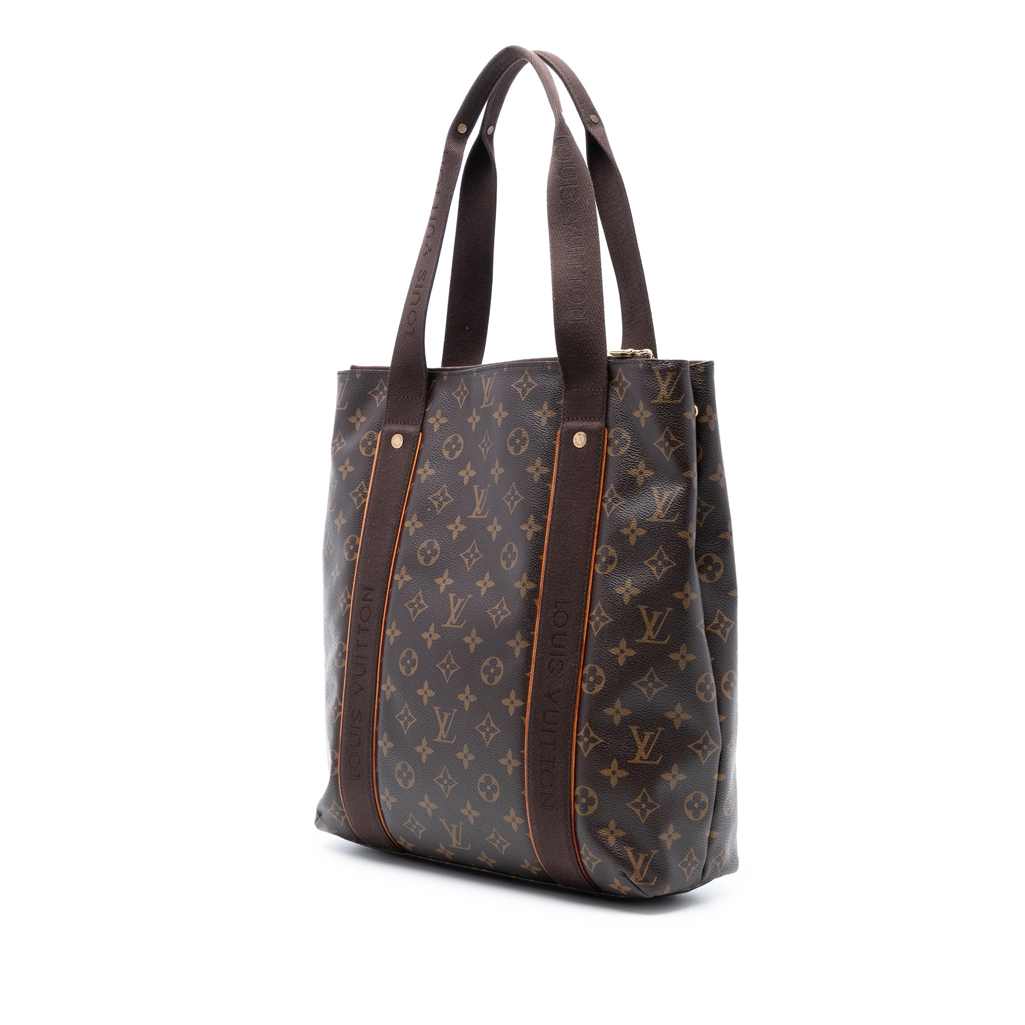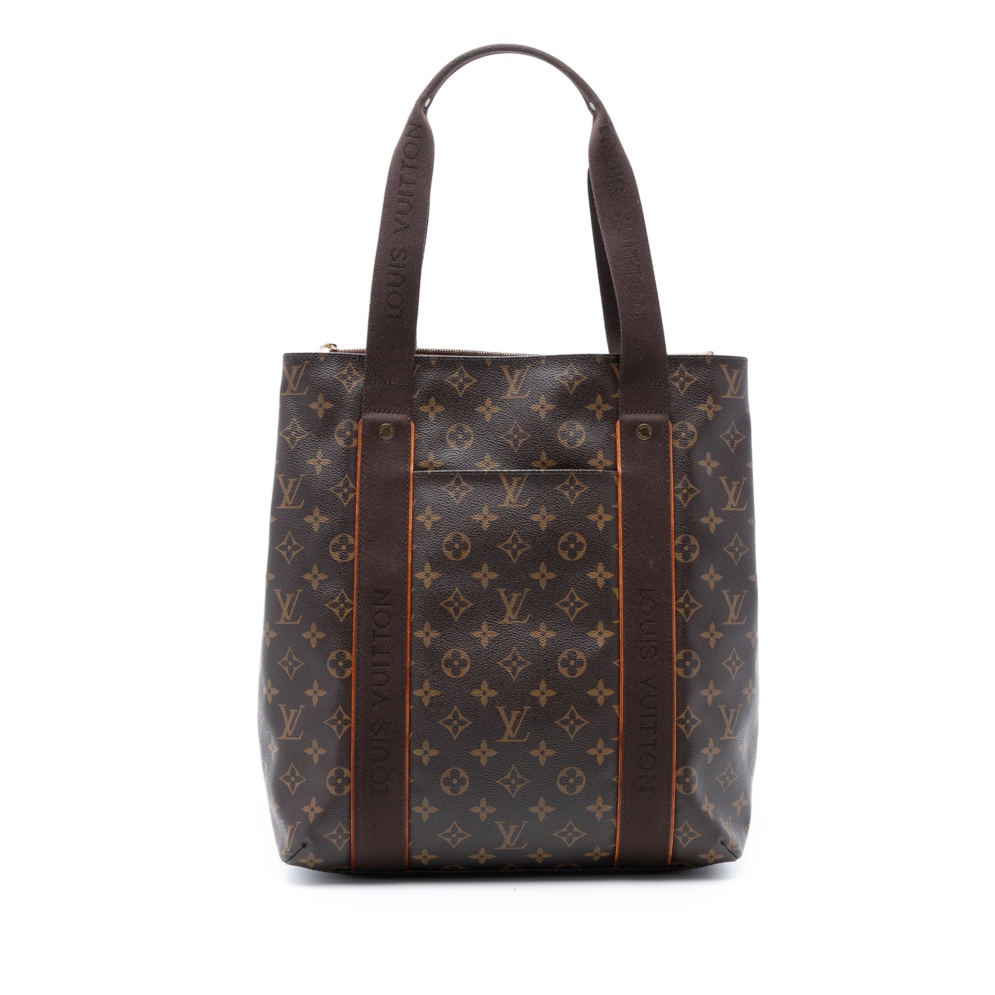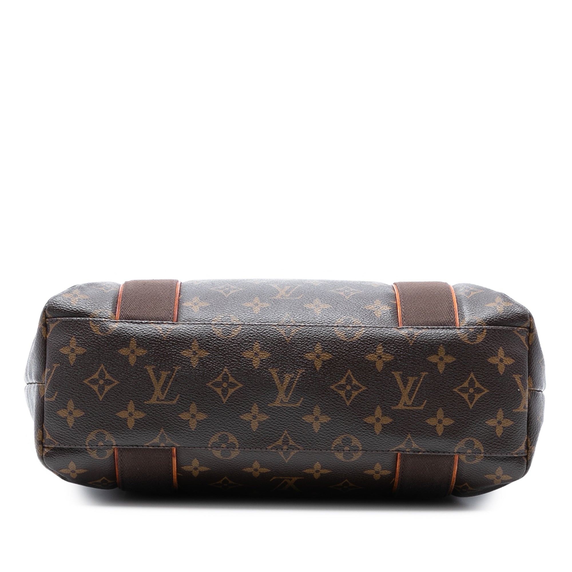 The Beaubourg features a monogram canvas body, extended flat canvas straps, an open top, a top zip compartment, an exterior front slip pocket, and interior slip pockets. Retail Price: 1150.00