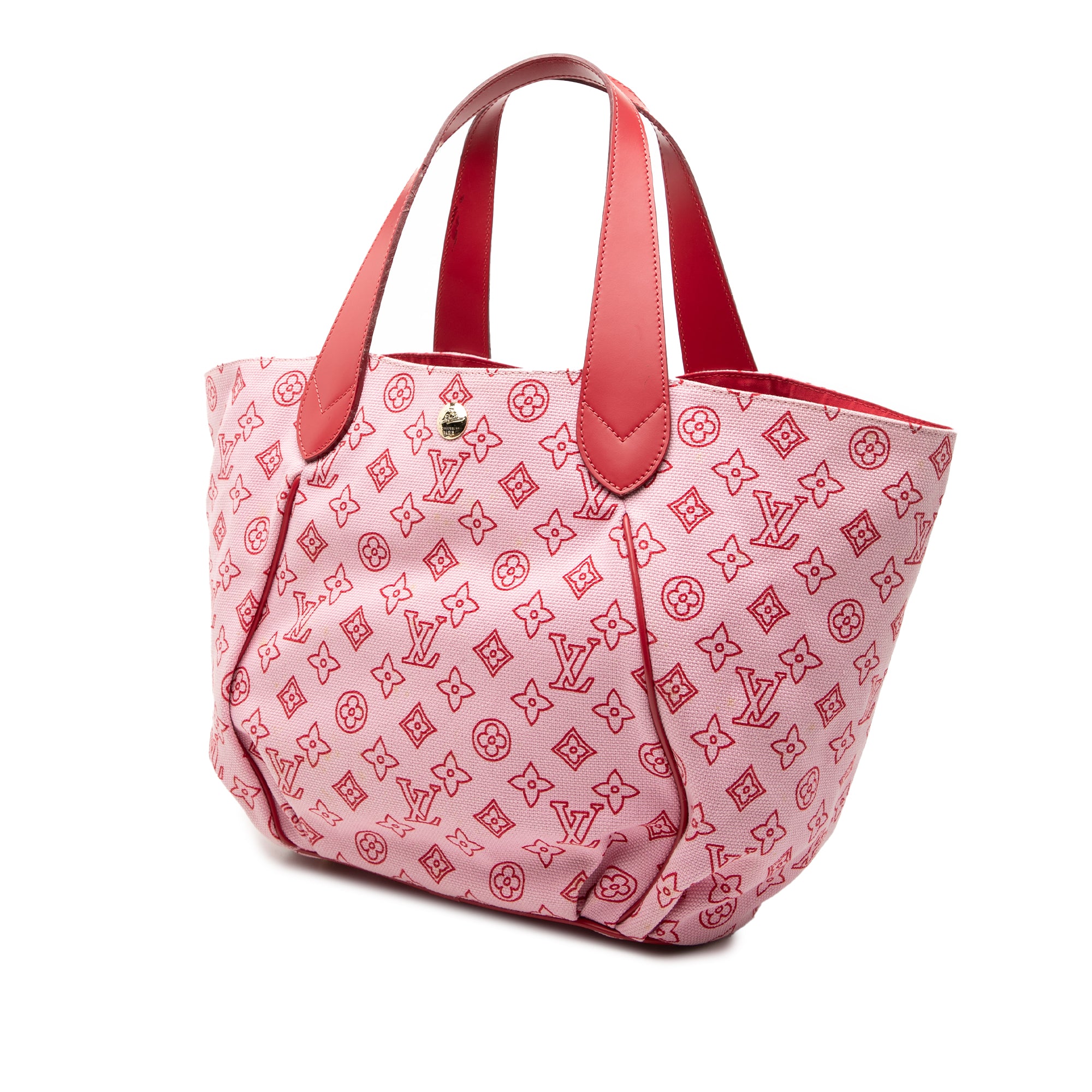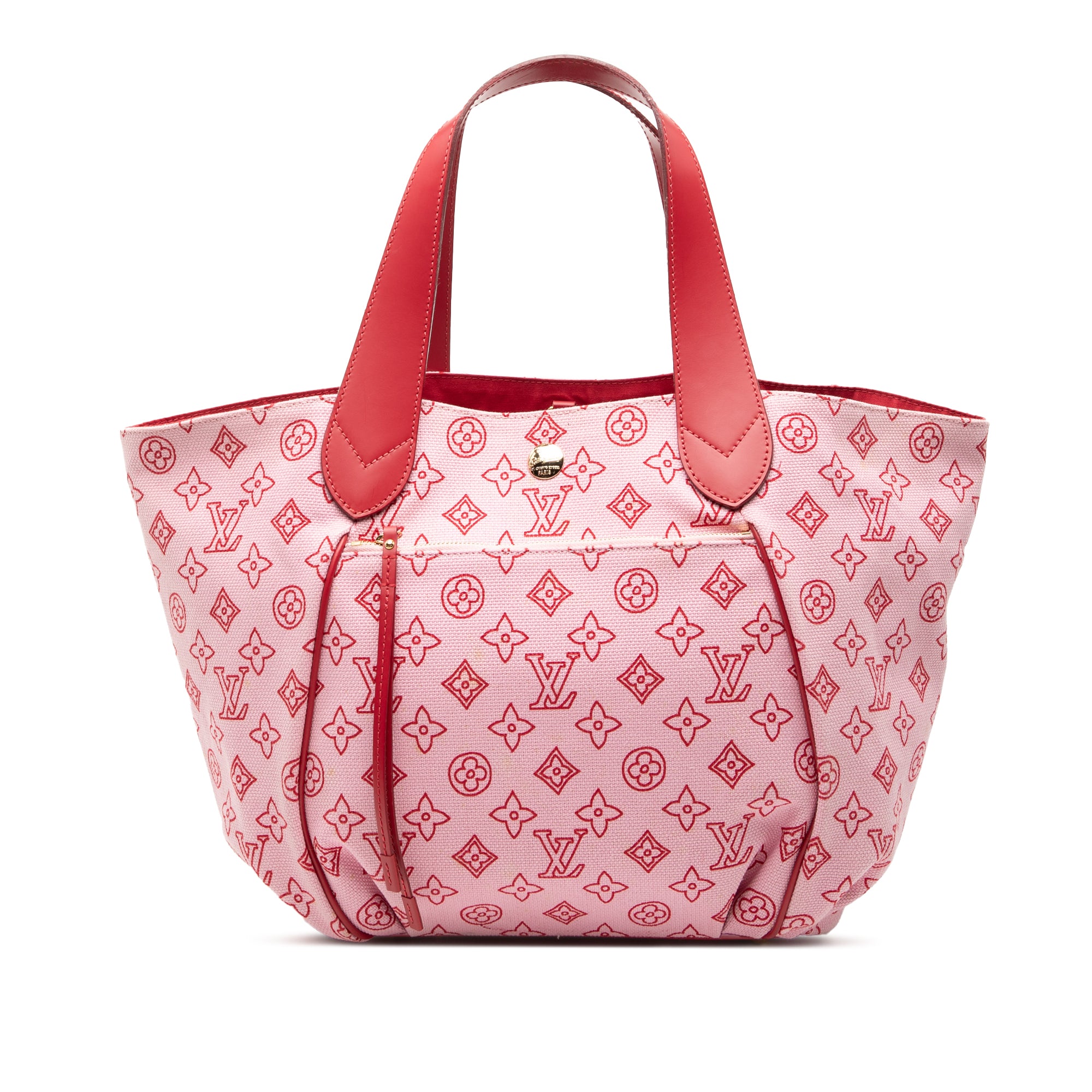 The Cabas Ipanema PM features a monogram canvas body, flat leather straps, an open top with a hook closure, an exterior front zip pocket, interior slip pockets, and a pouch inclusion. Retail Price: 1080.00