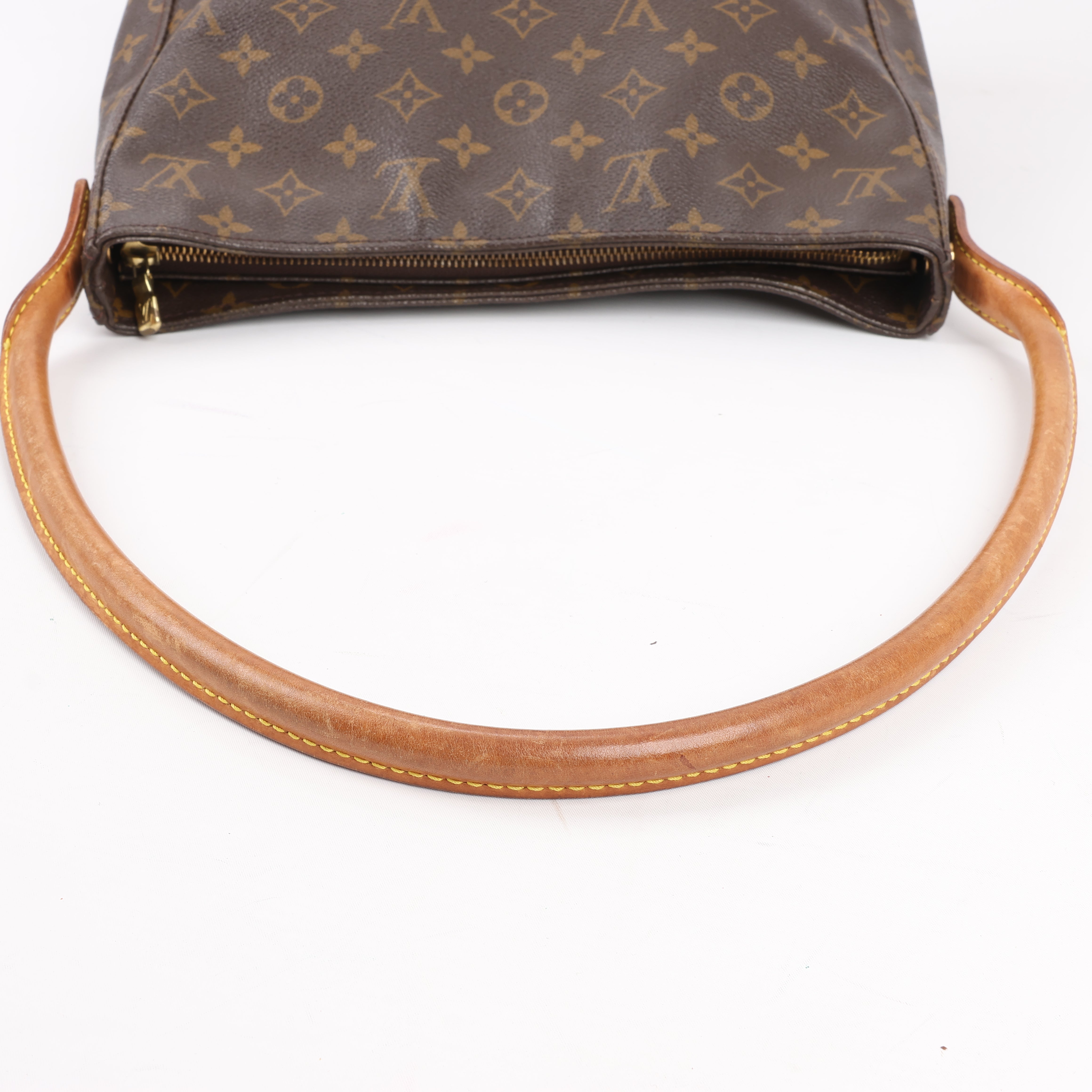 The Louis Vuitton Monogram Canvas Looping GM Shoulder Bag (M51145) is a timeless and elegant accessory. Crafted from iconic monogram canvas, it features a unique looping handle, spacious interior, and zip closure, blending classic design with practical functionality for everyday use.Brand: Louis VuittonModel: LoopingSize: GMWidth: 28 cmHeight: 31 cmExterior Condition: ExcellentInterior Condition: ExcellentCondition Details: The exterior coated canvas is clean and beautiful and in excellent condition. The leather handle is clean and in very good condition, but has light rubbings and scratches. The hardware has scratches. The interior is in great condition with rubbings. The date code is MI1909.Colour: BrownInterior Colour: BeigeHardware Colour: Gold Material: LeatherComes With: -