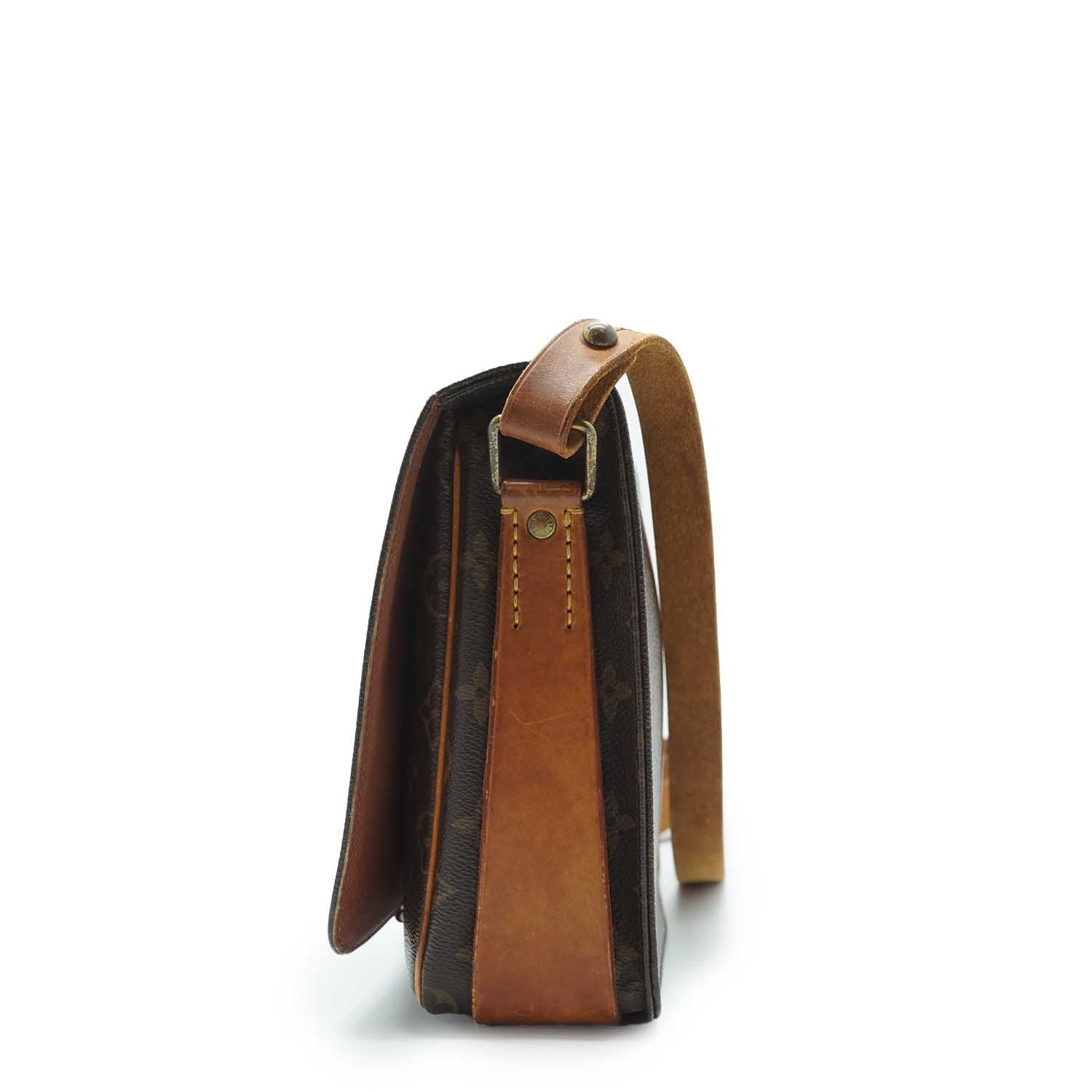 Monogram Cartouchiere GM Brown Canvas, LeatherDepth: 8cmHeight: 21cmWidth: 25cmHand Drop: 55cmOutside Rank: BCInside Rank: BStain: Visible water stains on the leather parts/strap overallDiscoloration: Hardware tarnish, visible discoloration marks on the leather partsScratch: Some scratches on the leather parts, minor corner rub, slight scratches on the insidePeeling: Minor leather cracking on the strapWorn: Previous use evidentOdor: No odor presentSerial code: SL0951SKU: 7030200
