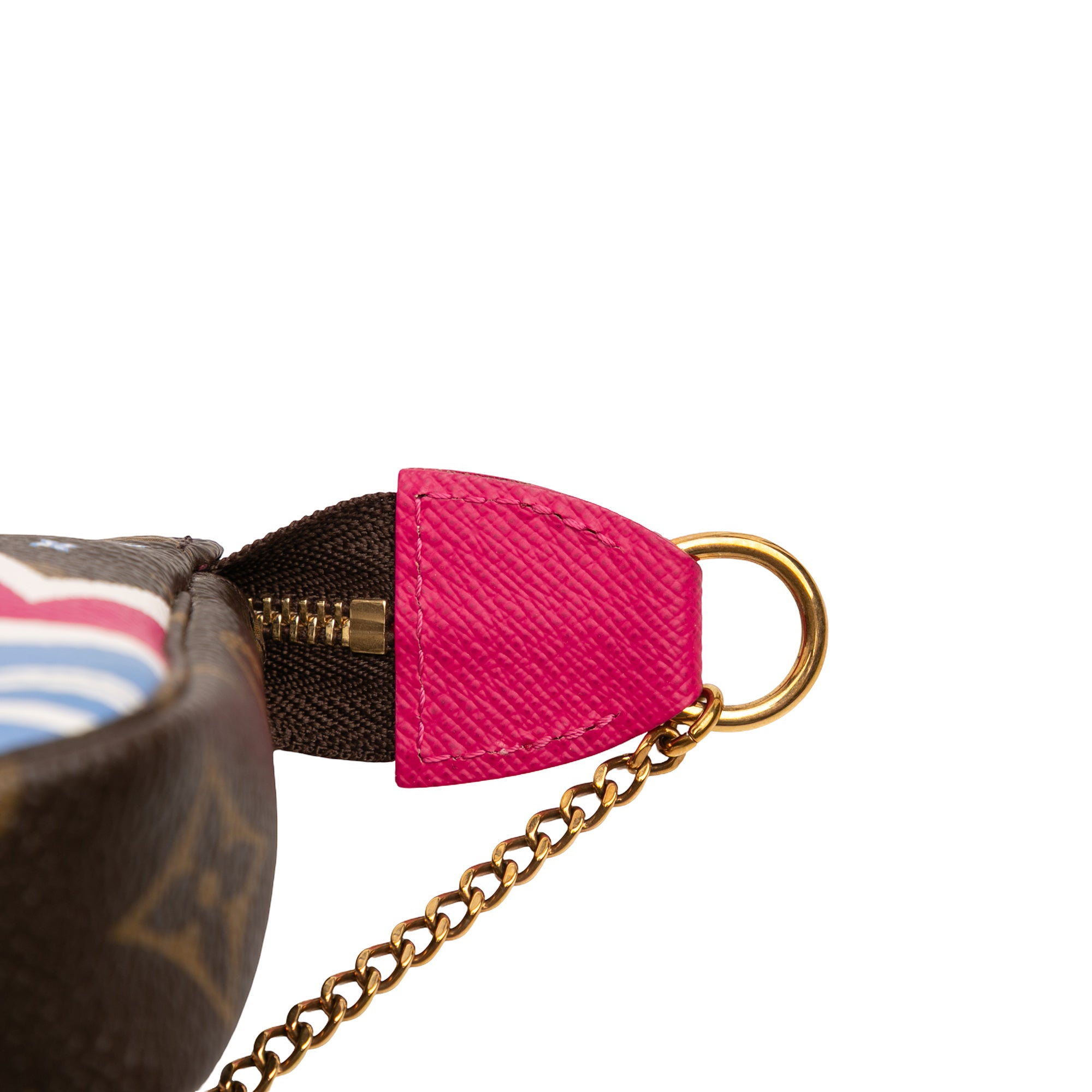 The Mini Pochette Accessoires features a printed monogram canvas body, a gold-tone chain handle, and a top zip closure. Inclusion: Dust bag. Retail Price: 1292.00
