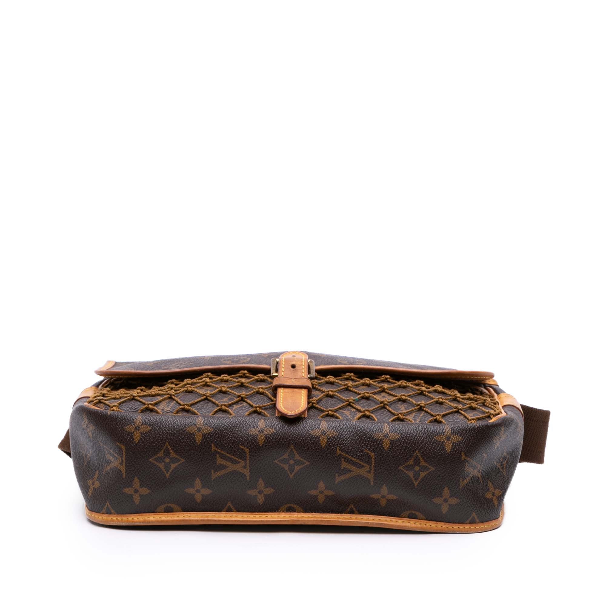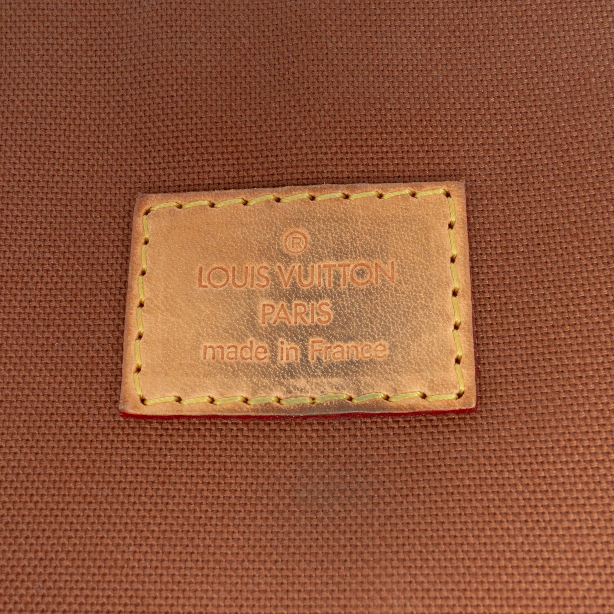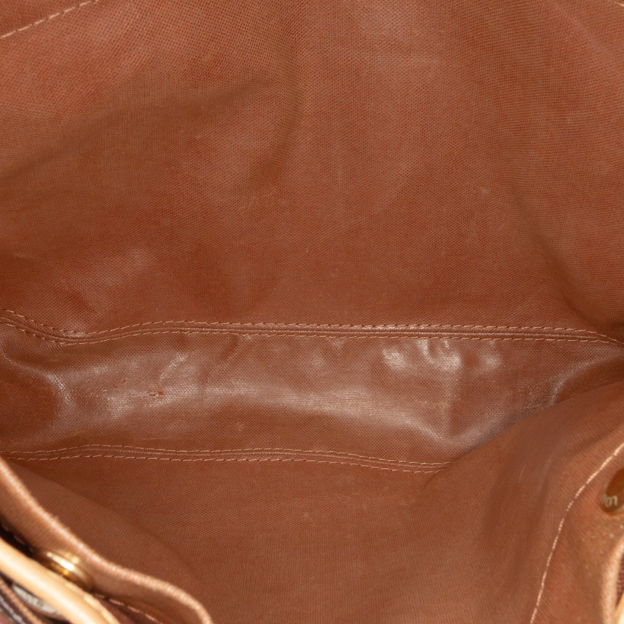 The Congo PM features a monogram canvas body with vachetta leather trim, an adjustable shoulder strap, a front flap with buckle closure, an exterior open pocket, and an interior slip pocket. Retail Price: 1800.00