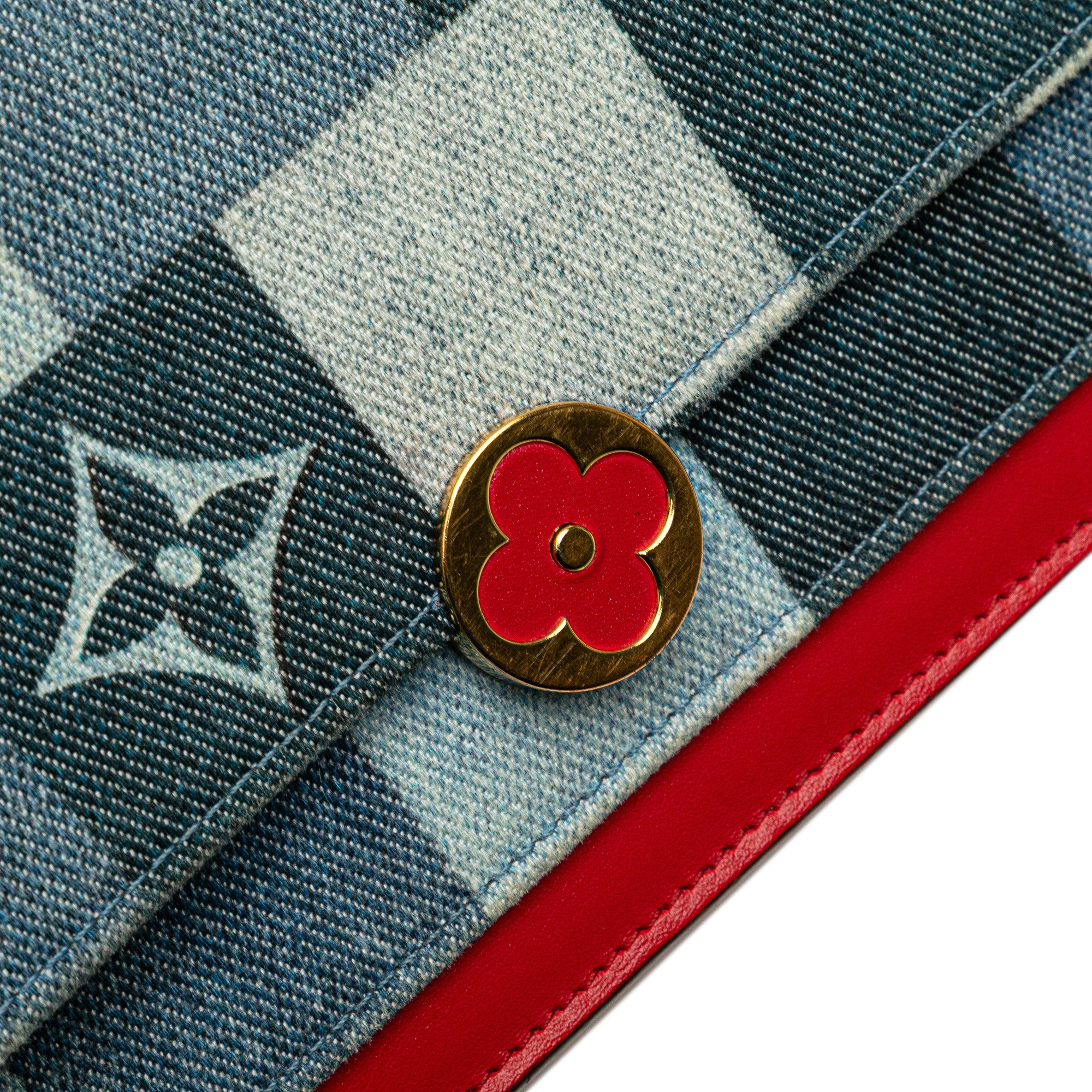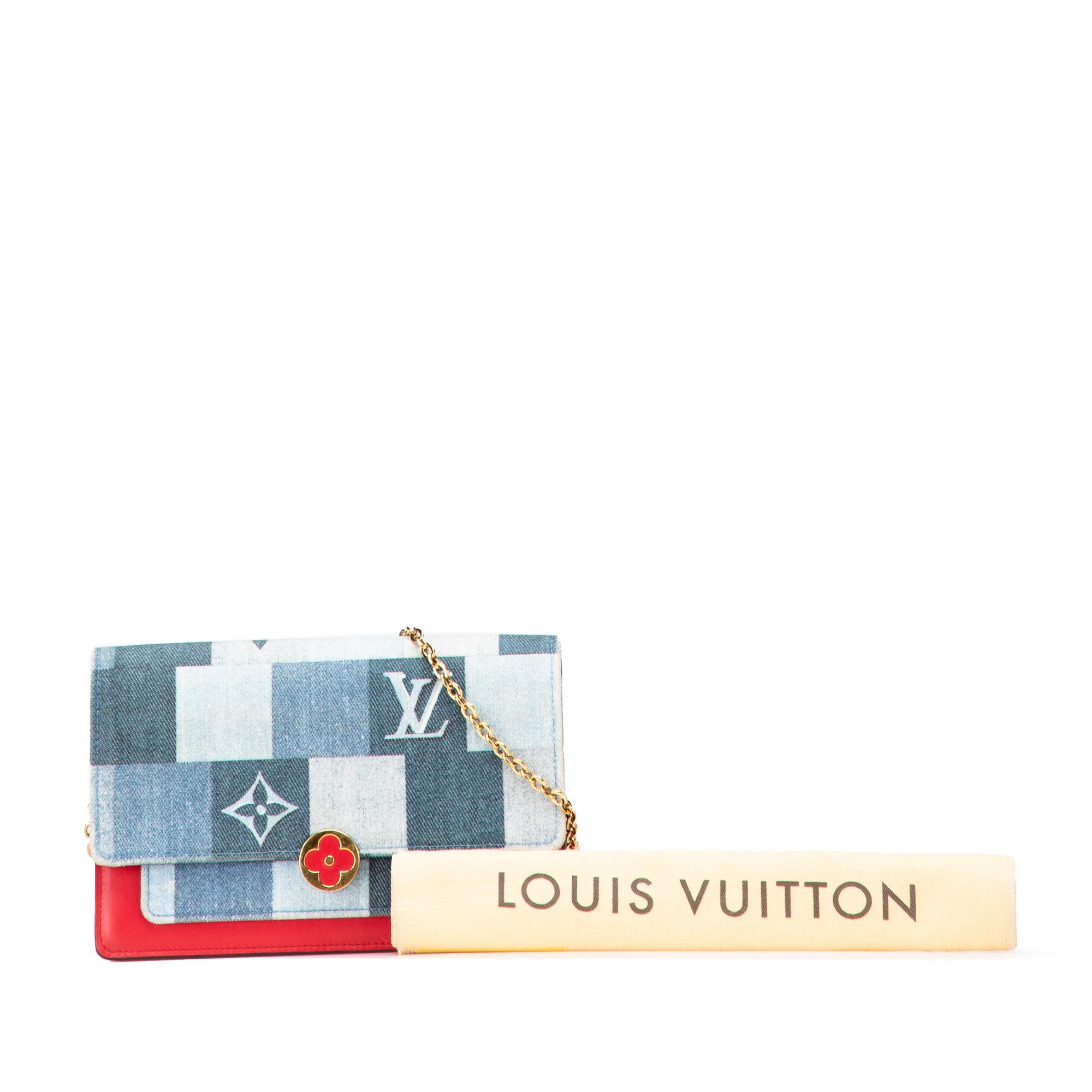 Louis Vuitton Monogram Denim Patchwork Fiore Chain Wallet