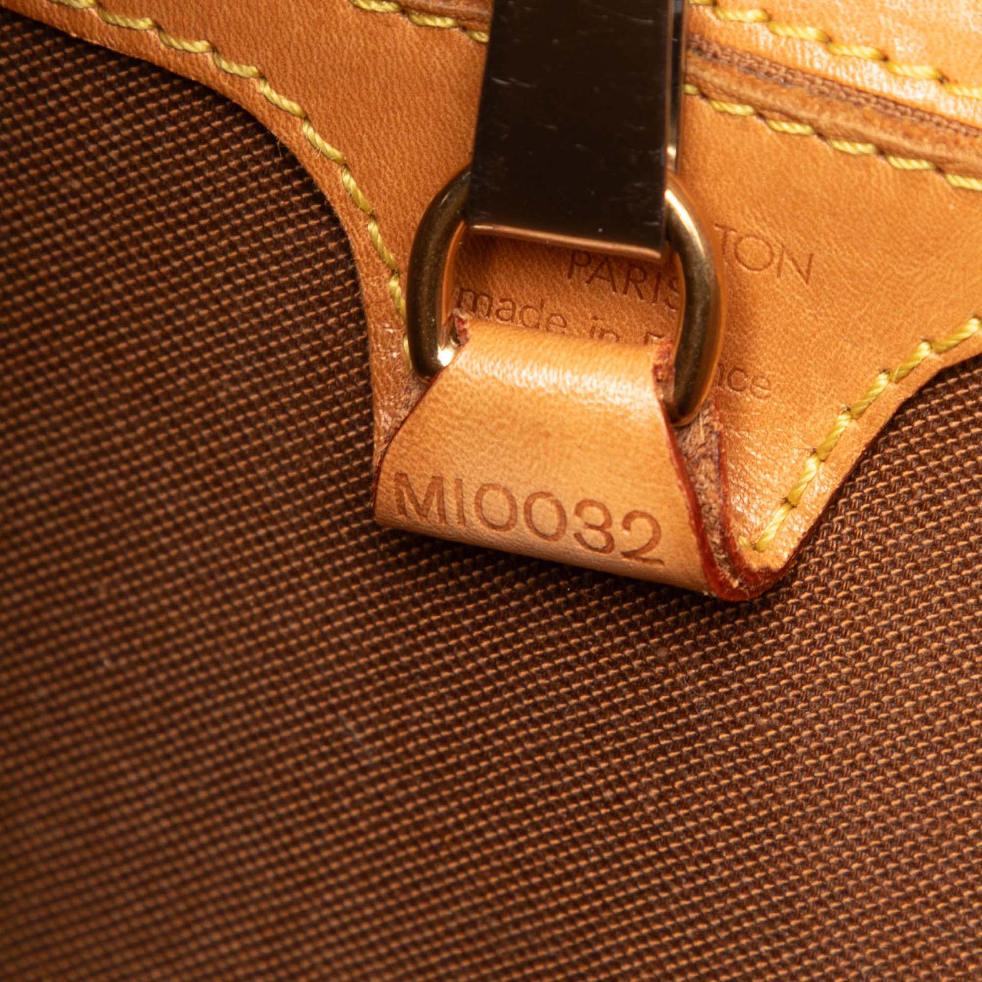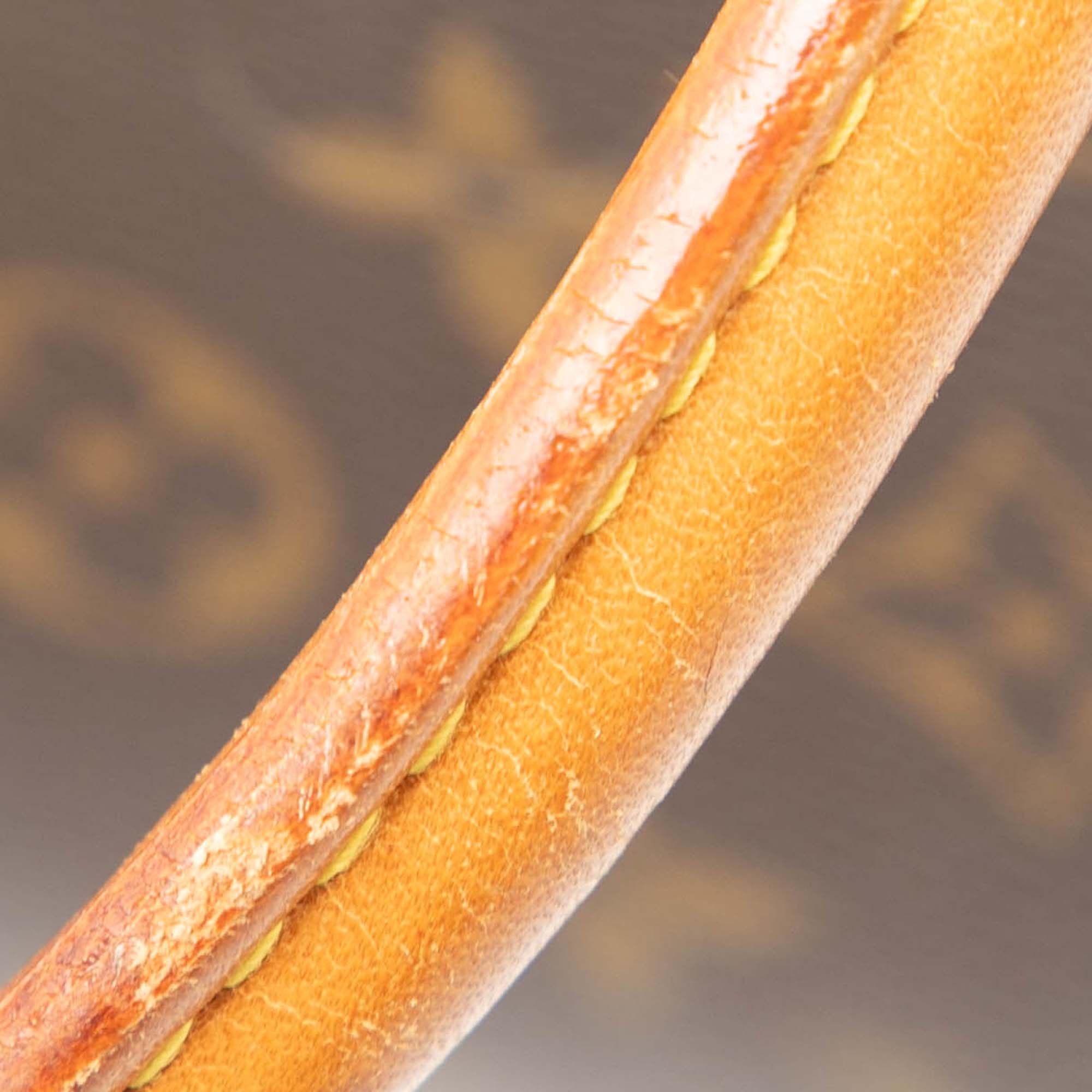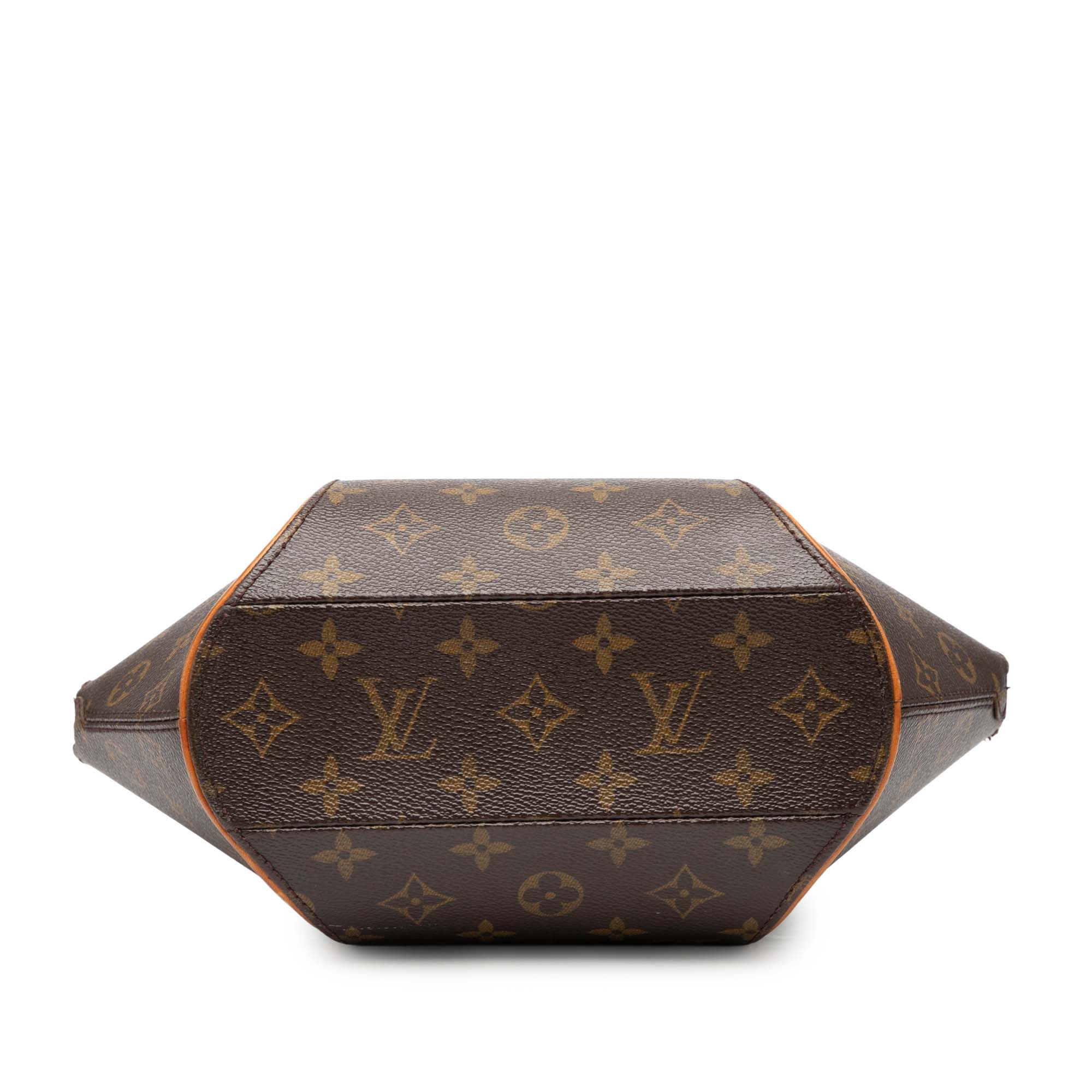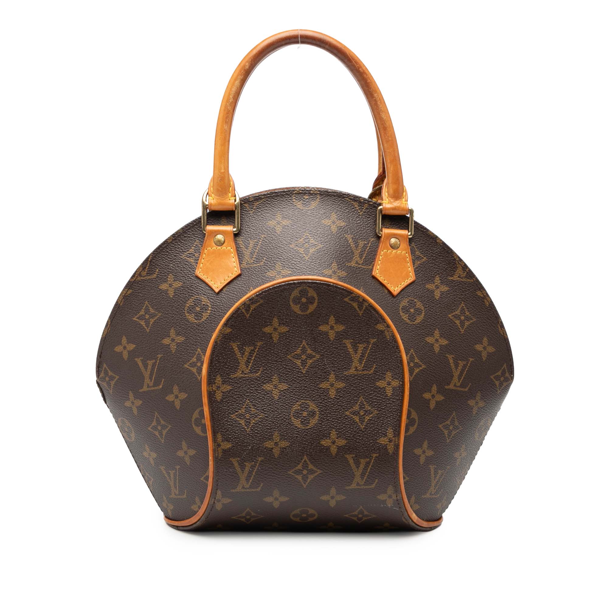 The Ellipse PM features a structured monogram canvas body with vachetta leather trim, rolled vachetta leather handles, a top zip closure, and an interior slip pocket. Retail Price: 1120.00