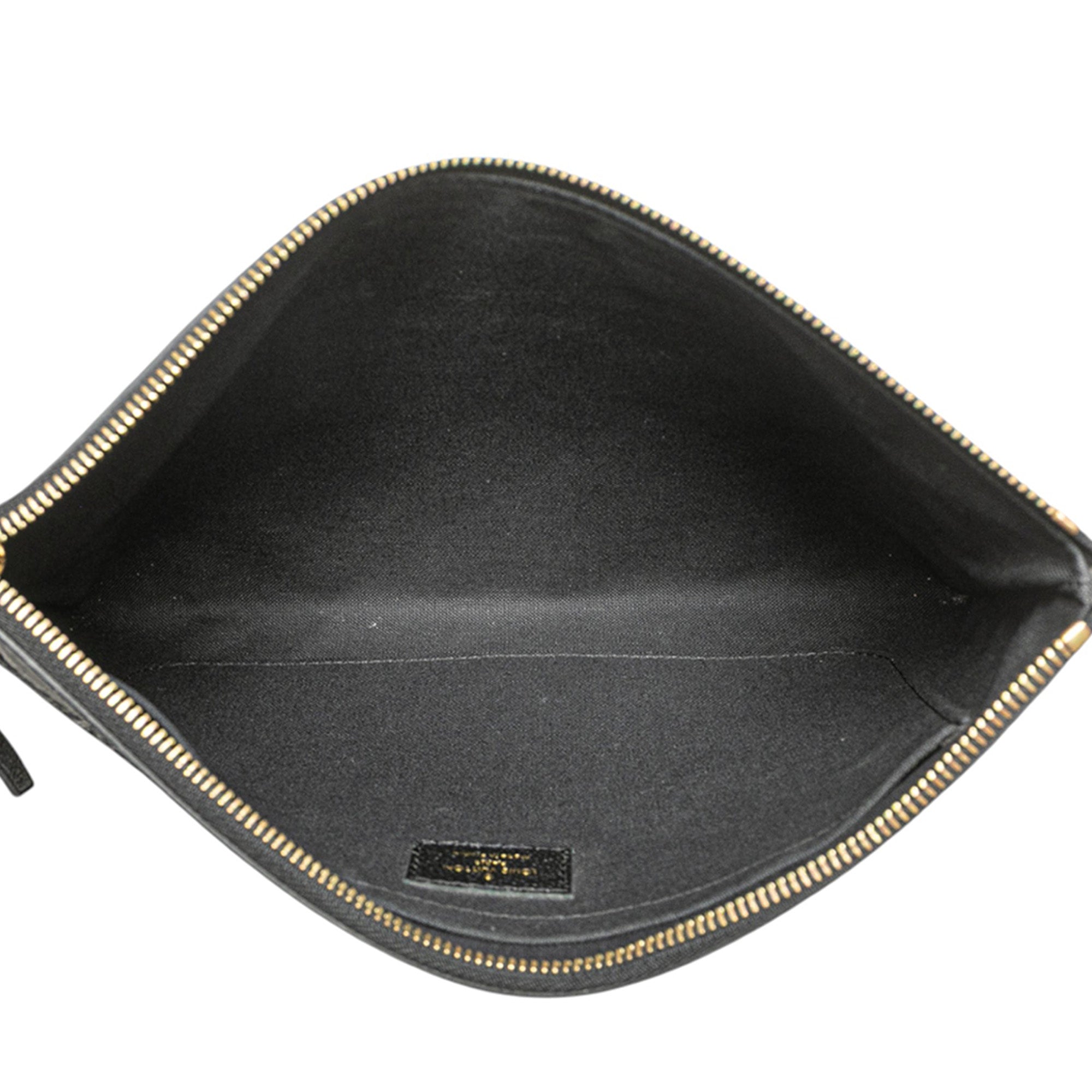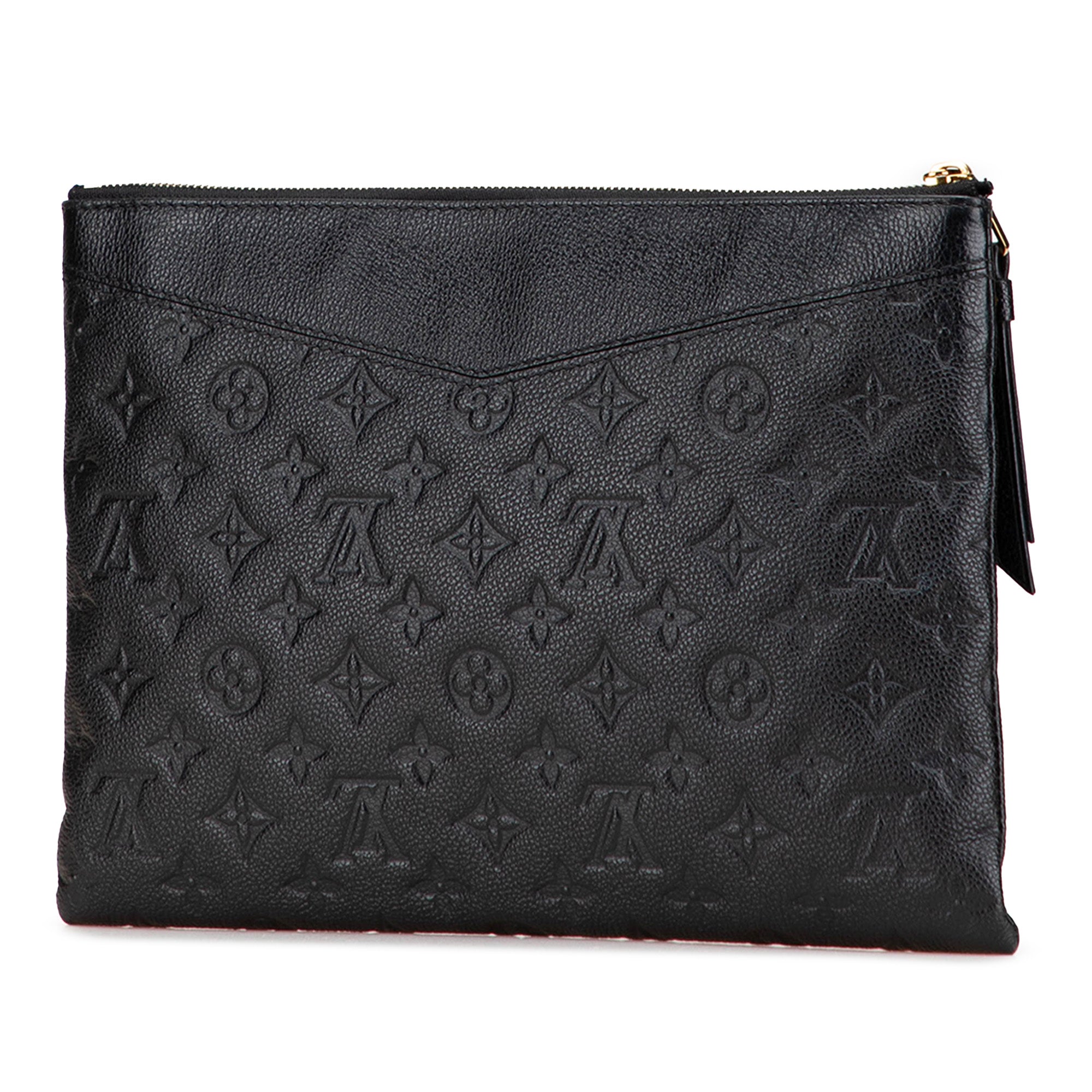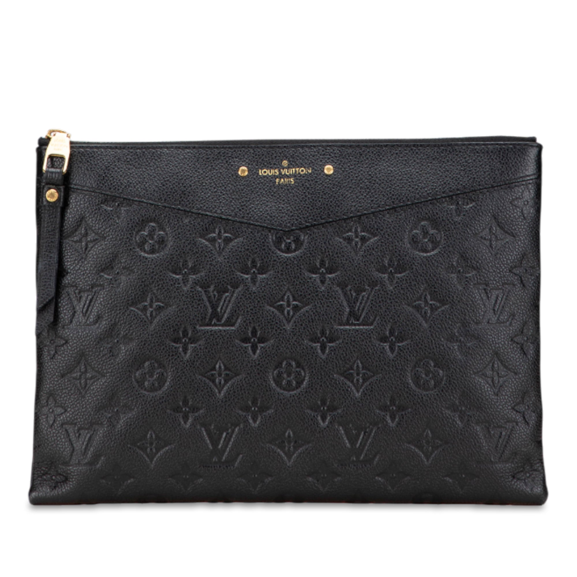 The Daily Pouch features a monogram empreinte leather body, a top zip closure, and an interior slip pocket. Retail Price: 888.00