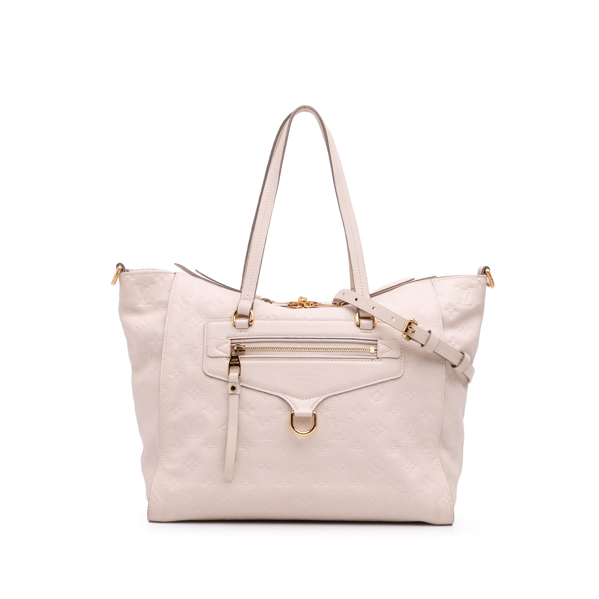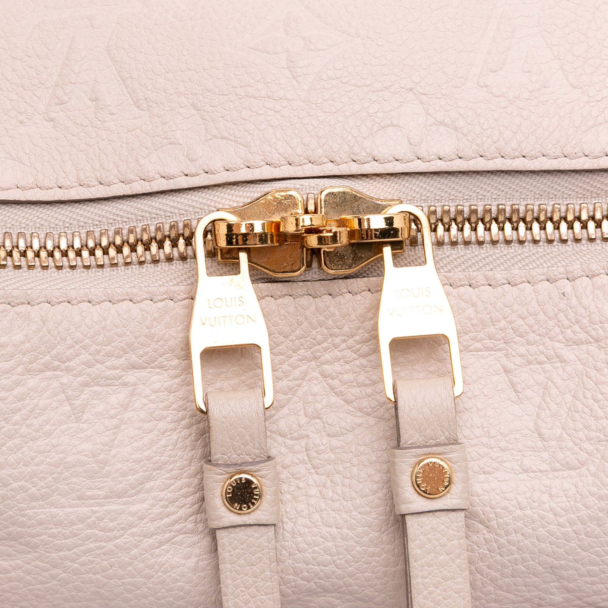 The Lumineuse PM features a monogram empreinte leather, flat leather handles, a detachable flat leather strap, top zip closure, an exterior front zip pocket, and an interior zip pocket. Retail Price: 2585.00