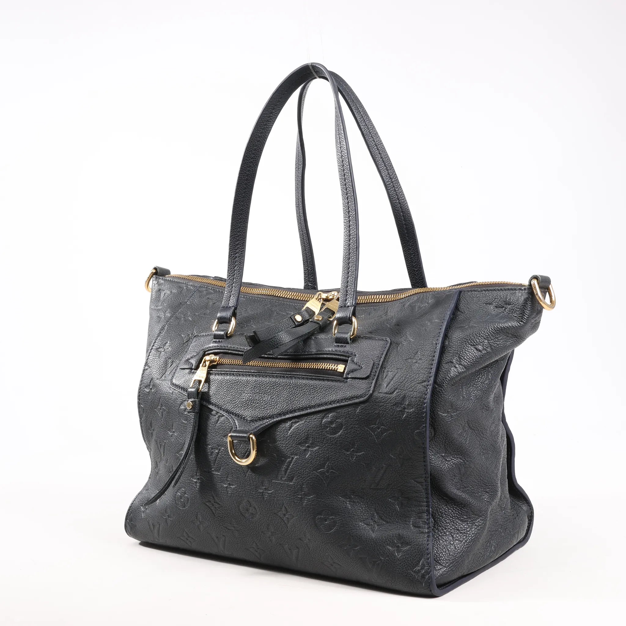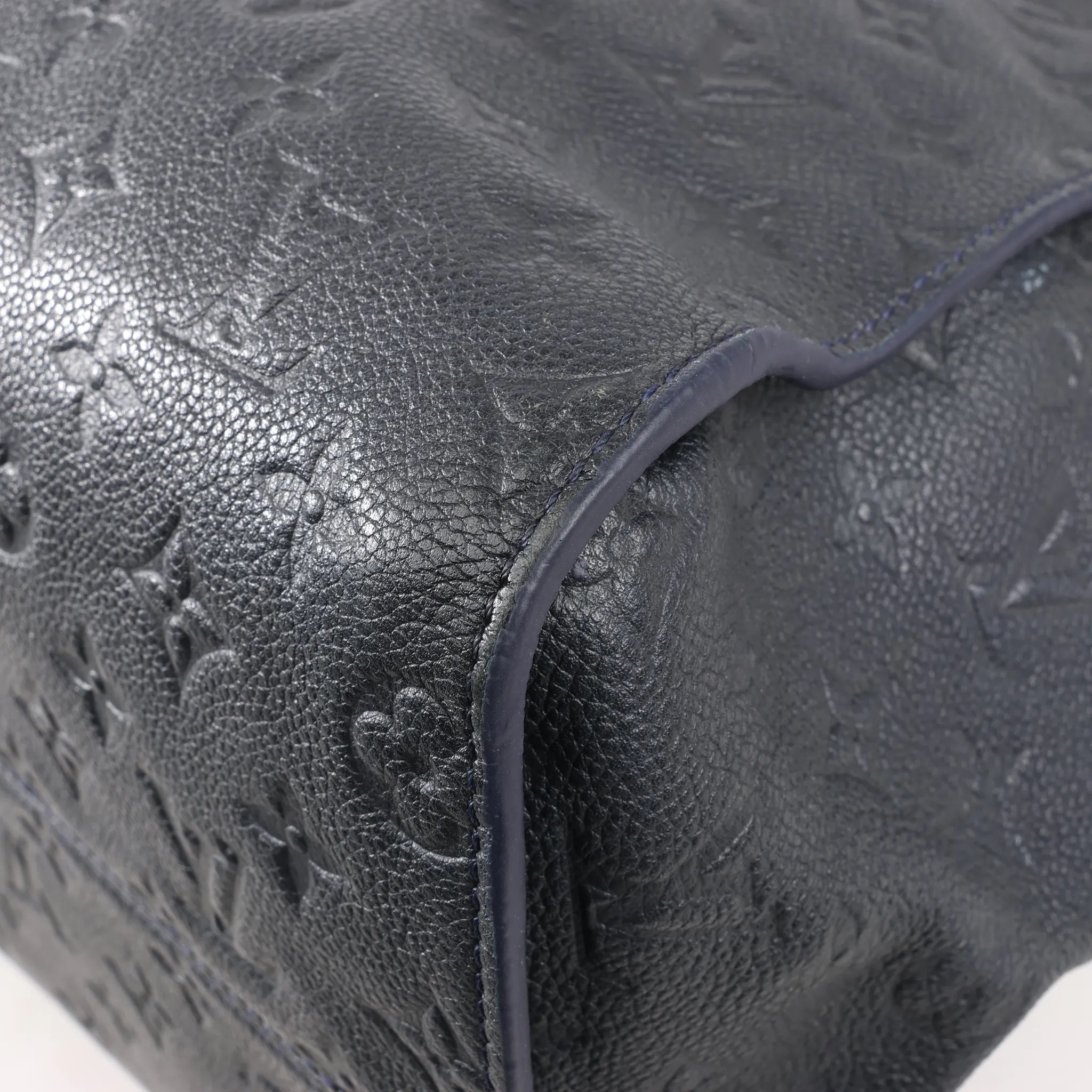 Crafted from luxurious navy blue Monogram Empreinte leather, the Louis Vuitton Lumineuse PM M93410 offers a refined, structured silhouette with gold-tone hardware and versatile shoulder carry functionality.