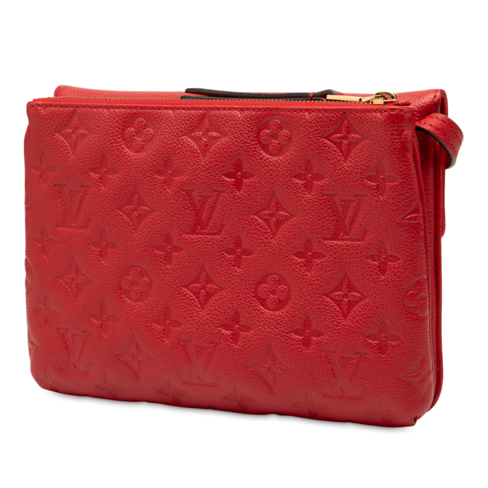 The Twice features a monogram empreinte leather body, an adjustable flat leather strap, a front flap with snap closure, and an exterior back zip compartment. Retail Price: 1440.00