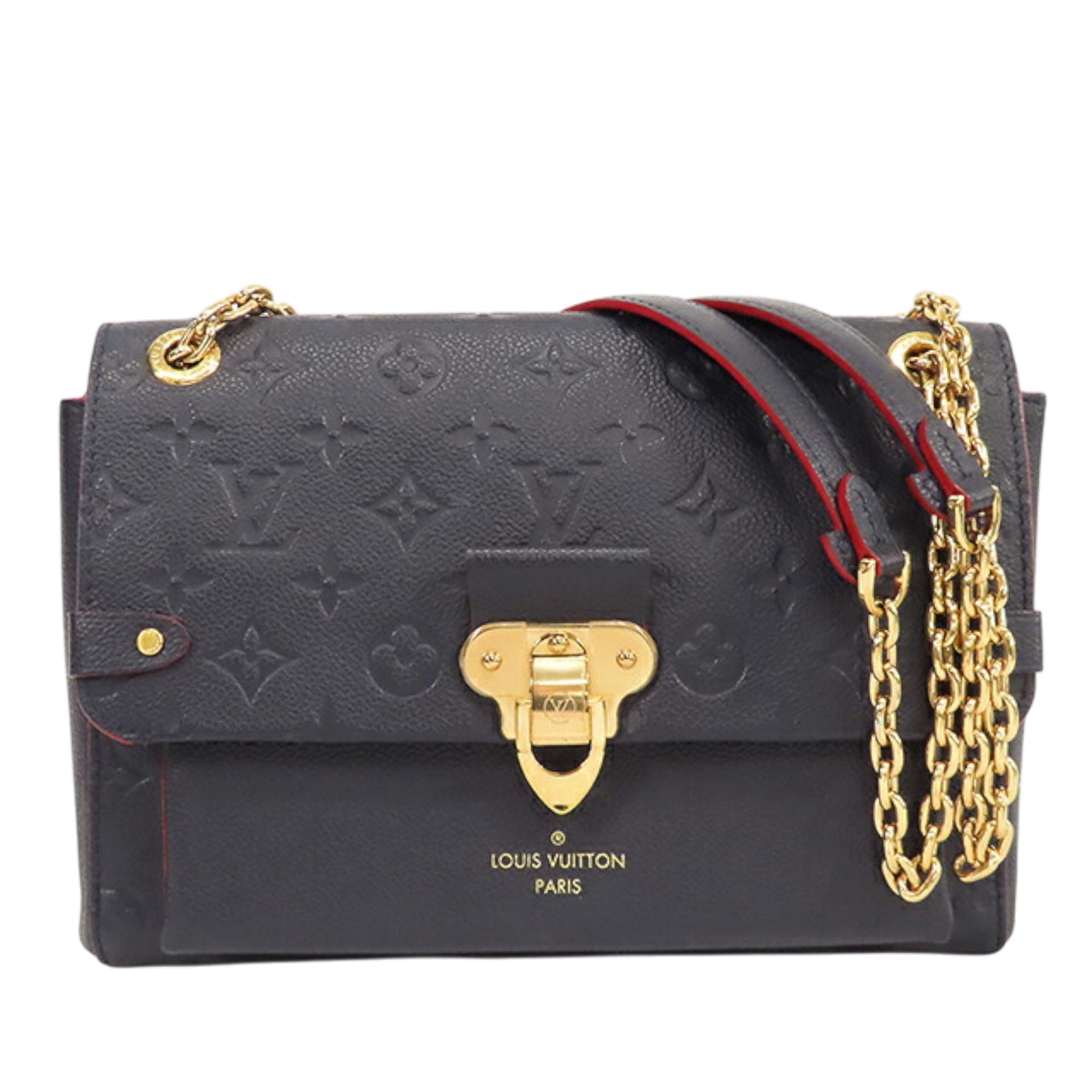 The Vavin PM features a monogram empreinte leather body, chain link shoulder straps with leather guard, a front flap with flip-lock closure, an exterior front slip pocket under the flap, and an interior zip pocket. Inclusion: Dust bag. Retail Price: 2690.00