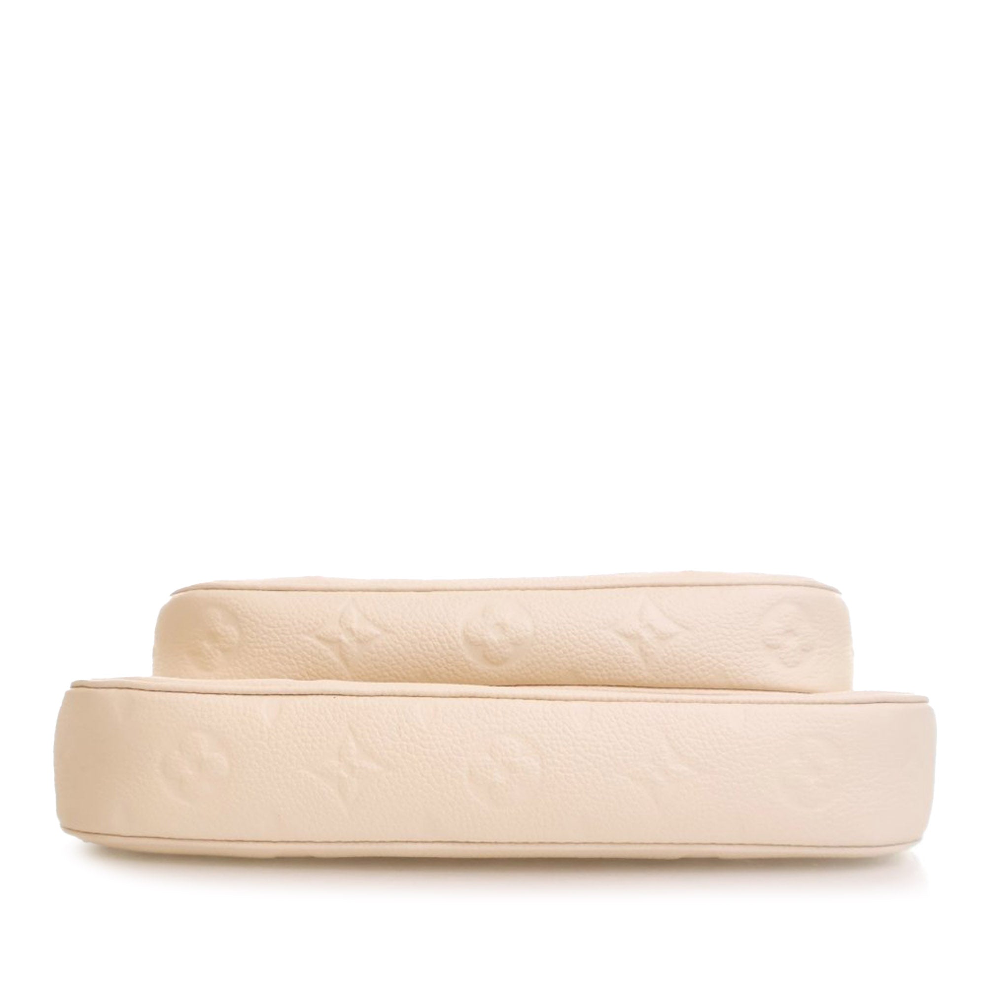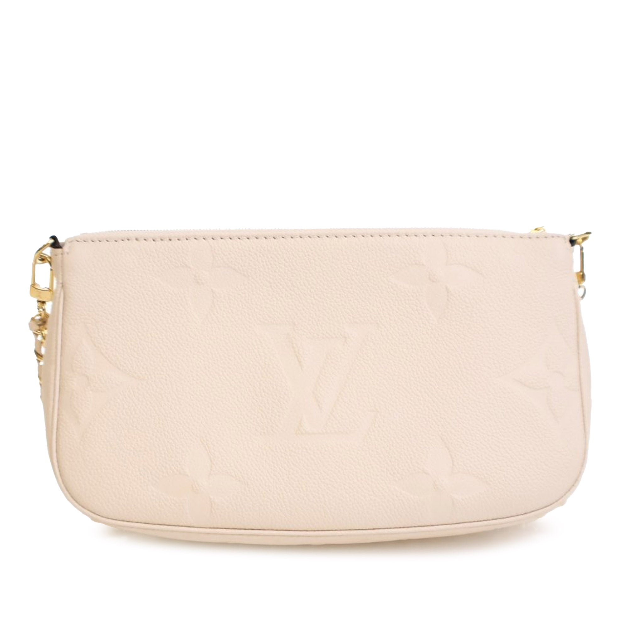 The Multi-Pochette Accessoires features a monogram empreinte body, a detachable leather-woven chain link strap, an adjustable and detachable flat leather shoulder strap, a top zip closure, an interior slip pocket, and a removable mini pochette. Inclusion: Dust bag, box. Retail Price: 2800.00