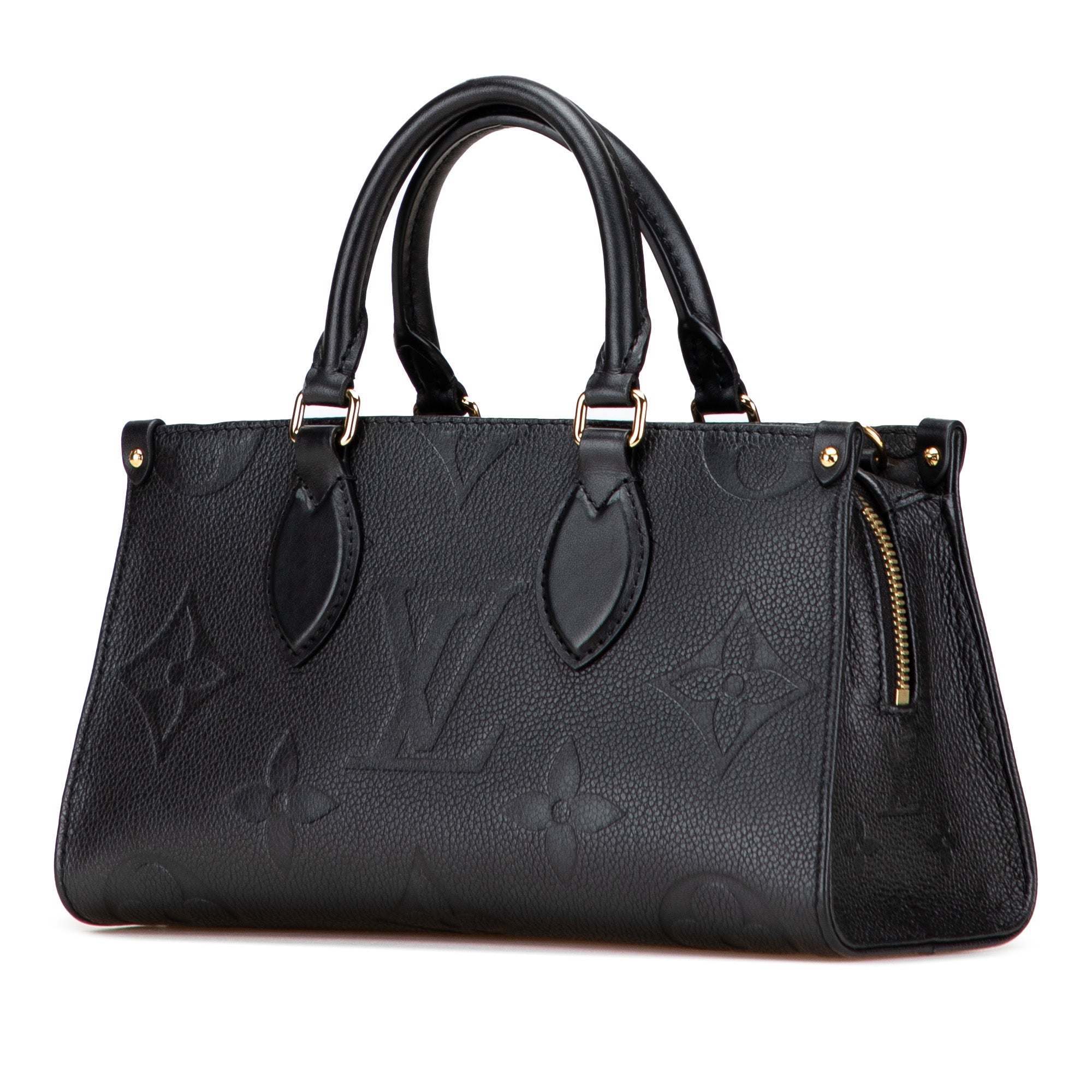 The OnTheGo East West features a monogram giant empreinte body, rolled leather handles, detachable flat leather and leather woven chain shoulder straps, a top zip closure, and an interior slip pocket. Retail Price: 3100.00