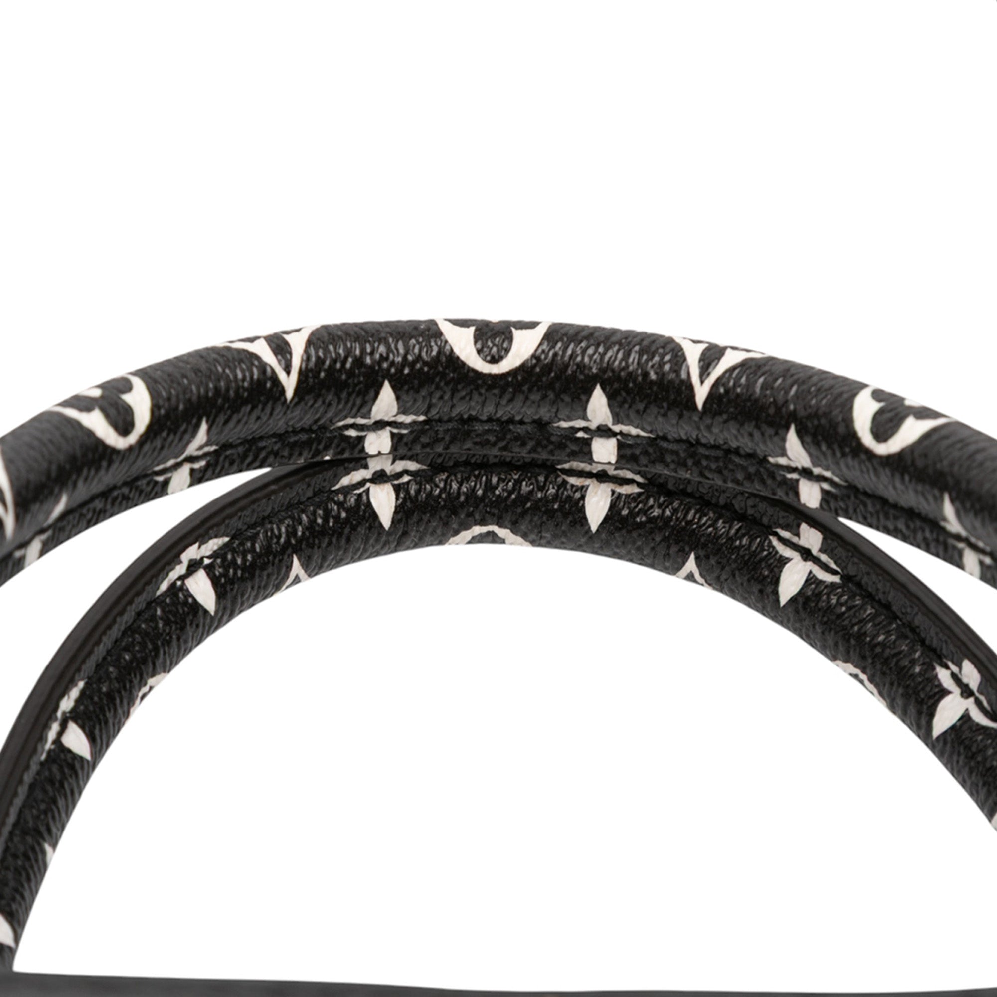 The Onthego GM features a monogram giant canvas body, rolled leather handles, flat leather shoulder straps, an open top with lobster clasp closure, and interior zip and slip pockets. Inclusion: Dust bag. Retail Price: 2480.00