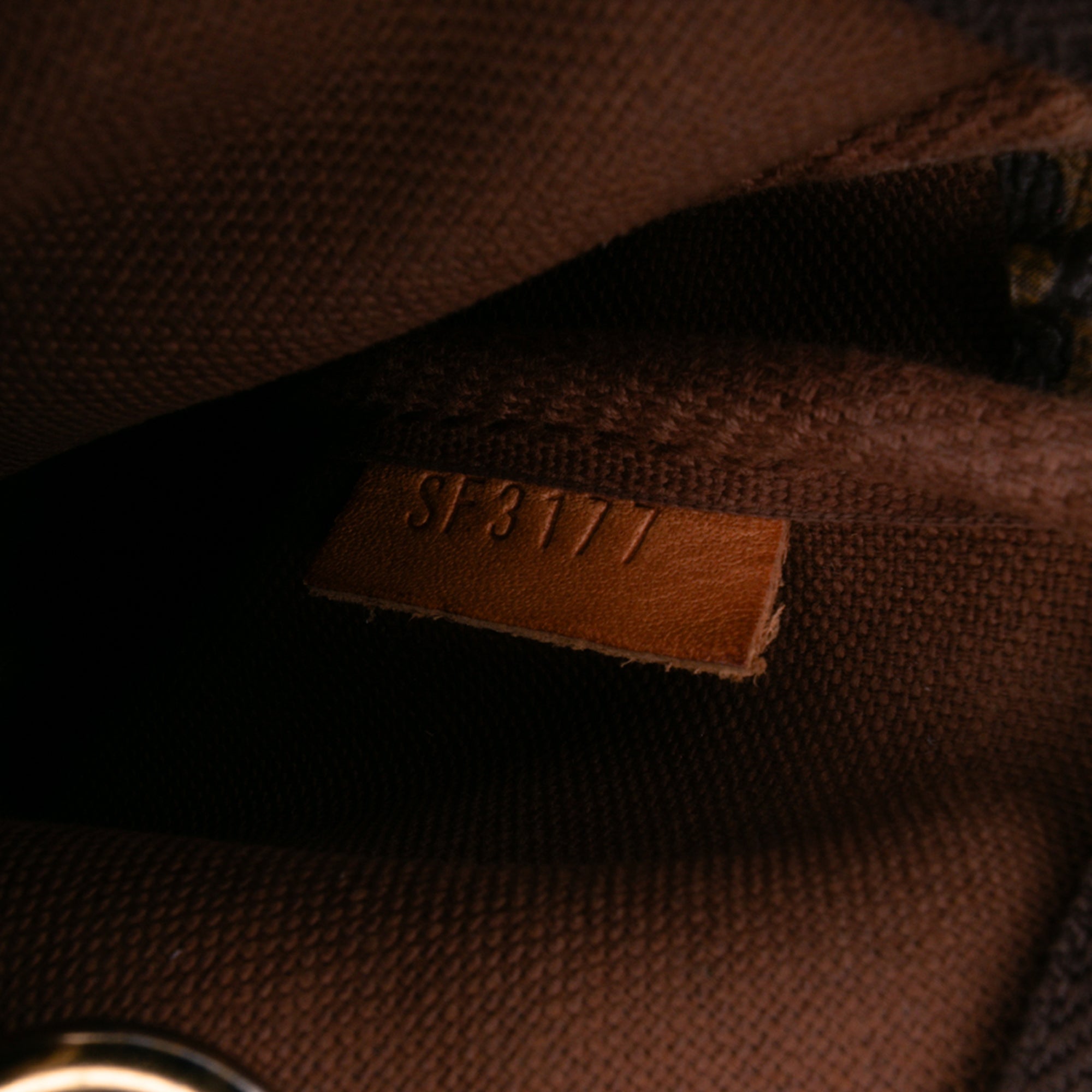 The Mini Pochette Accessoires features a printed monogram canvas body, a chain link handle, and a top zip closure. Retail Price: 630.00