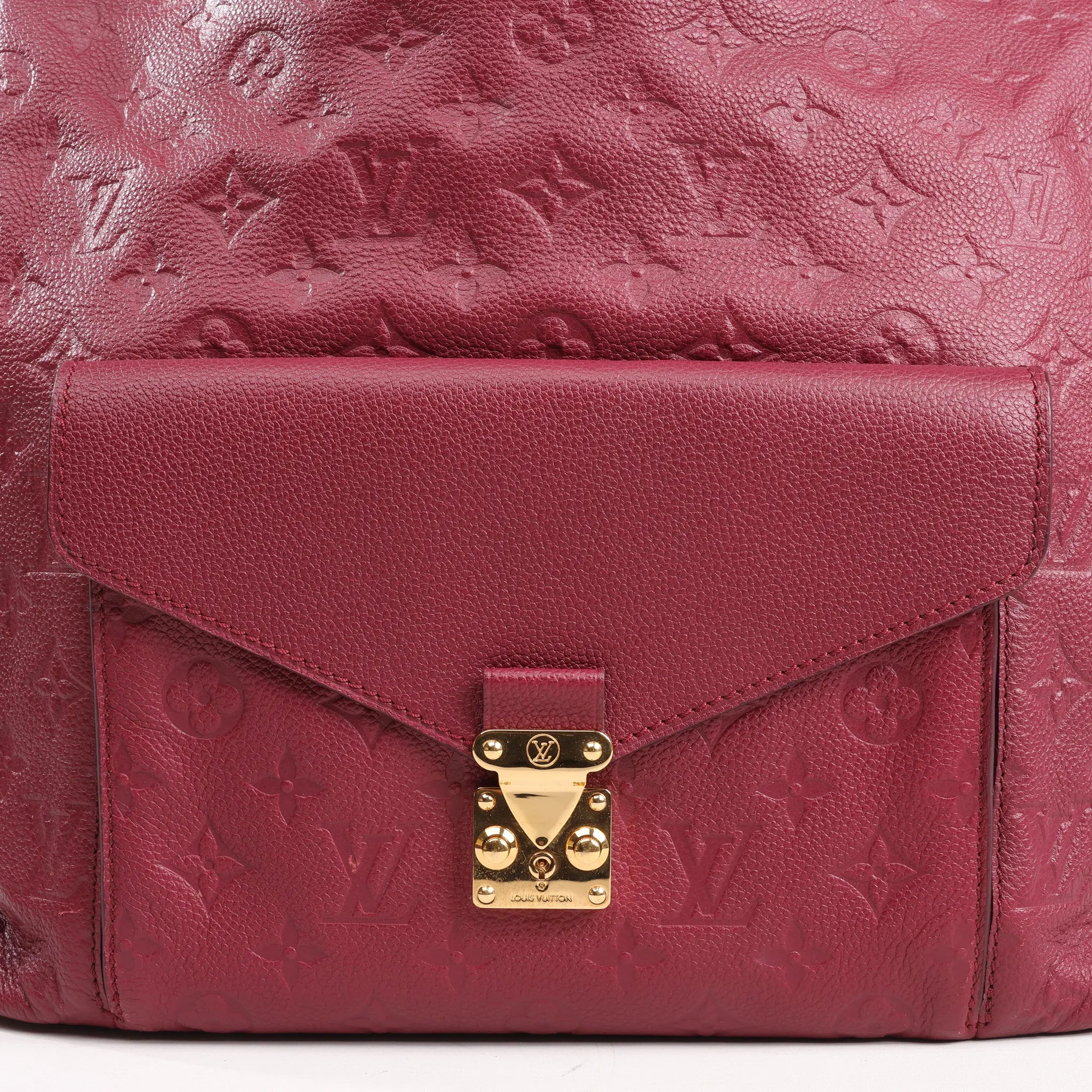 The Louis Vuitton Monogram Hobo Metis M40813 in rich burgundy Empreinte leather combines iconic embossed texture with a spacious 2-way design—perfect for elegant everyday wear.