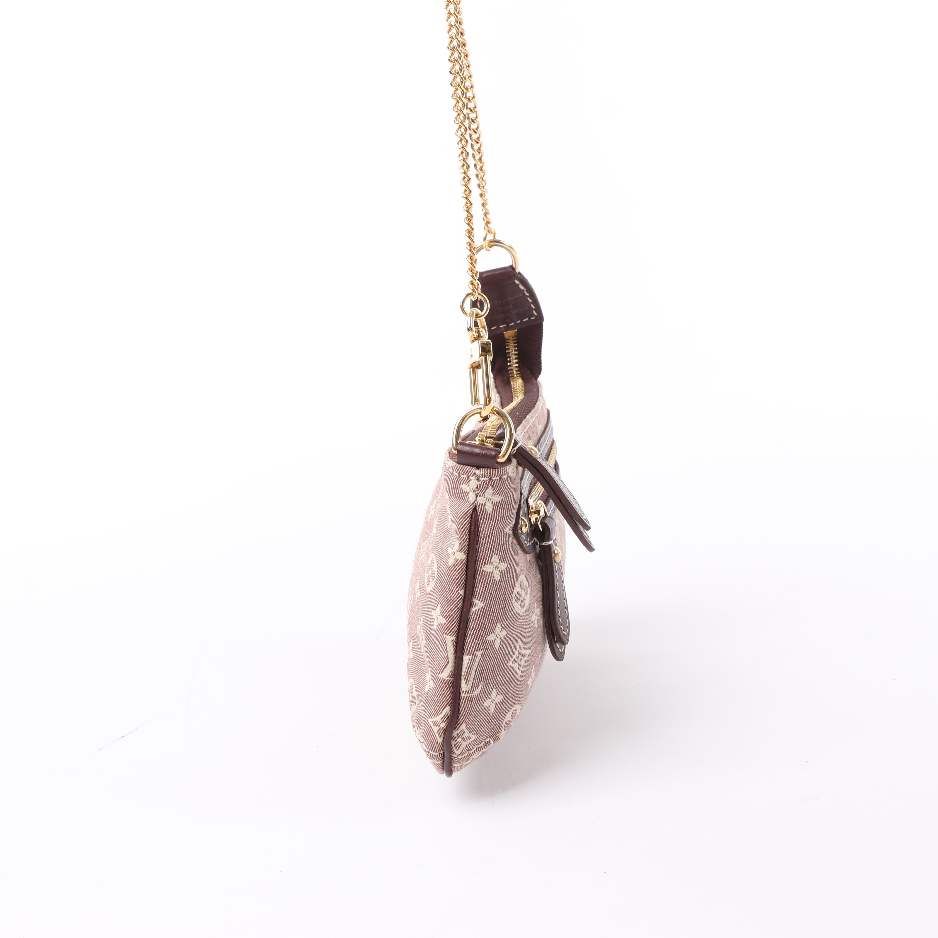 Brand: Louis VuittonModel: Pochette AccessoireSize: MiniWidth: 17 cmHeight: 11 cmExterior Condition: ExcellentInterior Condition: ExcellentCondition Details: The outside canvas is clean and beautiful, in excellent condition. The leather trim is clean and in great condition. The hardware is bright and crisp with hairline scratches. The interior is in good condition, Date code: DU1180Colour: Beige (Dusty Rose)Interior Colour: BurgundyHardware Colour: GoldMaterial: Leather, CanvasComes With: Box, dustbag, chain strap, paper