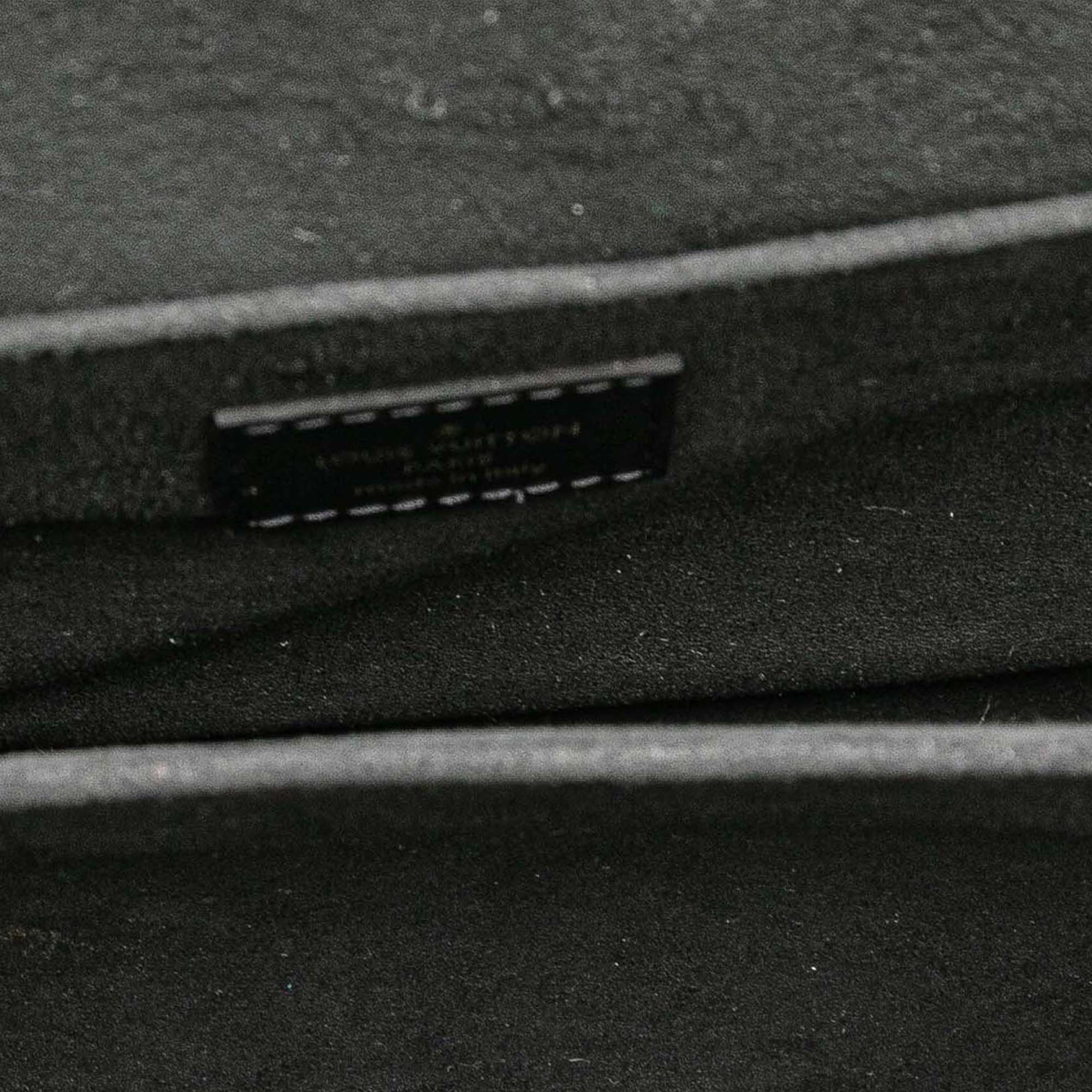 The Pochette Metis features a canvas body, a flat leather top handle, a detachable flat leather shoulder strap, a front flap with an S-lock closure, an exterior back zip pocket, and an interior slip pocket. Retail Price: 2420.00