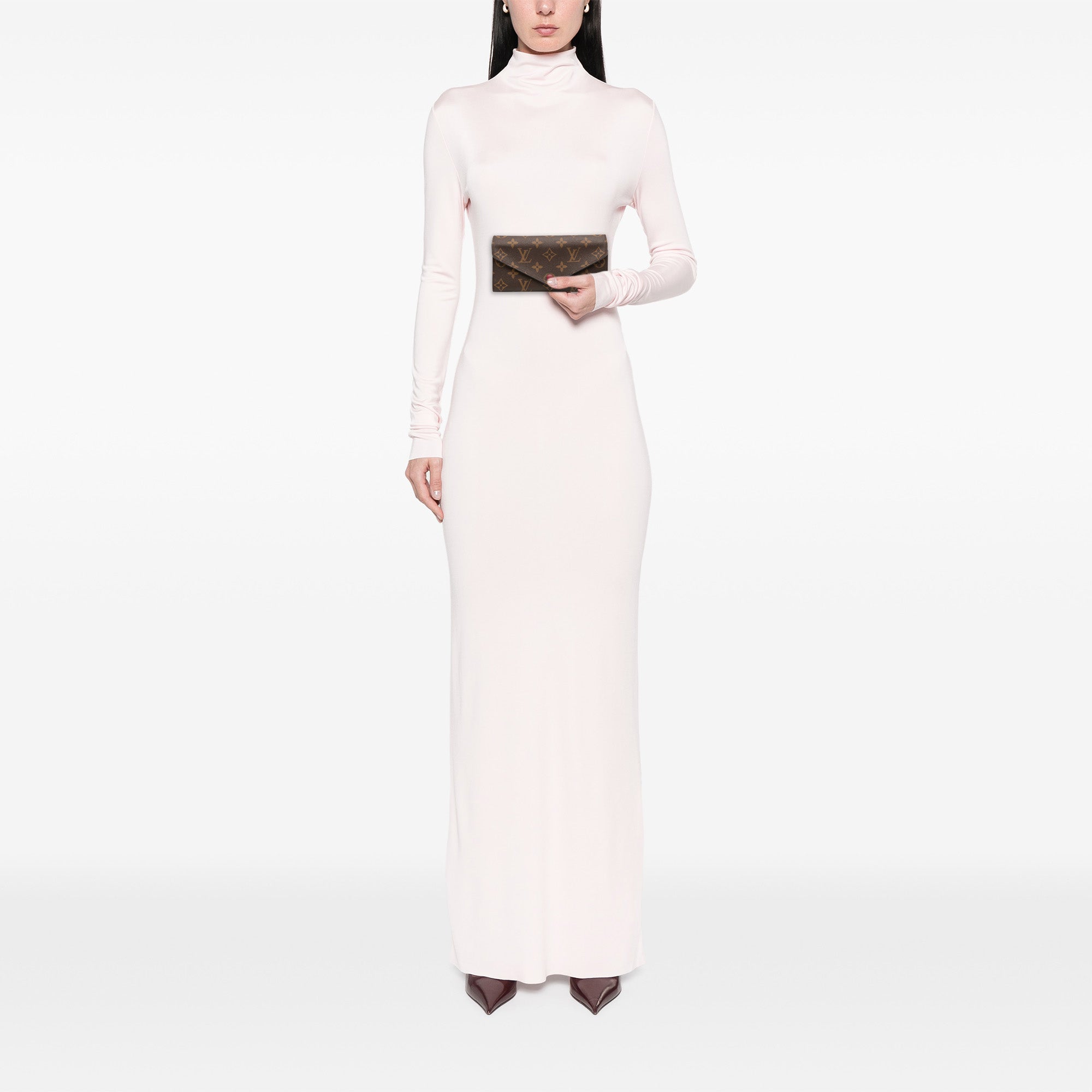 The Josephine long wallet features a monogram canvas body, a front flap and snap button closure, interior slip pockets and a zip pouch inclusion. Retail Price: 1150.00