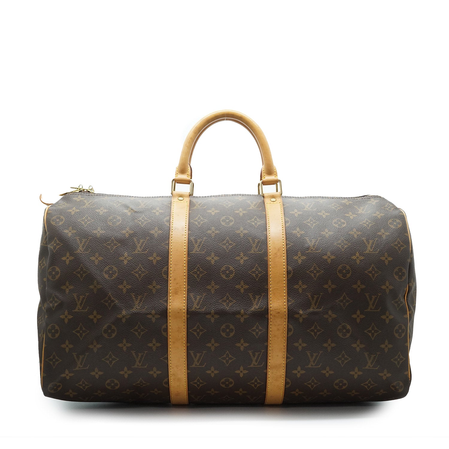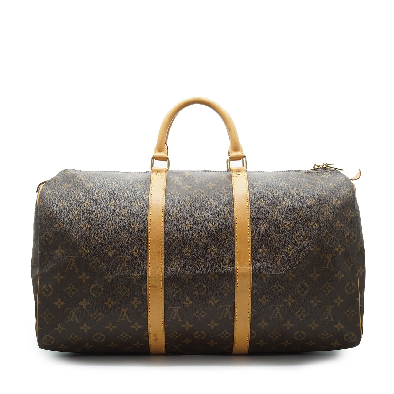 Monogram Keepall 50 Brown Canvas, LeatherDepth: 21.5cmHeight: 28cmWidth: 50cmHand Drop: 13.5cmOutside Rank: BInside Rank: BStain: Water stains on the leather parts overallScratch: Some scratches on the leather partsWorn: Some signs of wear on the leather partsOdor: No odor presentSerial code: SP0918SKU: 7030190