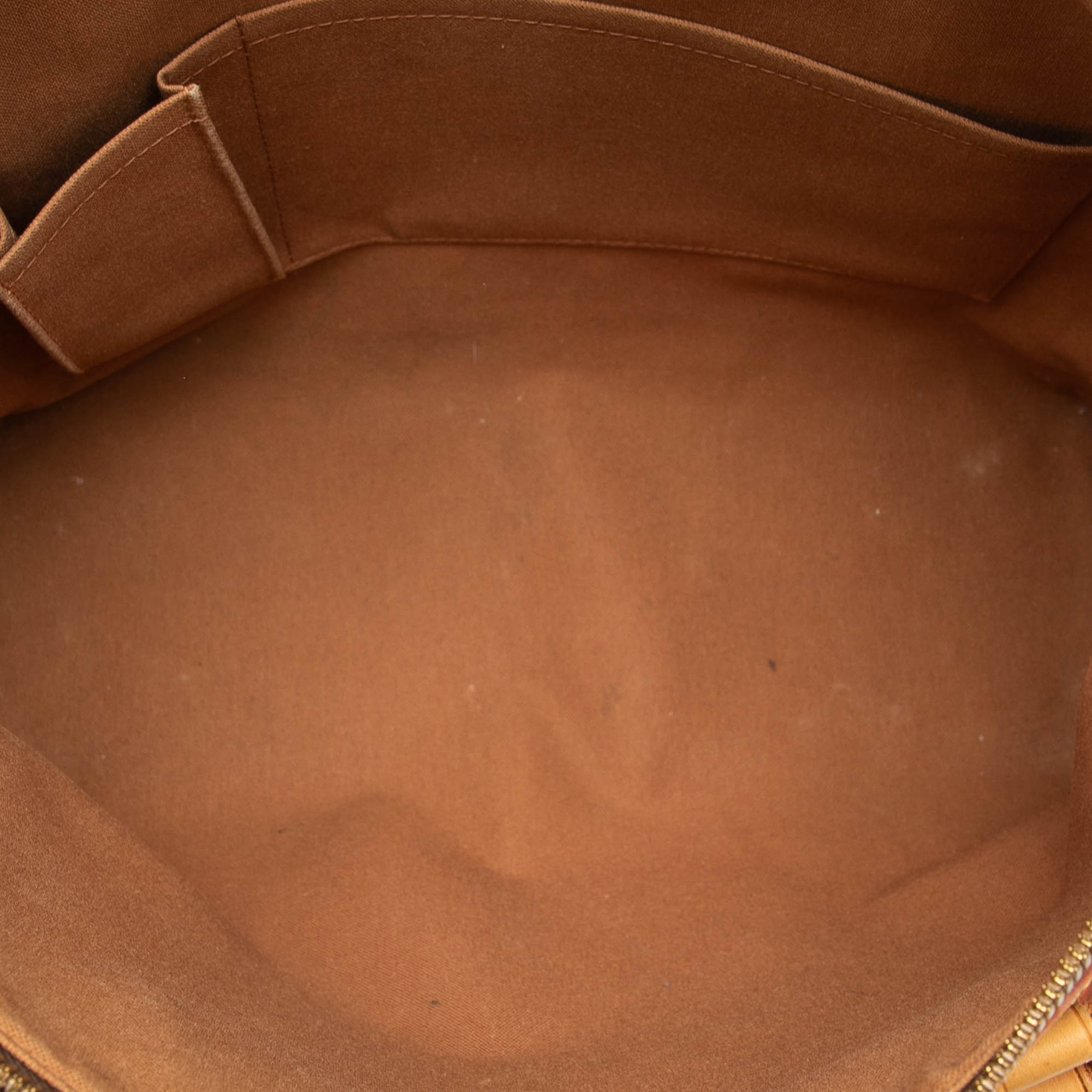 The Lockit Horizontal features a monogram canvas body with vachetta leather trim, rolled vachetta leather handles, a top zip closure, and interior slip and open pockets. Retail Price: 1436.00