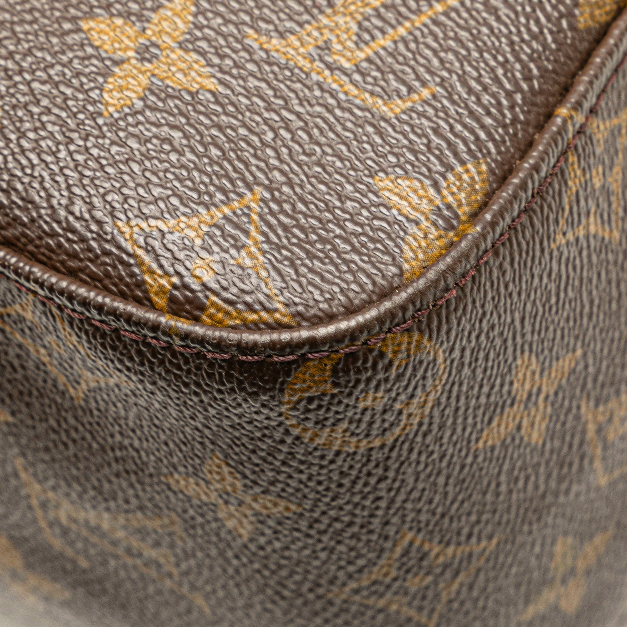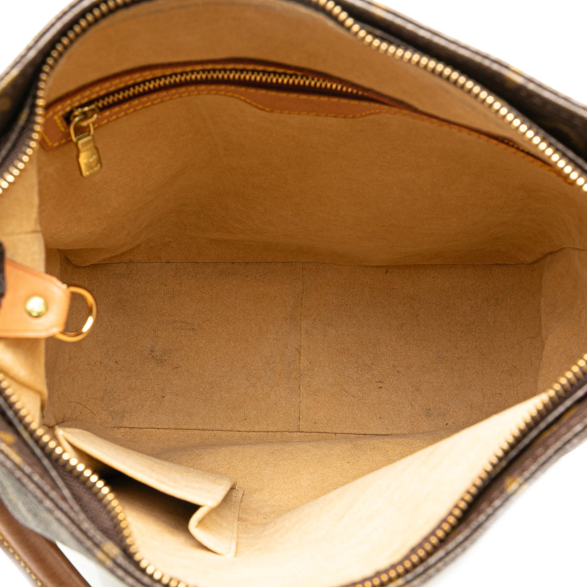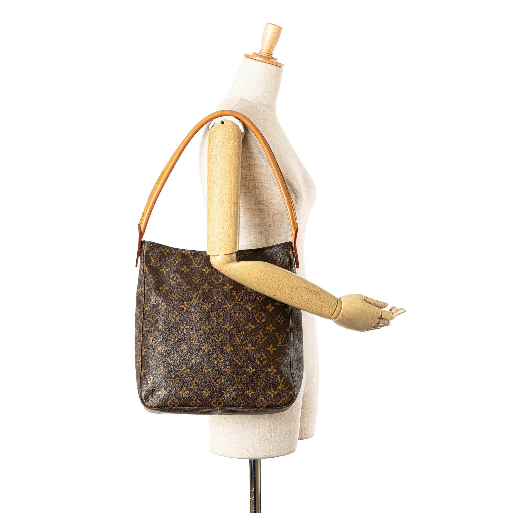 The Looping GM features a monogram canvas body, a rolled vachetta leather shoulder strap, a top zip closure, and interior zip and slip pockets. Retail Price: 1273.00