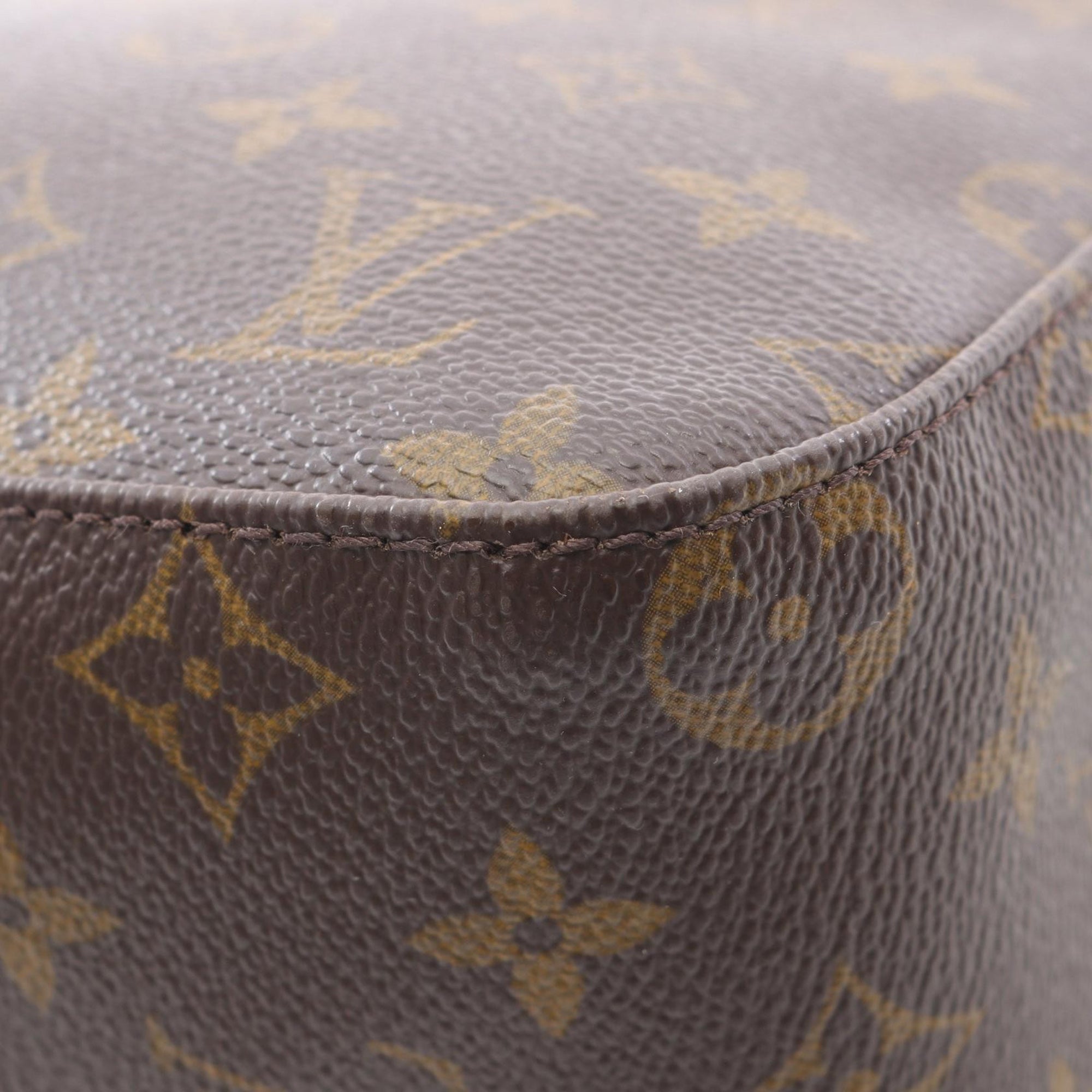 The Looping MM features a monogram canvas body, a rolled vachetta leather shoulder strap, a top zip closure, and interior zip and slip pockets. Retail Price: 1019.00