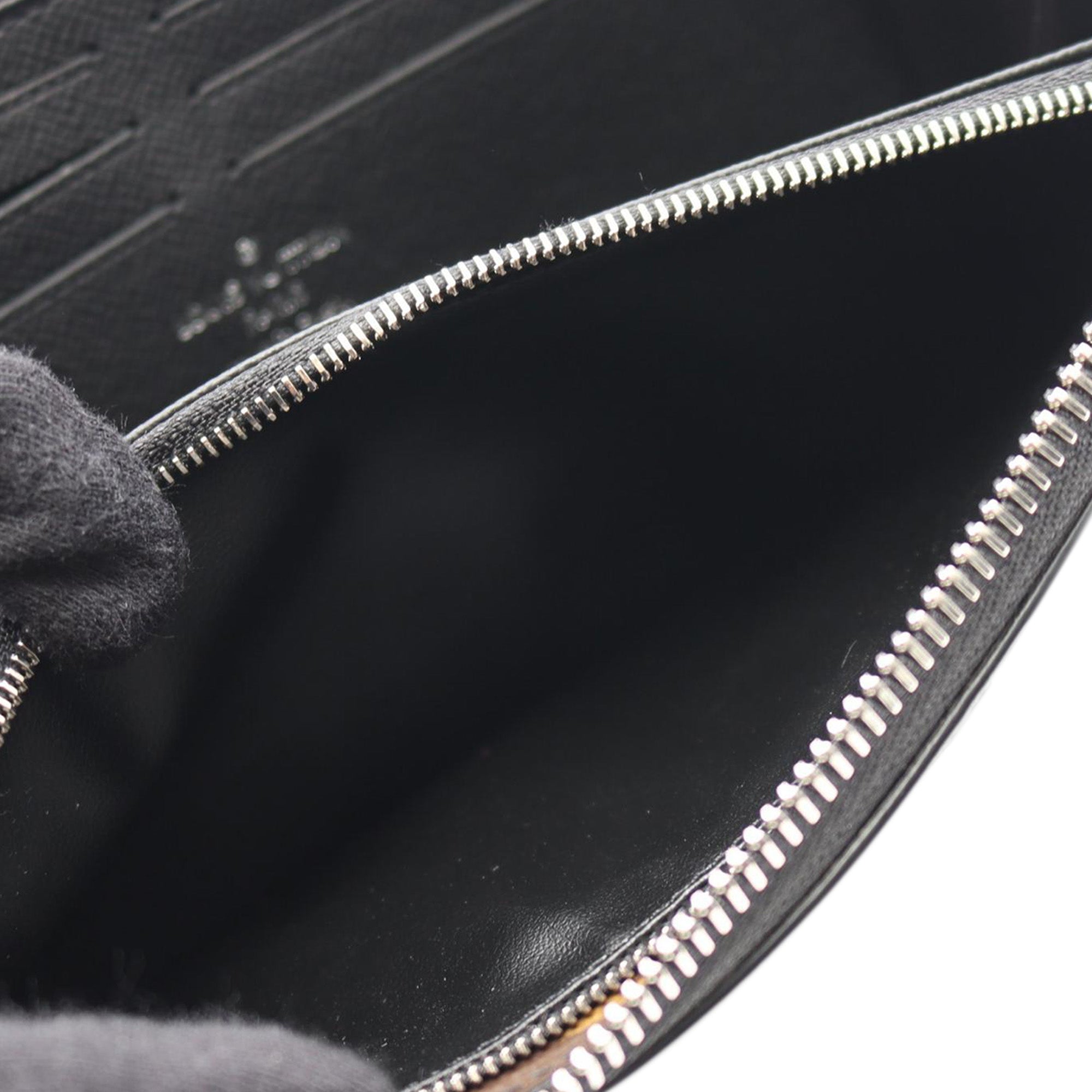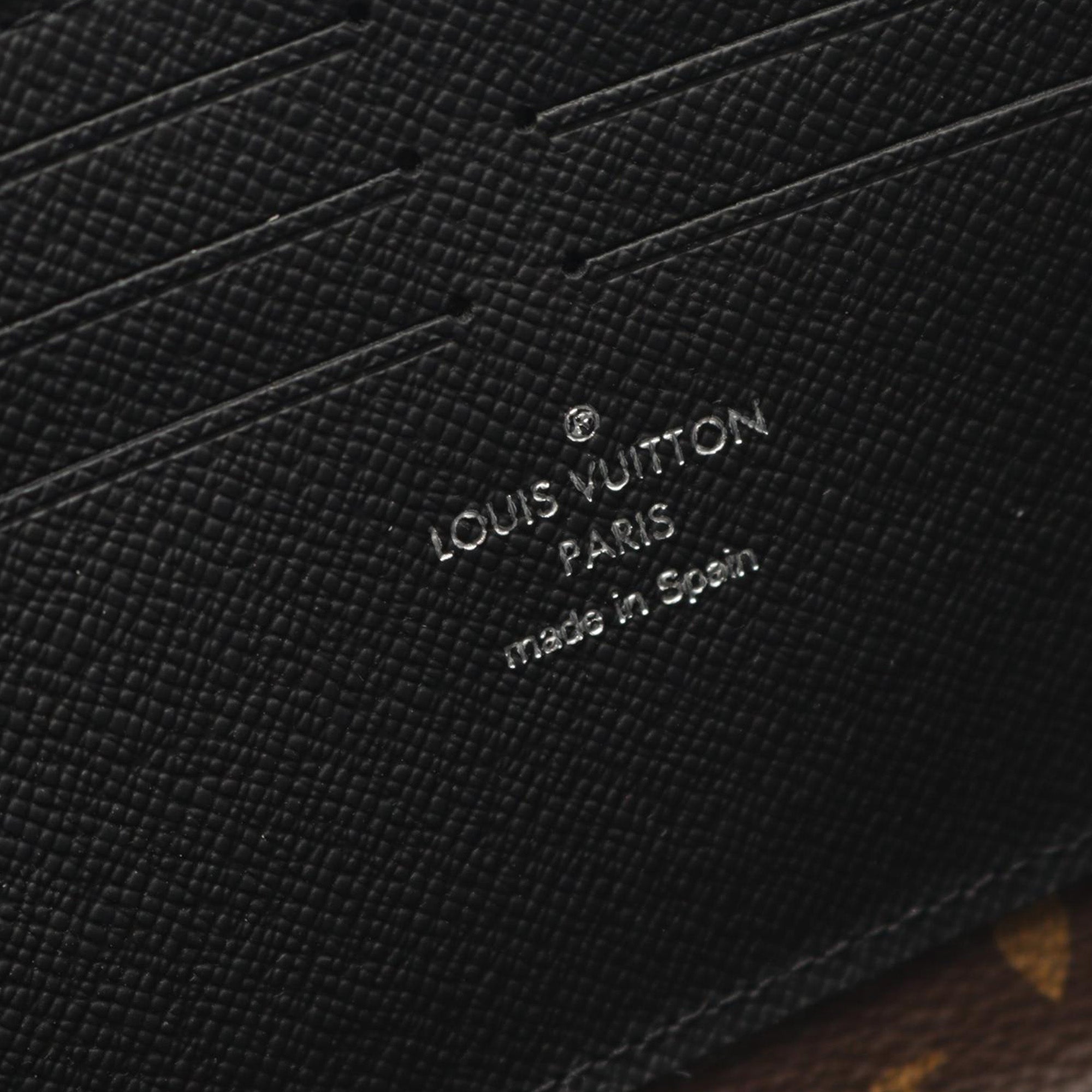 The Dragonne wallet features a monogram canvas body with leather trim, a detachable wrist strap, a top zip closure, and interior zip and slip pockets and compartments. Retail Price: 1320.00