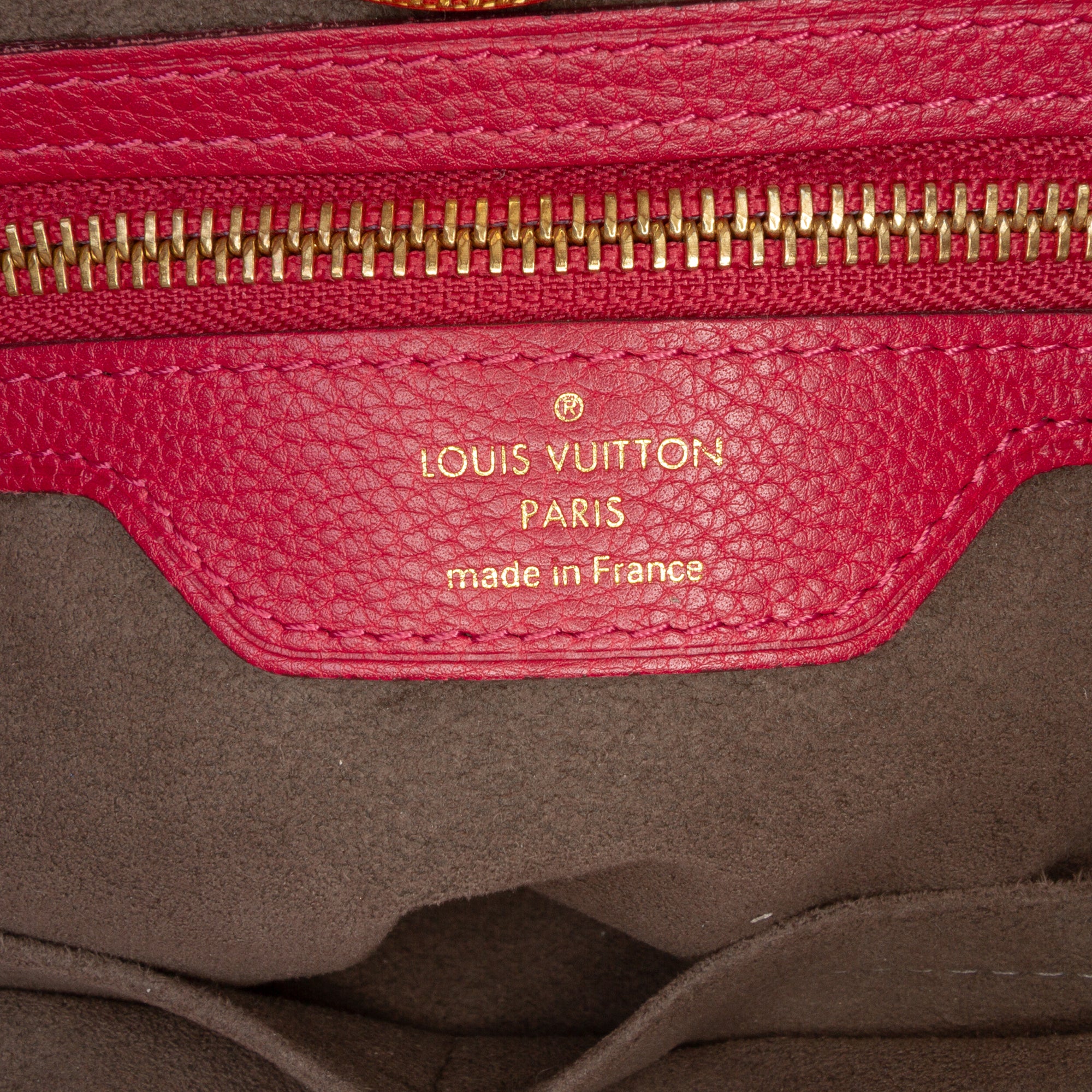 The Cirrus PM features a monogram mahina leather body, flat leather handles, a flat strap with a push lock closure, and interior zip and slip pockets. Inclusion: Dust bag. Retail Price: 3800.00