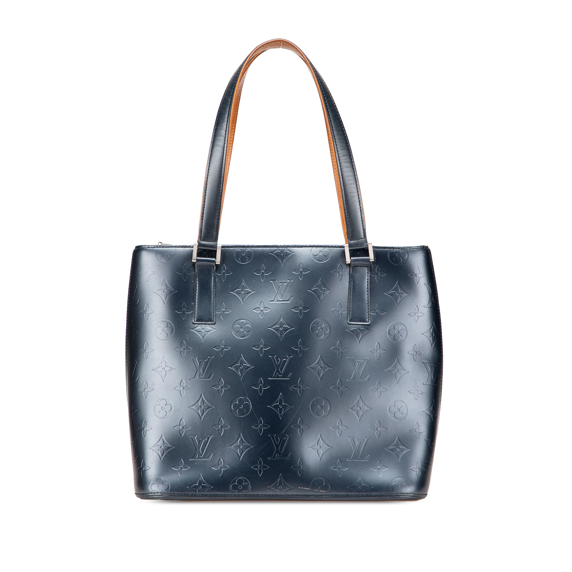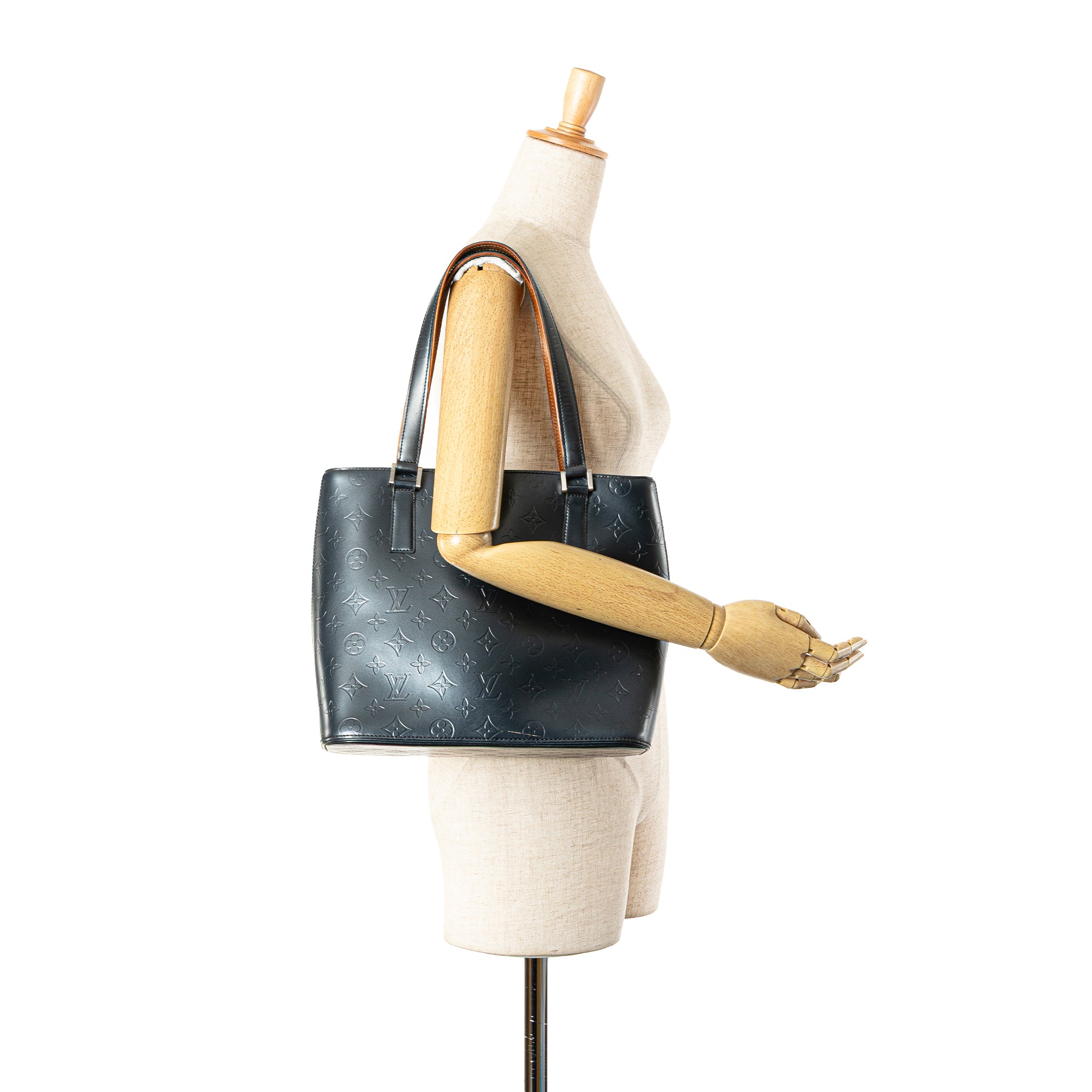 The Stockton features a monogram mat body, flat handles, a top zip closure, and an interior zip pocket. Retail Price: 1250.00