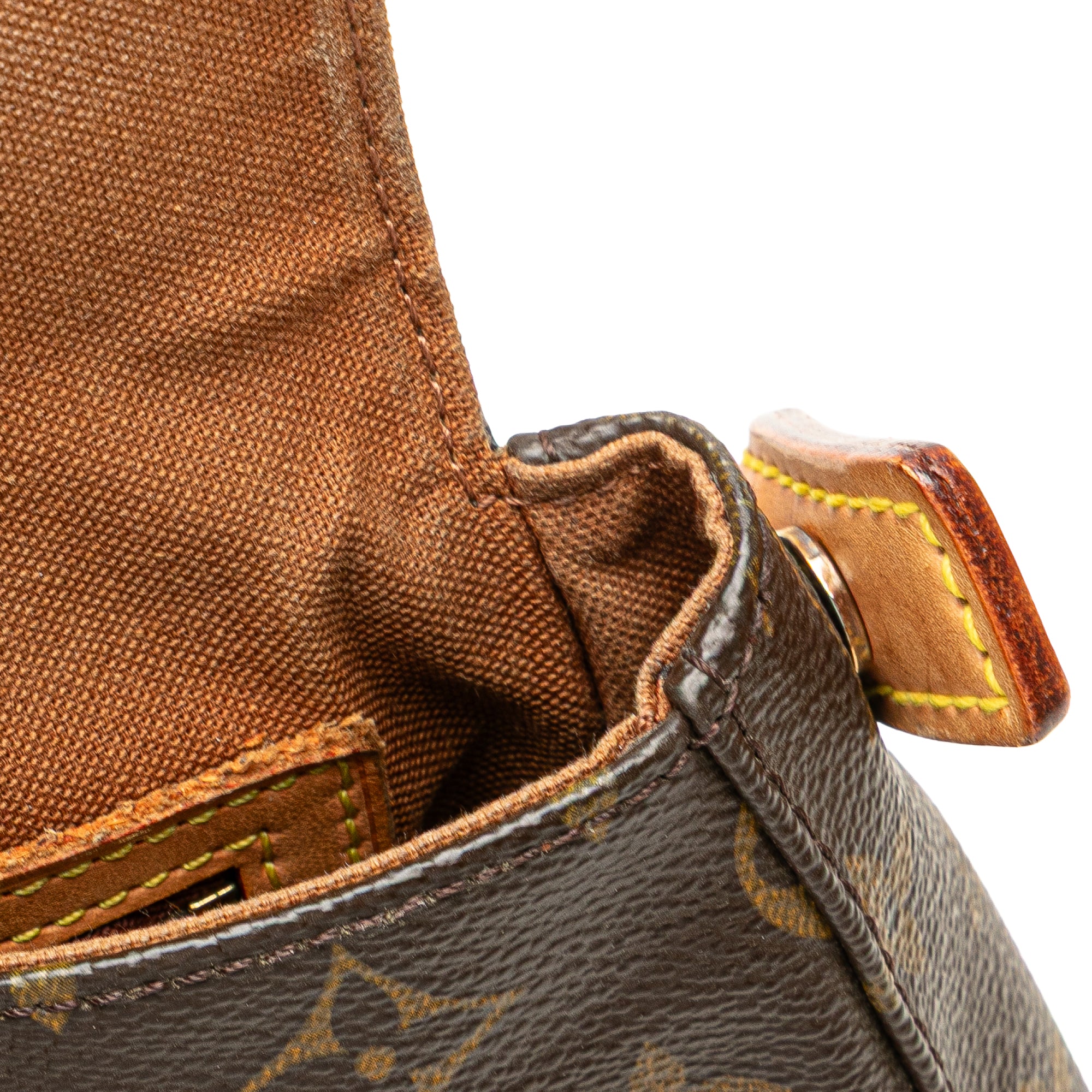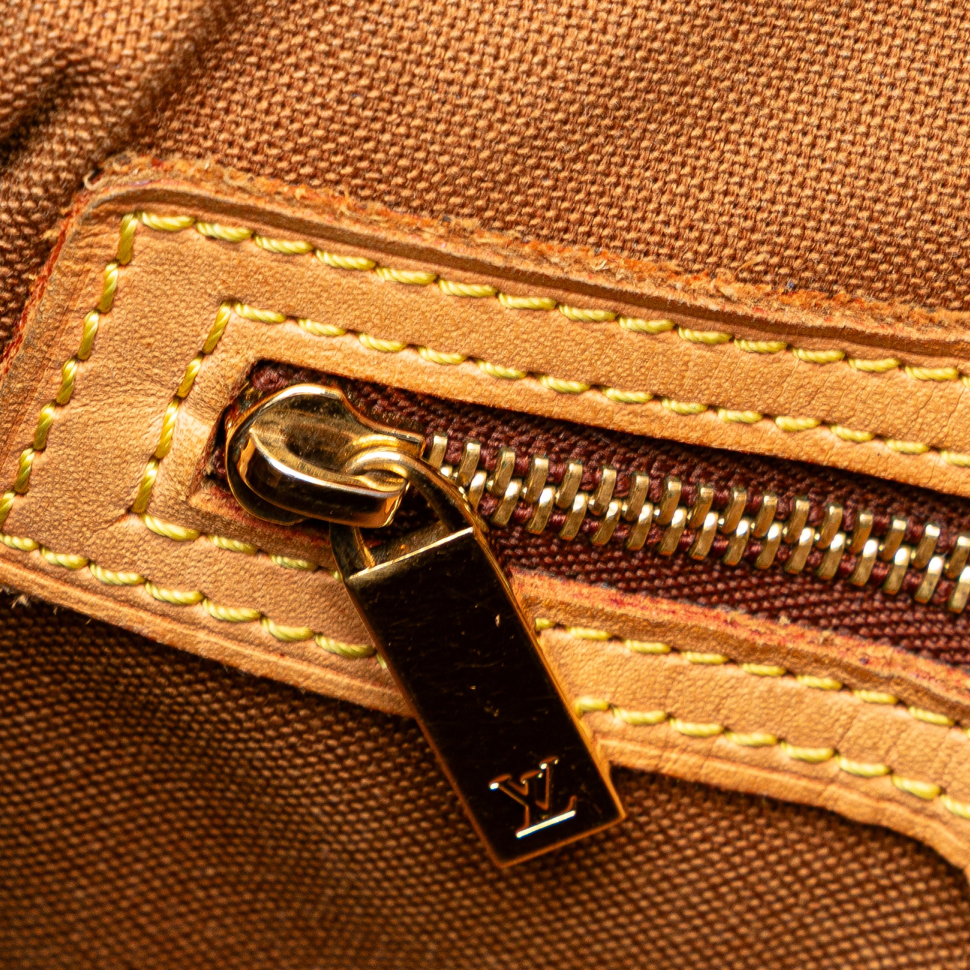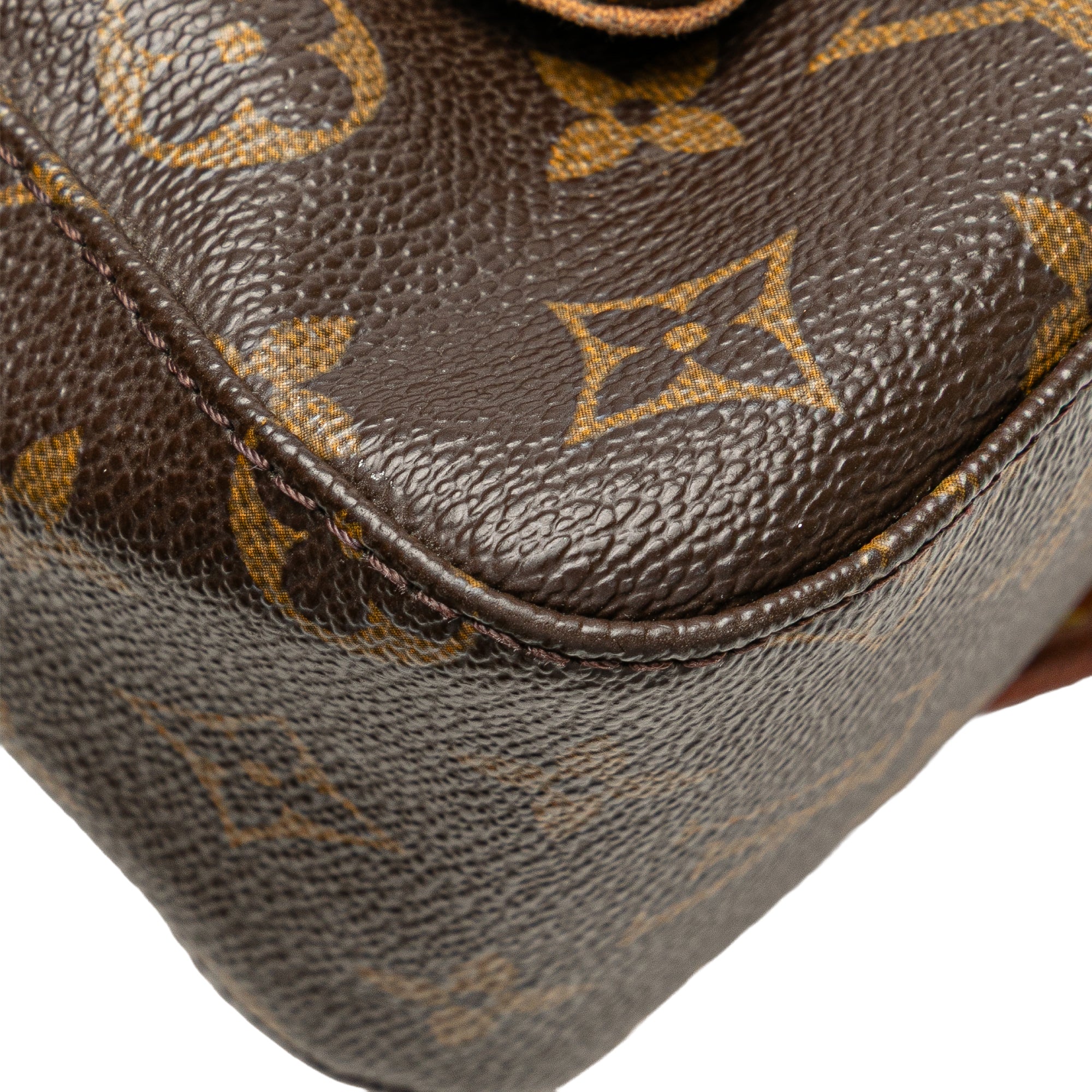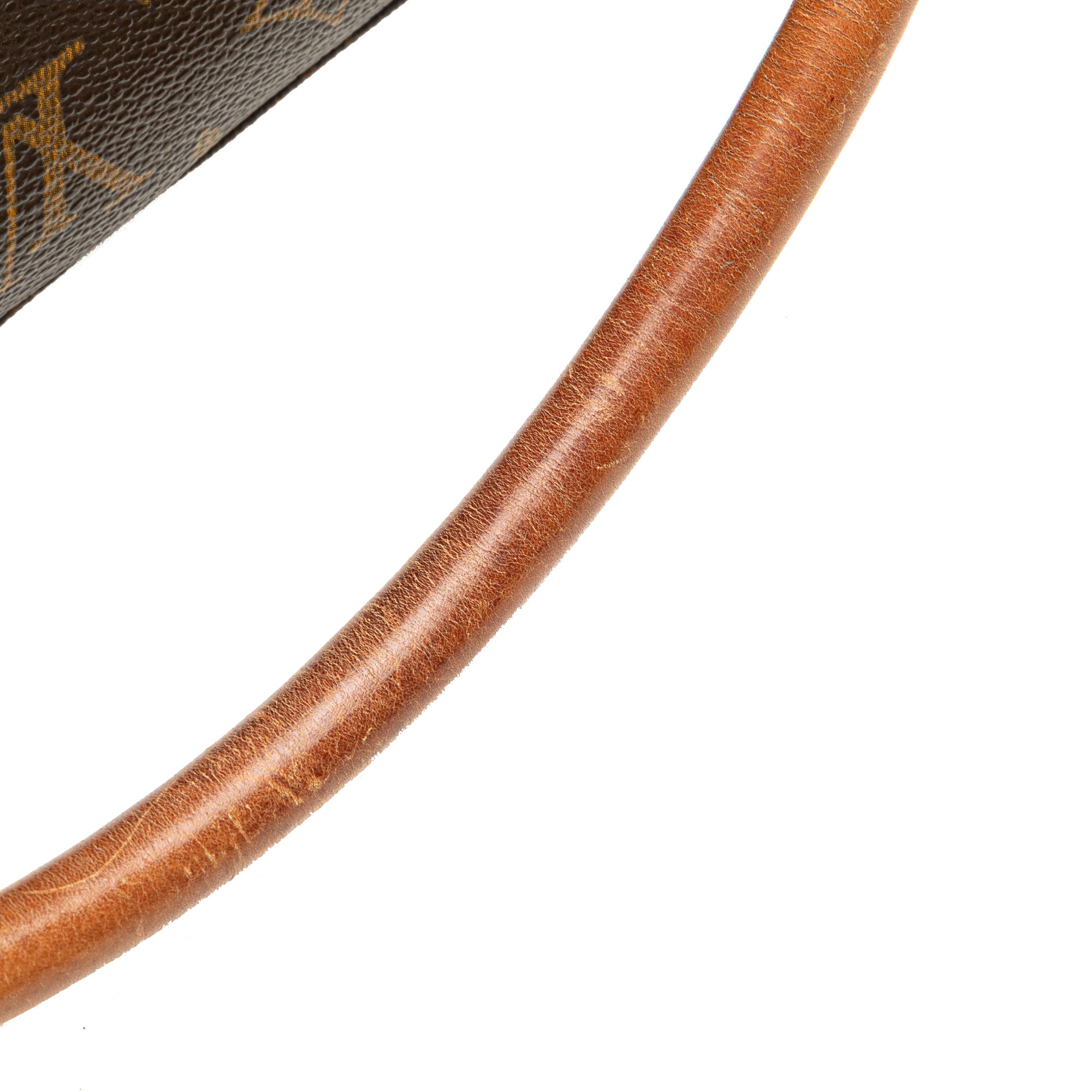 The Looping Mini features a monogram canvas body, a rolled vachetta leather handle, a flap with magnetic snap closure, and an interior zip pocket. Retail Price: 1008.00