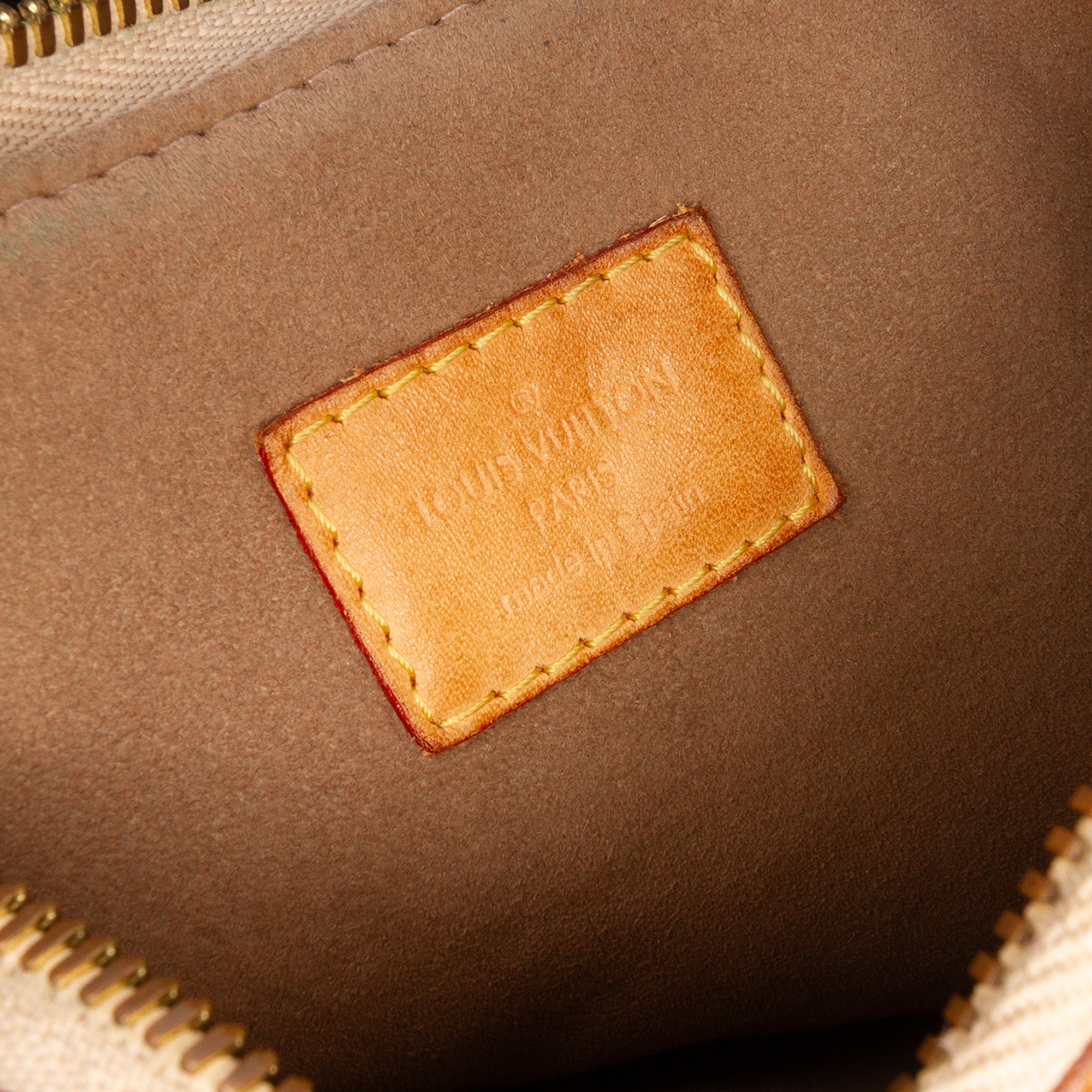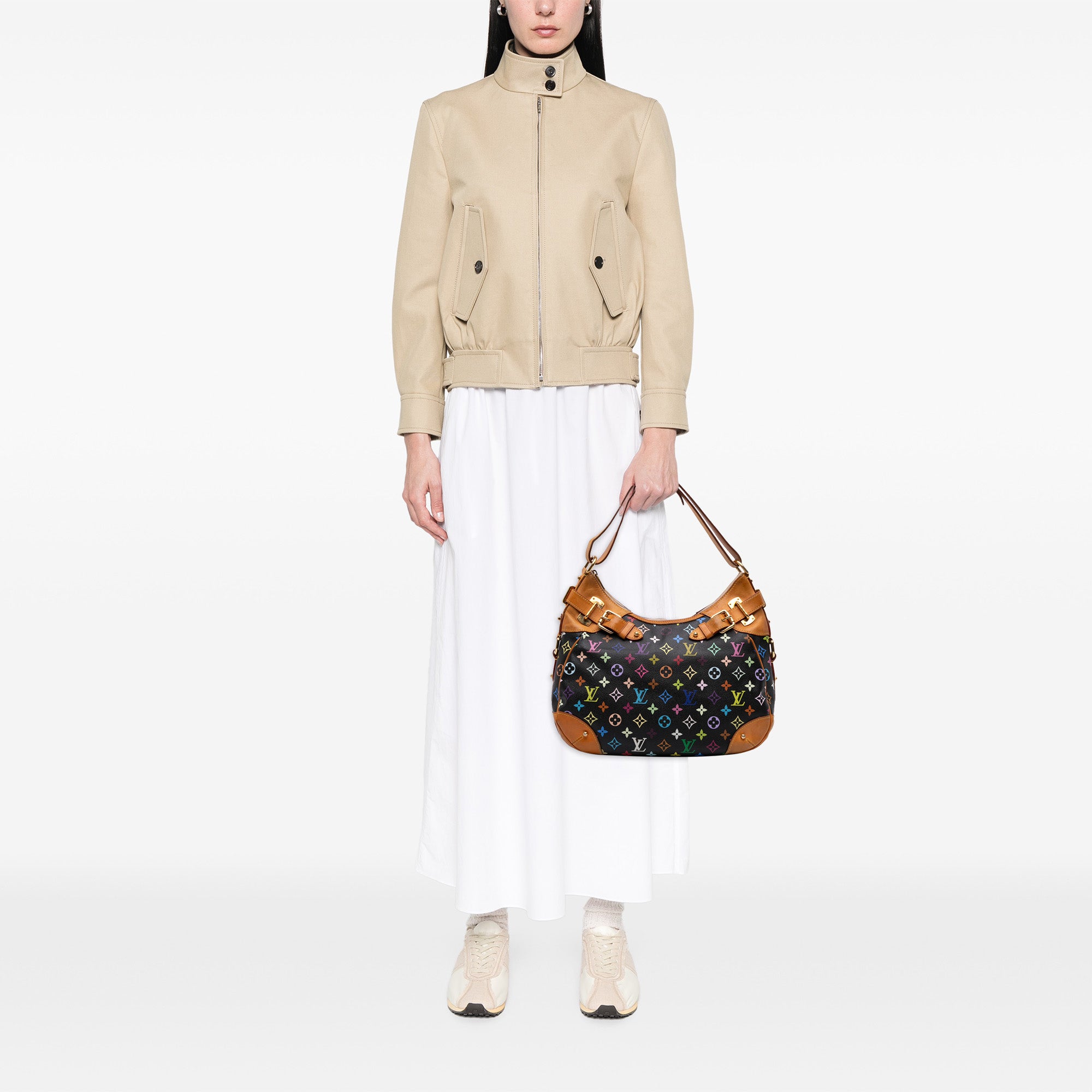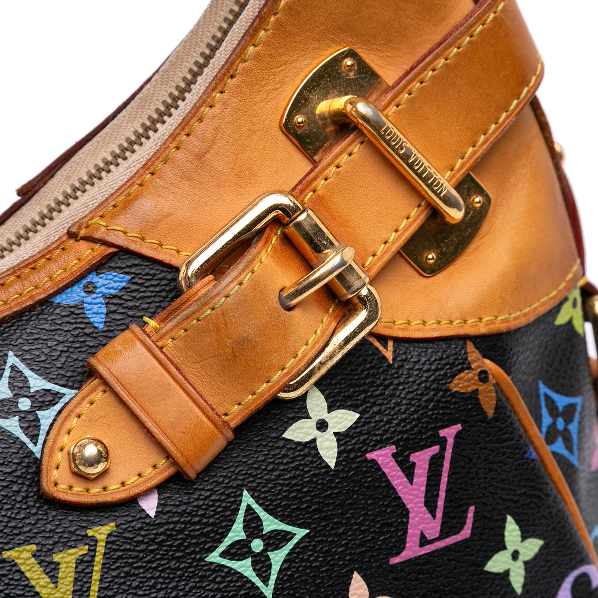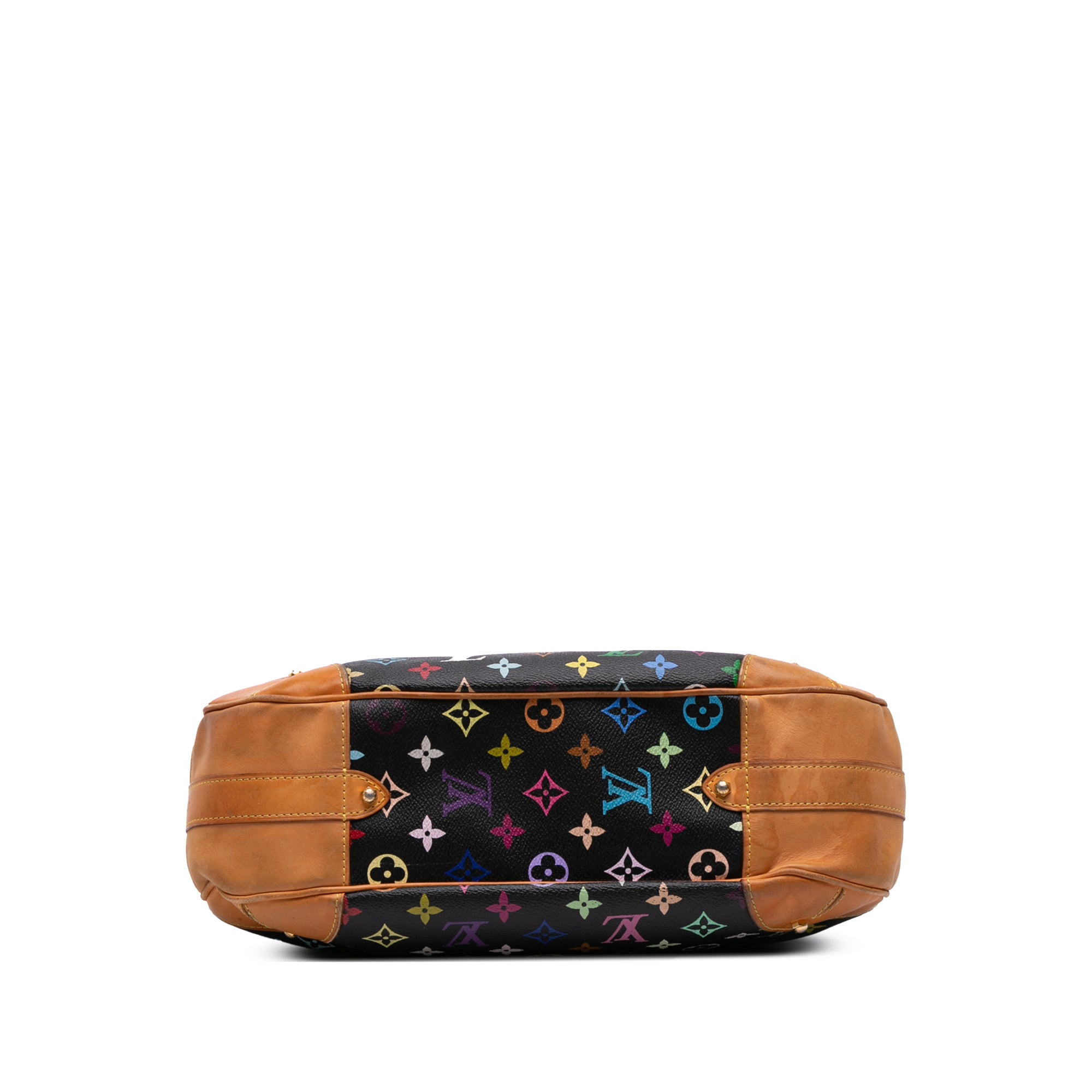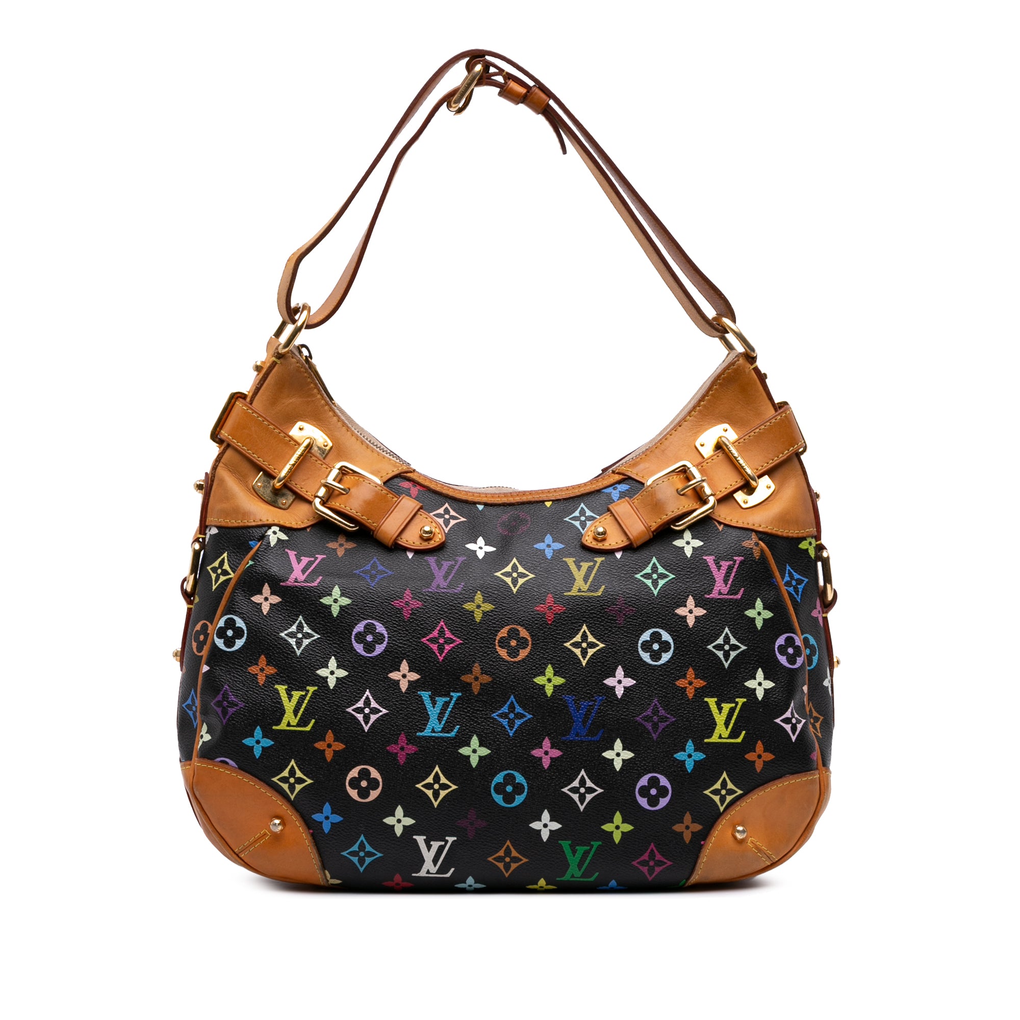 The Greta features a monogram multicolore canvas body with vachetta leather trim, a flat vachetta leather strap, a top zip closure, and interior slip pockets. Retail Price: 2700.00