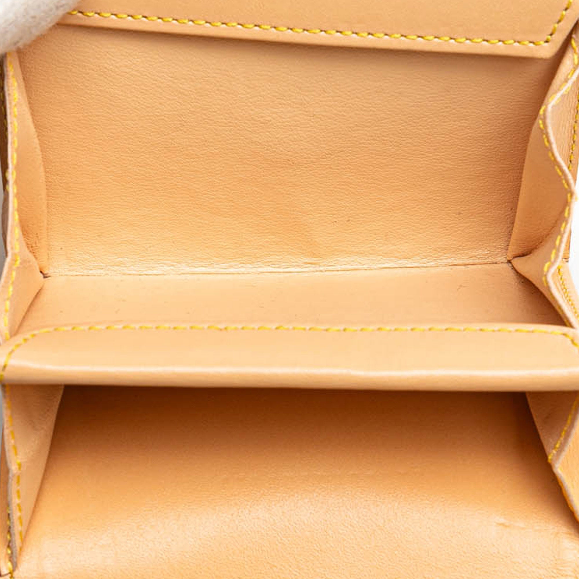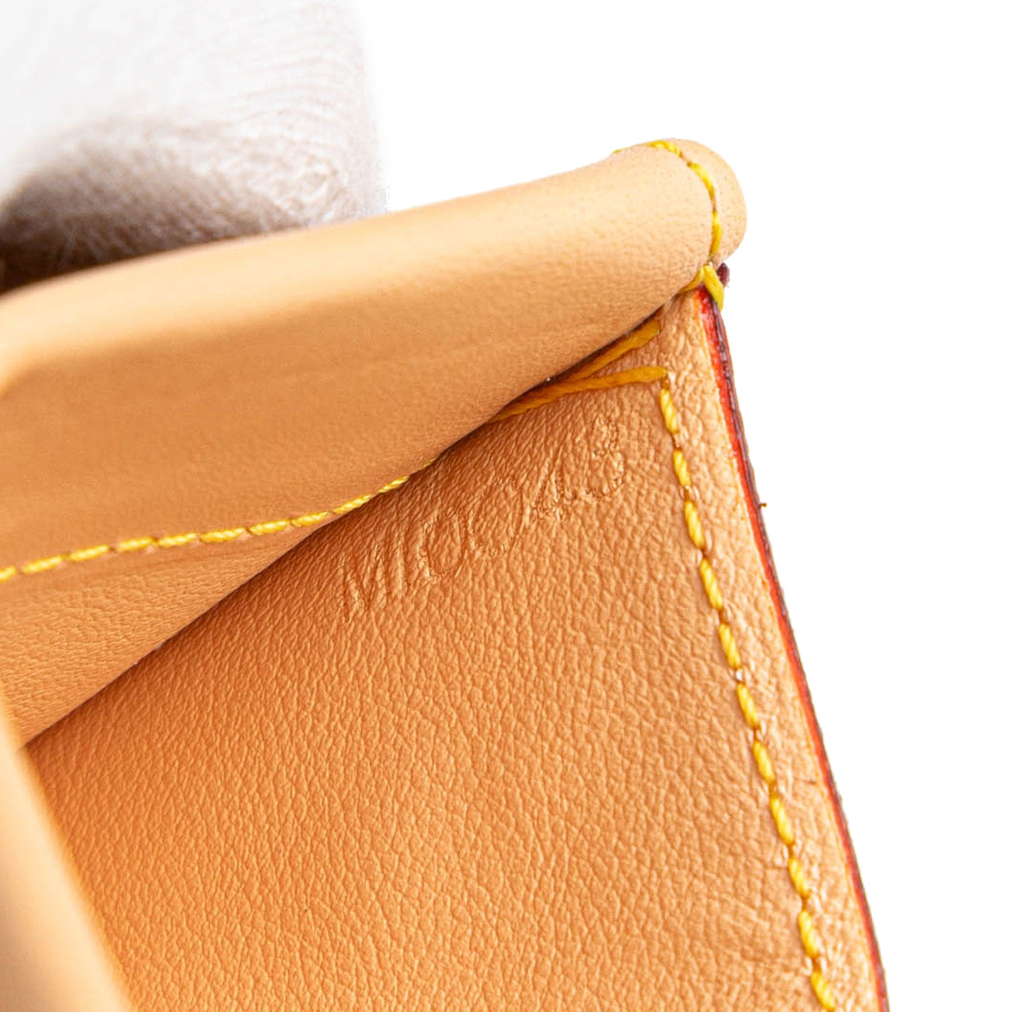 The Porte Monnaie Plat features a monogram multicolore canvas body with vachetta leather trim, a snap button closure, and interior slip pockets. Retail Price: 550.00