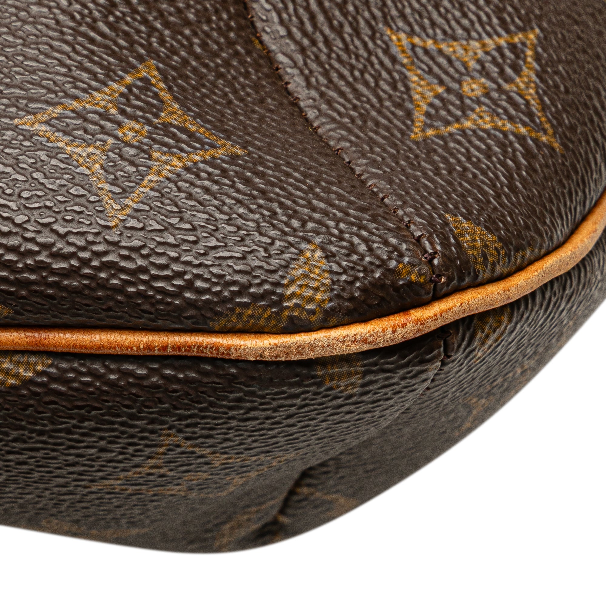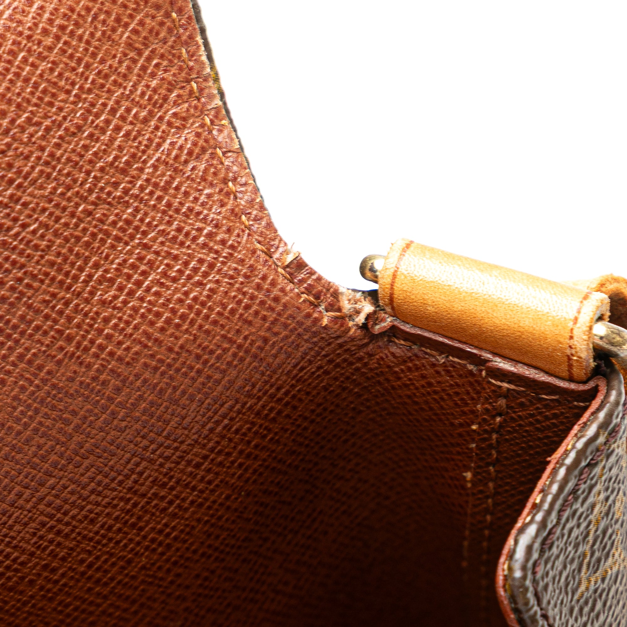 The Musette Salsa features a monogram canvas body, an adjustable vachetta leather shoulder strap with buckle details, a front flap with a magnetic closure, and interior slip pockets. Retail Price: 1080.00