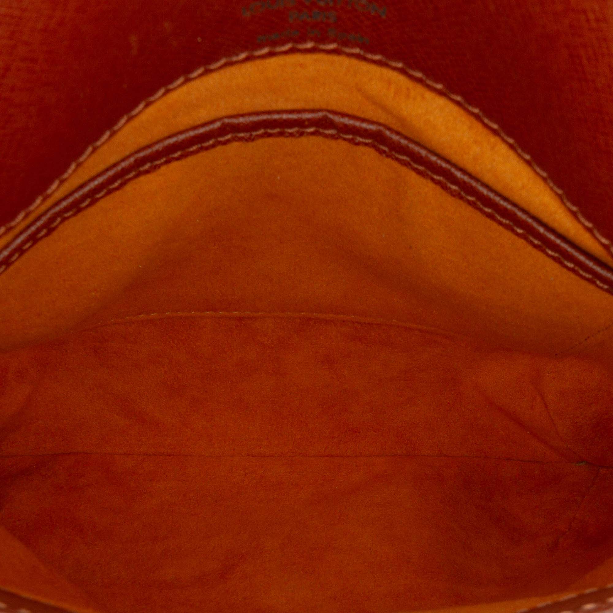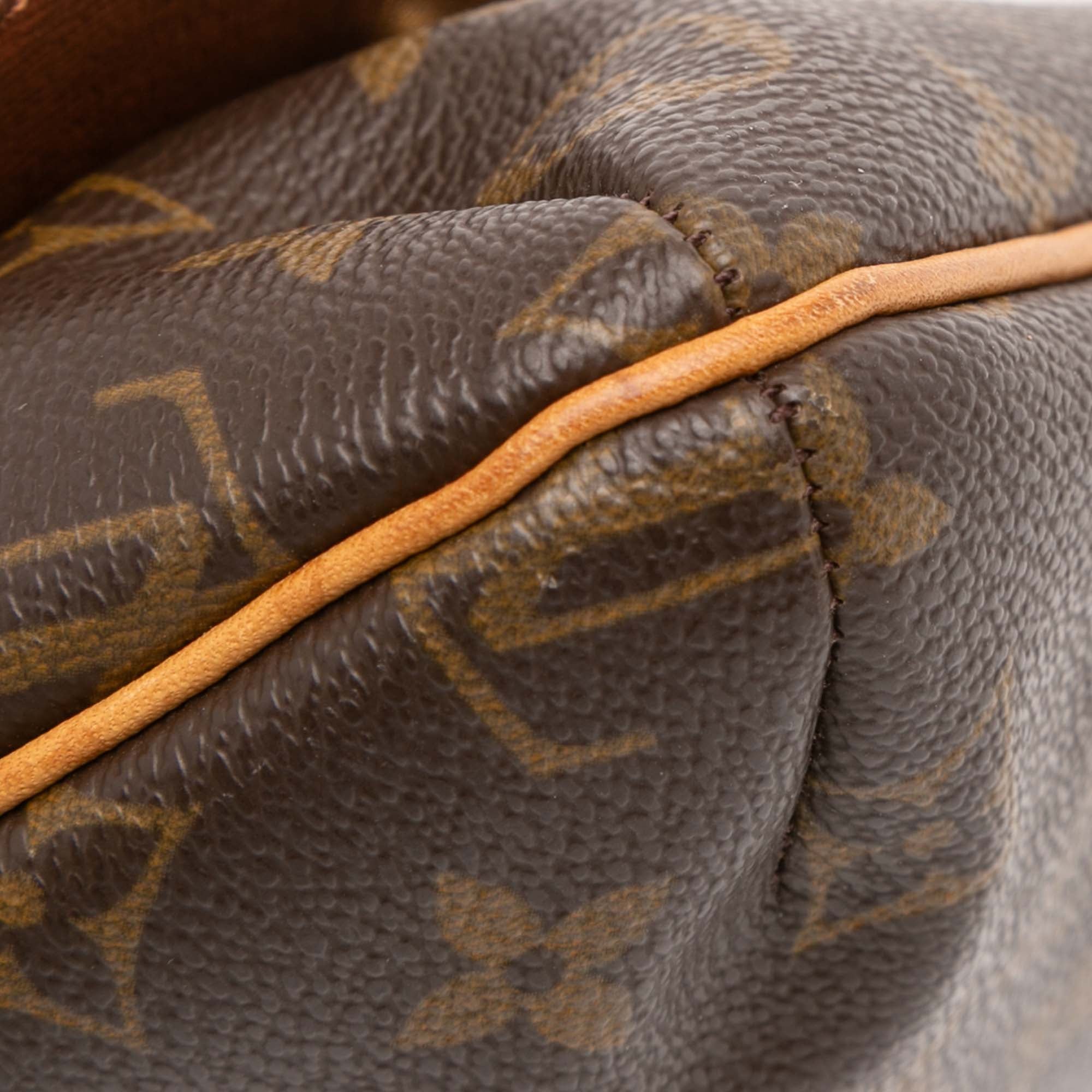 The Musette Salsa features a monogram canvas body, an adjustable flat vachetta shoulder strap, a front flap with a magnetic closure, and an interior slip pocket. Retail Price: 1080.00