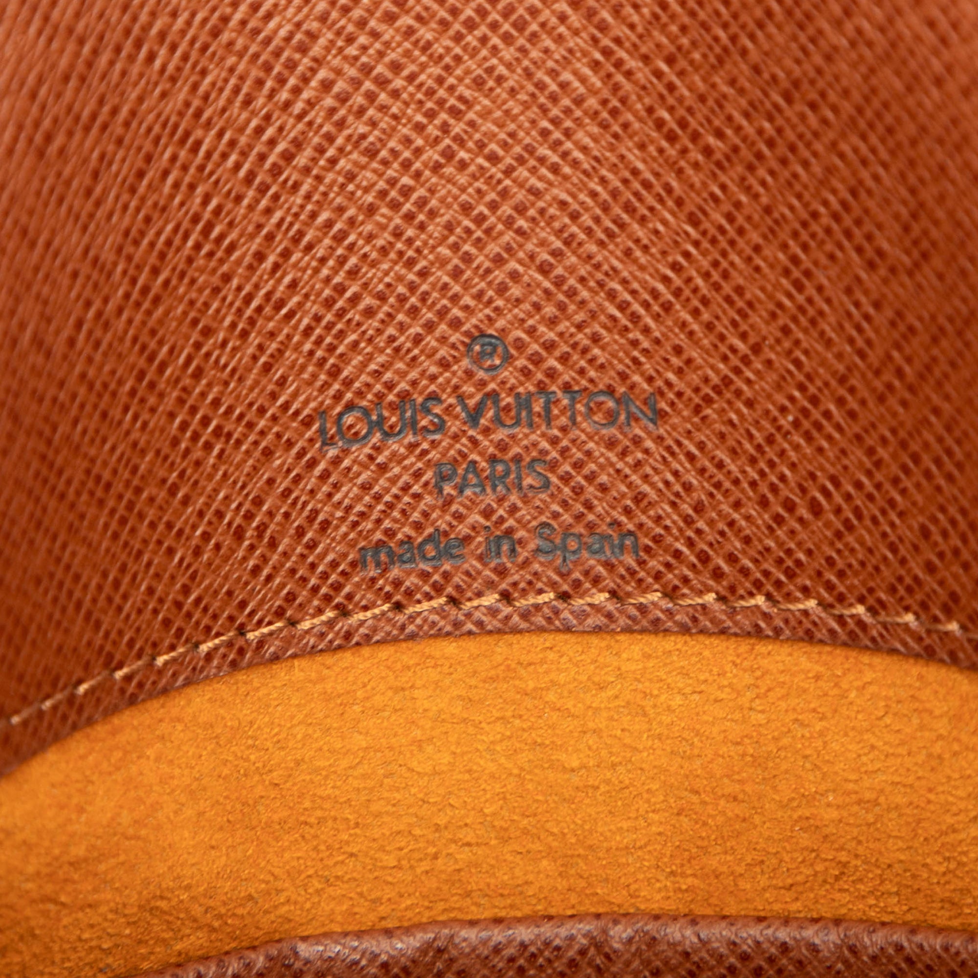 The Musette Salsa features a monogram canvas body, an adjustable flat vachetta shoulder strap, a front flap with a magnetic closure, and an interior slip pocket. Retail Price: 1080.00