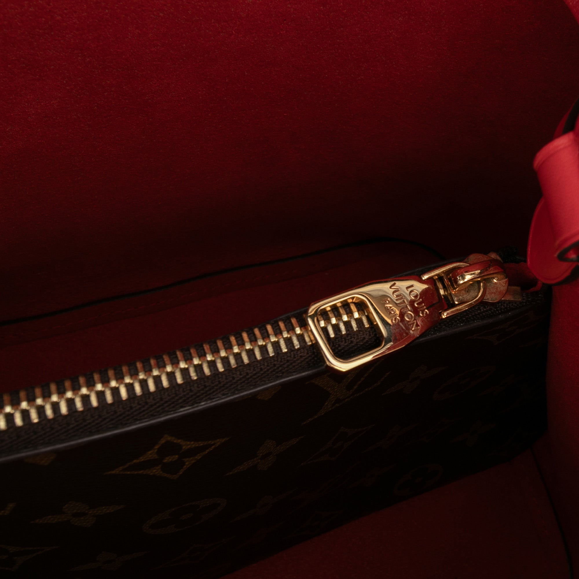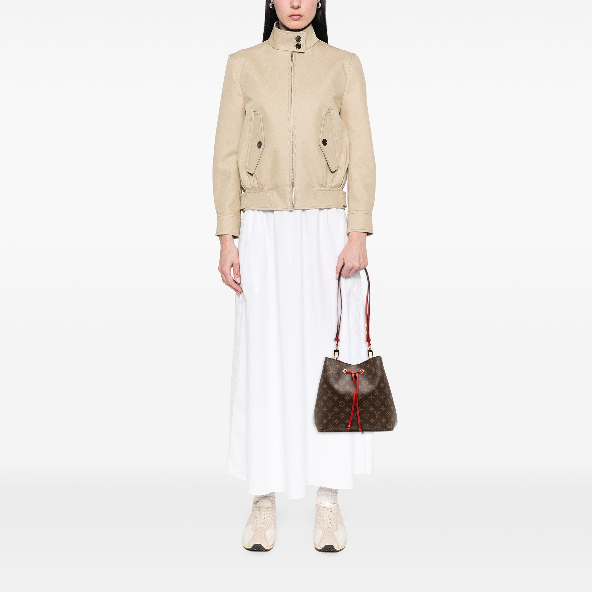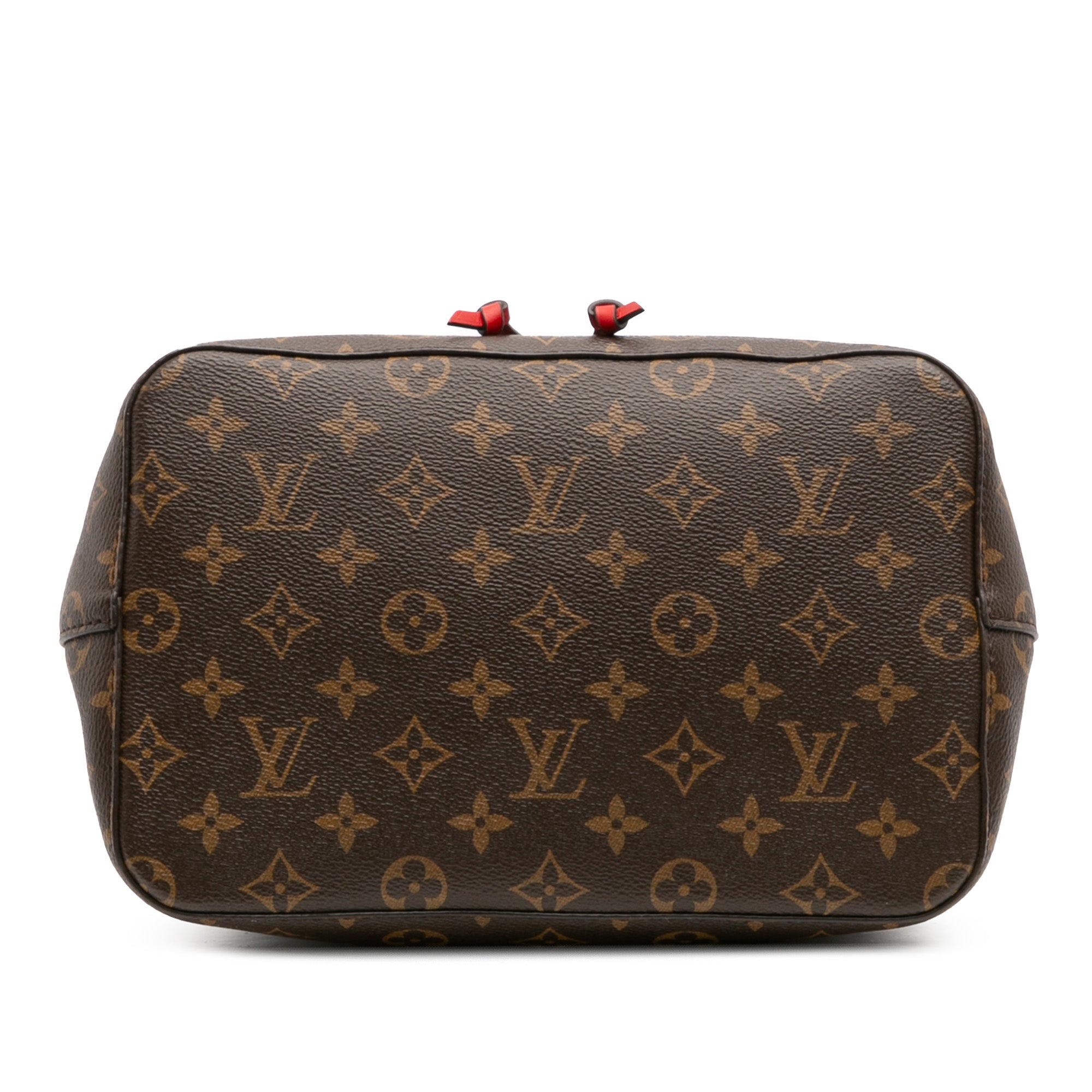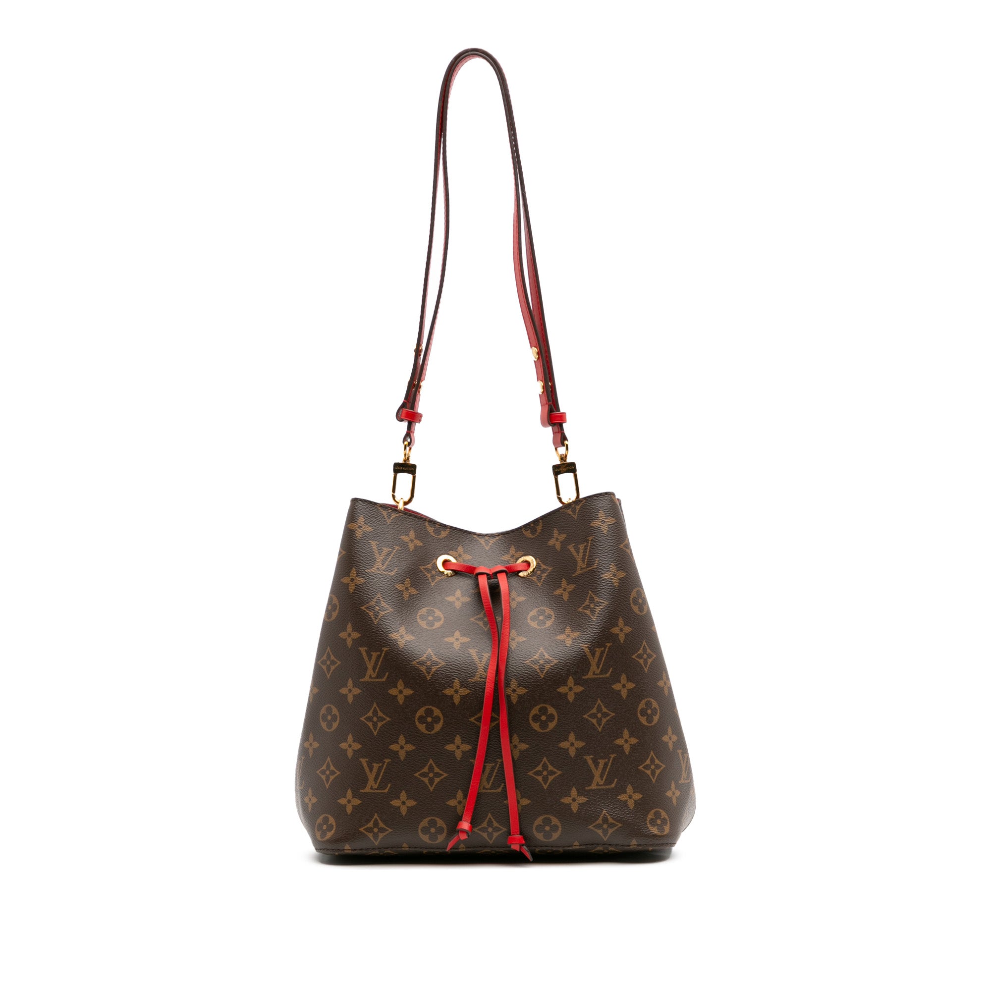 The Neonoe features a monogram canvas body, an adjustable and detachable flat leather strap, a top drawstring closure, and an interior zip pocket. Retail Price: 1965.00